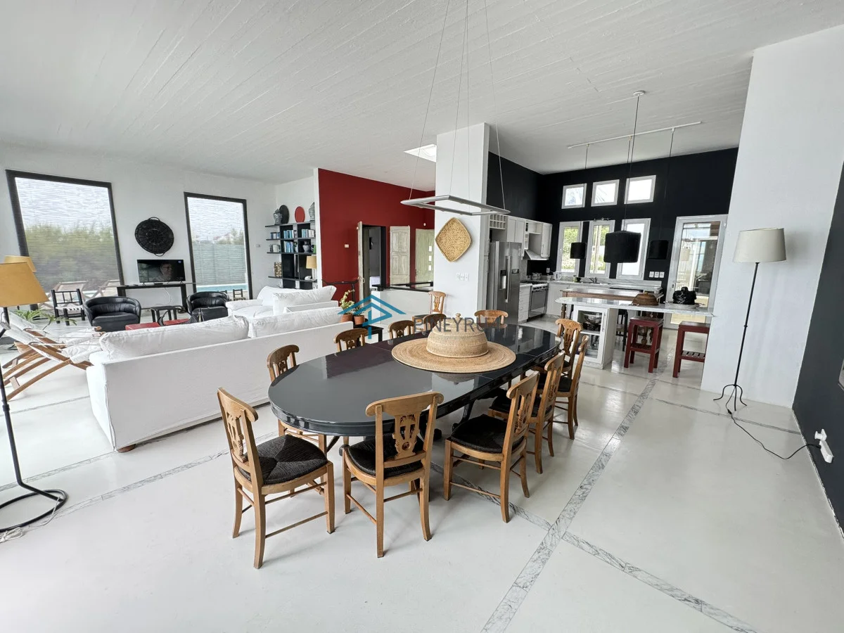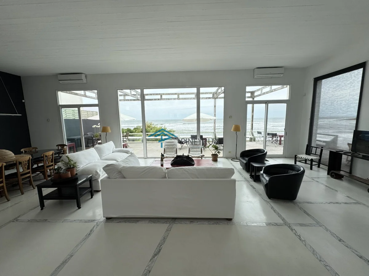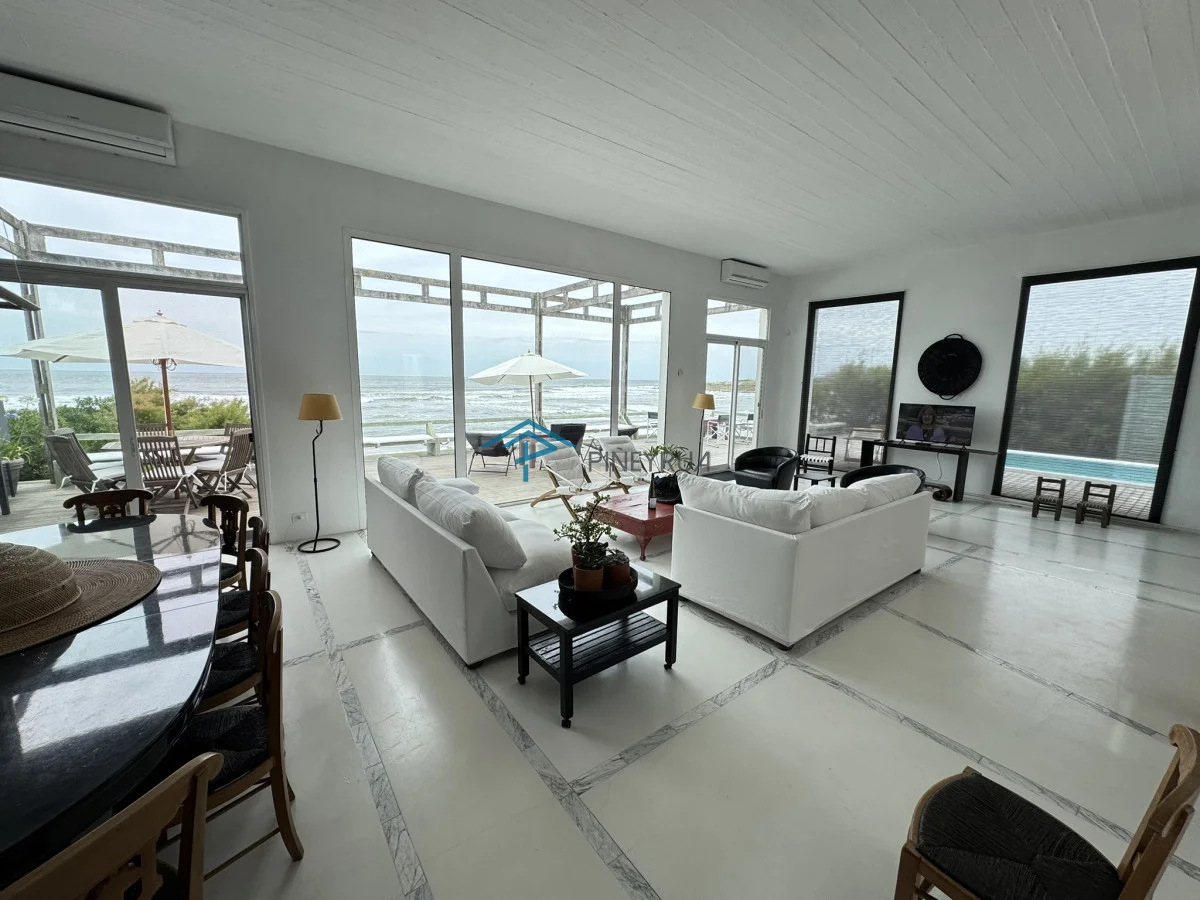Ubicada sobre el mar en un terreno de 1.000 m², esta elegante residencia de 387 m² construidos se desarrolla en dos plantas y ofrece un equilibrio perfecto entre diseño, confort y entorno natural.