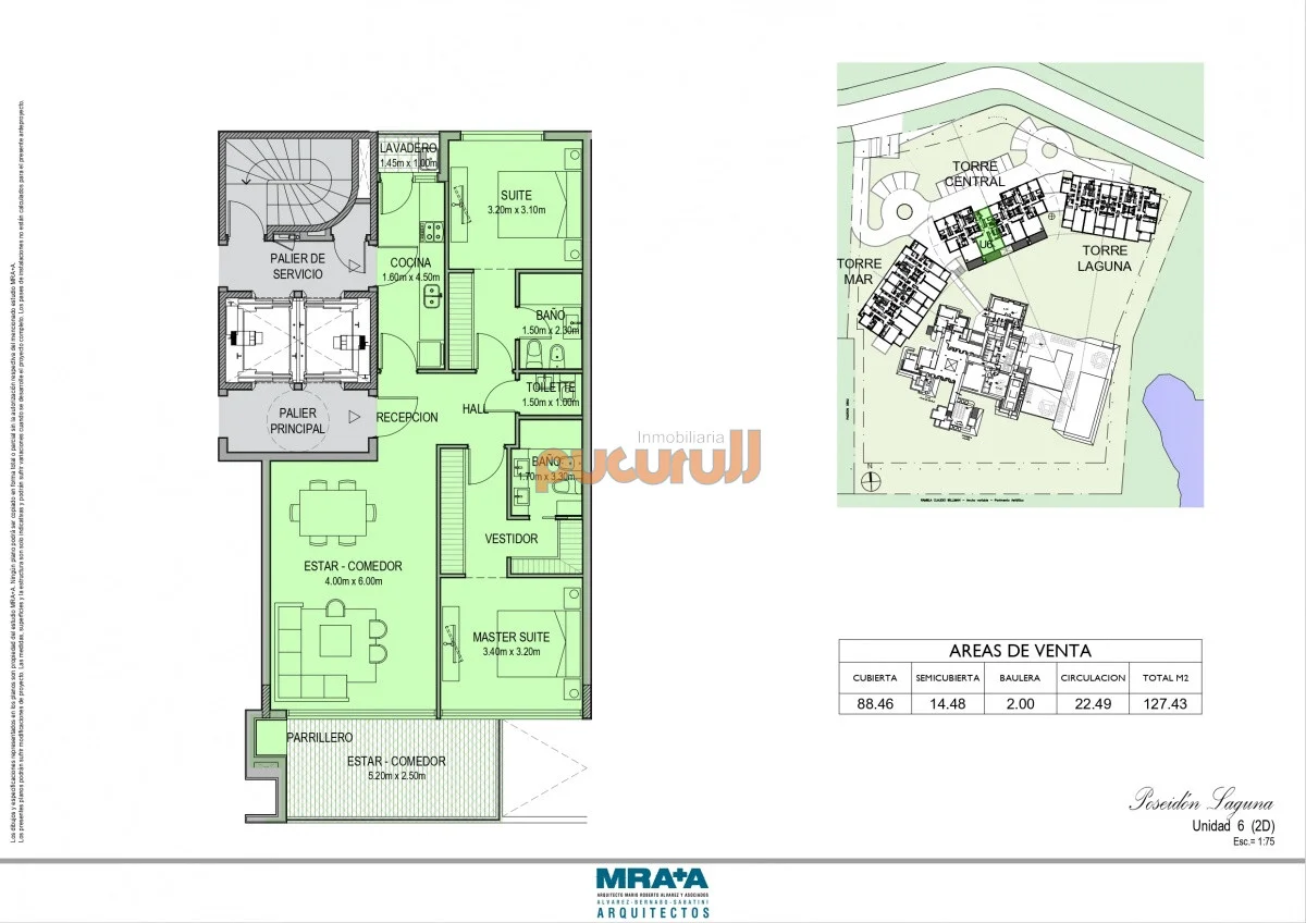 Los tres bloques se emplazan en un terreno de 11.000 m2, lo que le otorga un gran jardin y como Club House se mantendra la iconica casa Poseidon obra del renombrado Arquitecto Flores Flores.