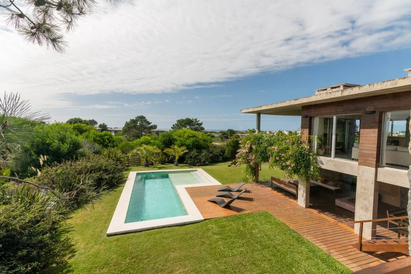 VENTA y Alquiler temporario. Casa en José Ignacio de 5 dormitorios y servicios Ubicada en el prestigioso barrio costero de Village del Faro, en José Ignacio, esta lujosa villa es una obra maestra de elegancia y confort, diseñada para alojar hasta 12 personas con privacidad y serenidad inigualables. Tres dormitorios en suite con camas king size. Master suite con vista al mar. Dos dormitorios con 5 camas individuales comparten un amplio baño. Un cuarto de servicio con dos camas individuales y baño privado. Gran galería con living comedor externo, parrilla deck con piscina climatizada por panel solar. Cisterna de riego y filtro automatizado. Gas y electricidad con paneles solares. La playa está a menos de 2 minutos a pie. La Huella está a 5 minutos a pie. Terreno 1168m2 Superficie cubierta 302m2 Superficie semi cubierta 151m2 Gastos de mantenimiento bajos. Excelente renta por alquiler temporario. WWW.UNICA.COM.UY