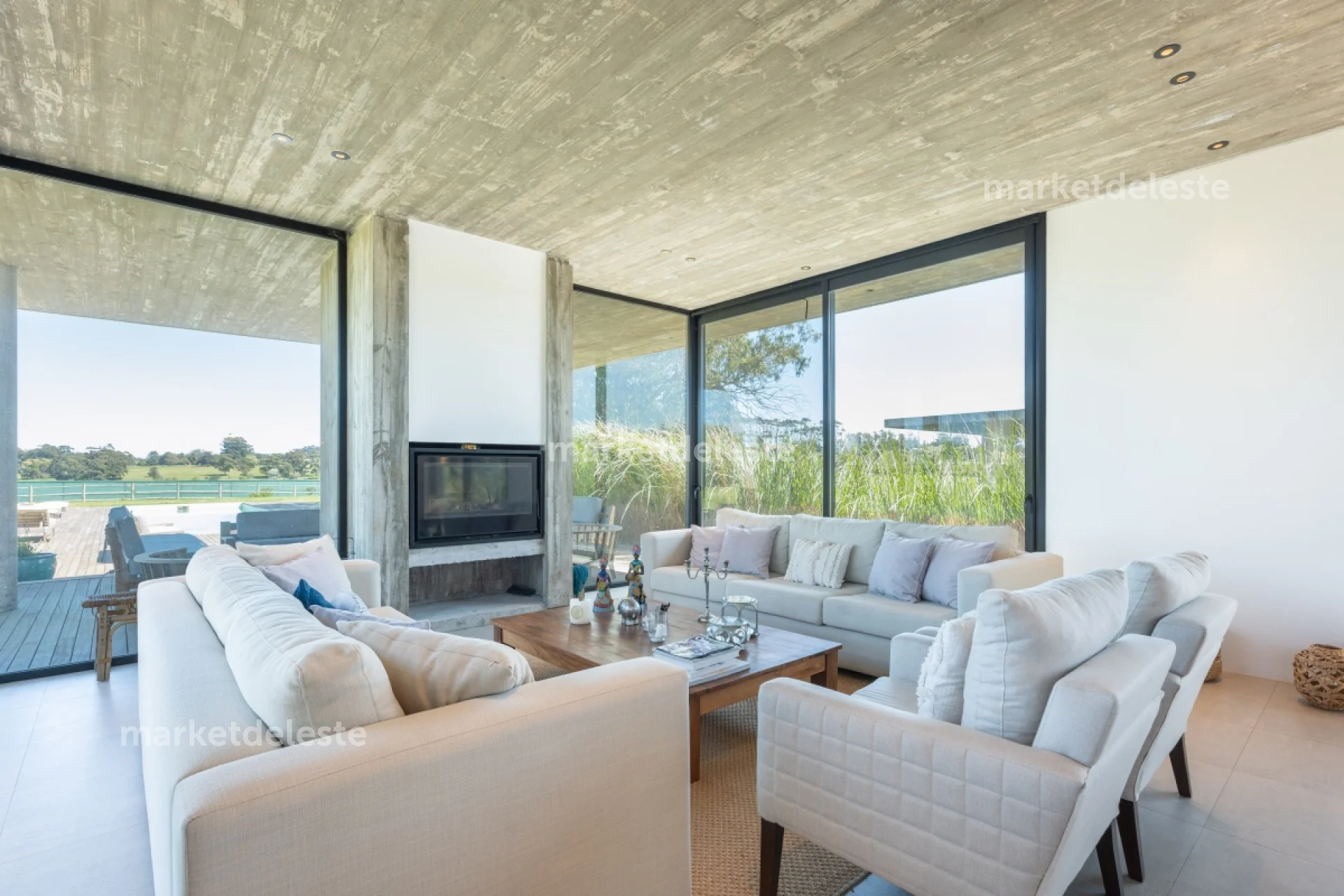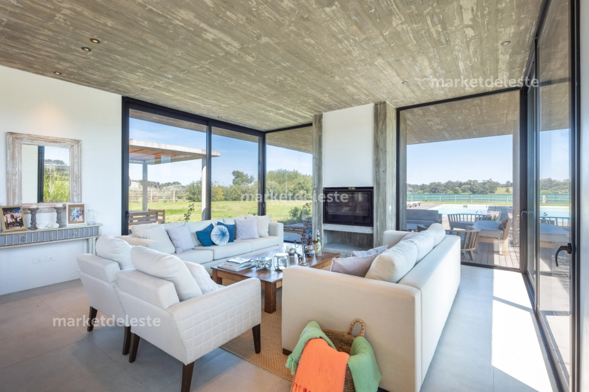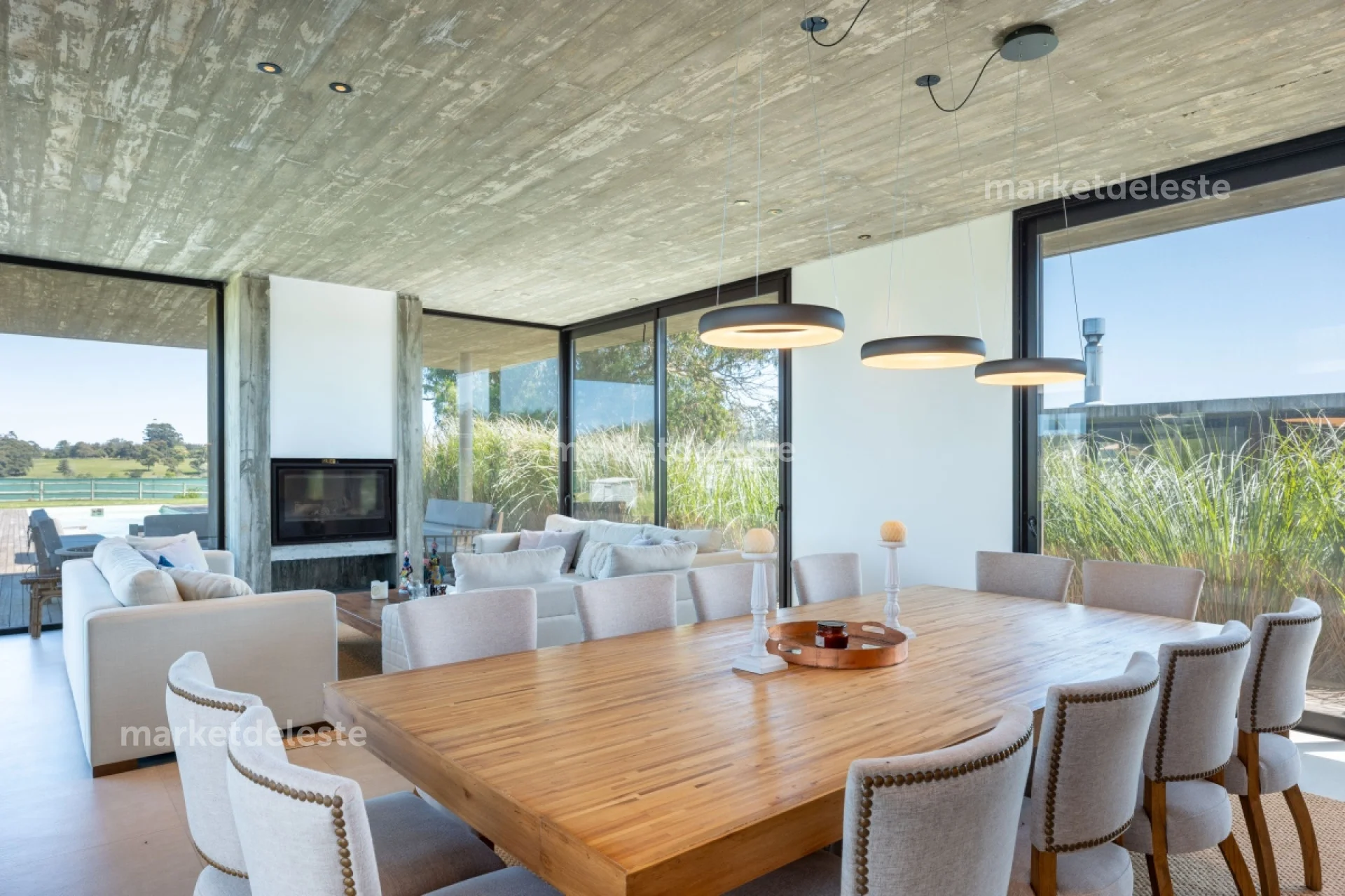 Esta magnifica casa de 4 dormitorios, 5 baños es la definición de lujo y confort. Sumamente luminosa, de amplios ventanales con vistas al verde, lagos y espectaculares arboledas. La casa consta de 2 modulos principales, en el modulo principal se encuentra el living comedor, cocina, comedor diario y toilette, seguido de este bloque, se encuentra el segundo bloque con 3 dormitorios en suite. Separaado casa con dormitorio de huespedes.