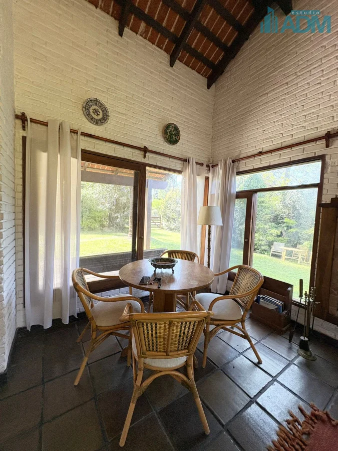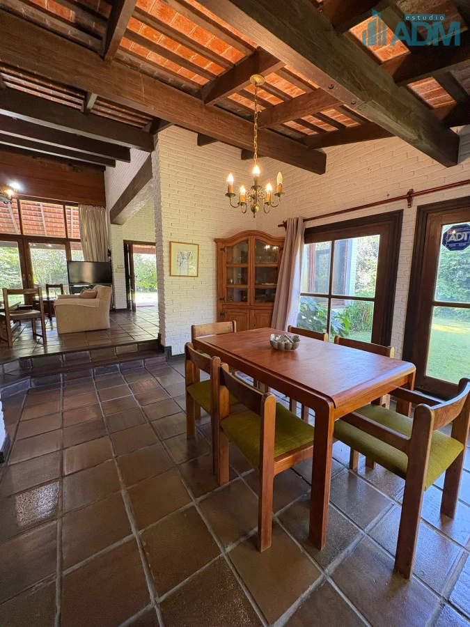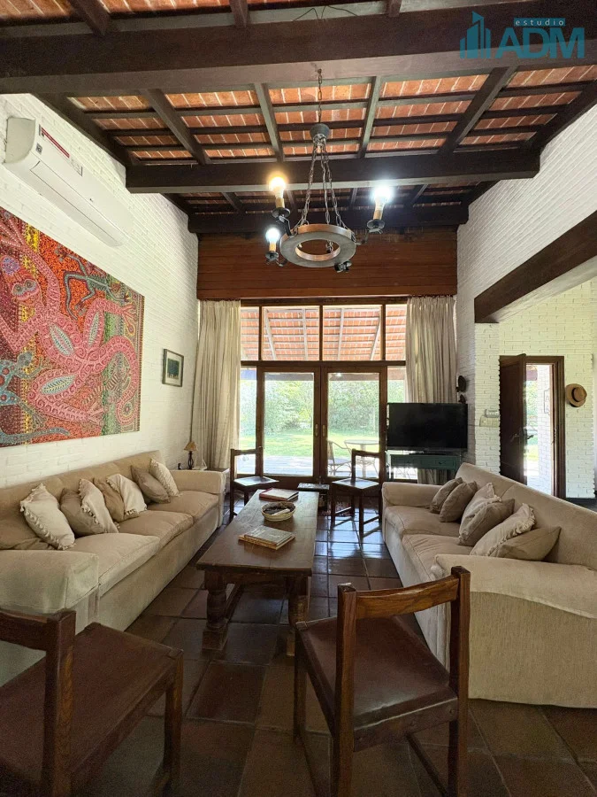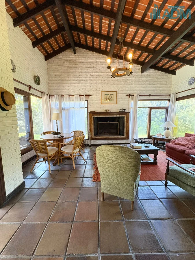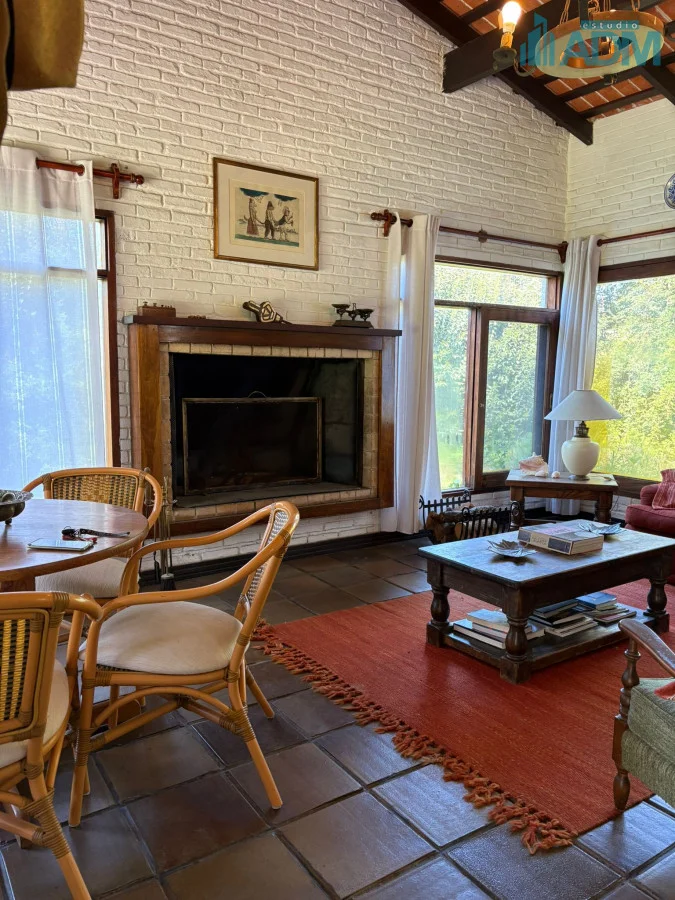 La Casa esta sobre un lote de 1000 mt2 desarrollada de la siguiente manera: Entramos a un gran ambiente que consta de 2 livings,de techos bien altos, con vigas de madera gigantes, con una estufa a leña muy linda,al lado tiene un comedor definido muy lindo.
