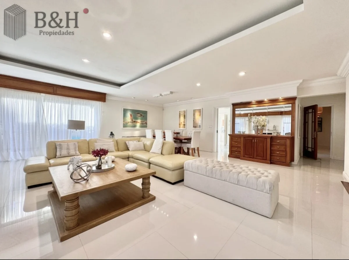 Cuenta con cuatro cómodos dormitorios, dos en suite, todos con aires acondicionados. Amplio y luminoso living comedor con estufa a leña. Moderna cocina muy bien equipada, con área de lavadero. Dispone también con un estudio que puede ser tomado como otro dormitorio.