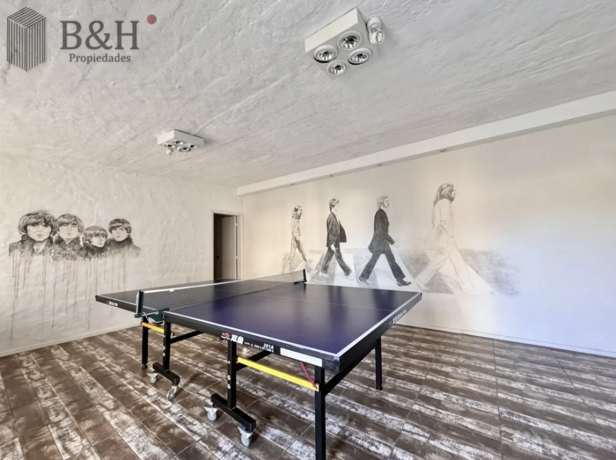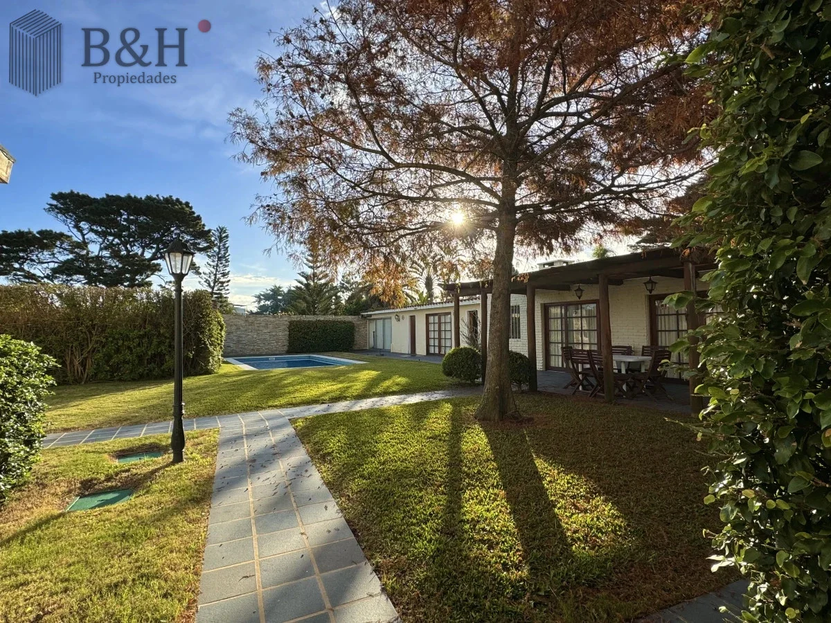 Gran jardín, totalmente cercado, donde se ubica la piscina climatizada junto a la barbacoa cerrada, que cuenta con mesa de ping pong, pool, cocina y un muy buen espacio para recibir invitados. También tiene su baño completo.