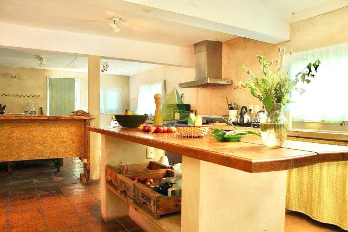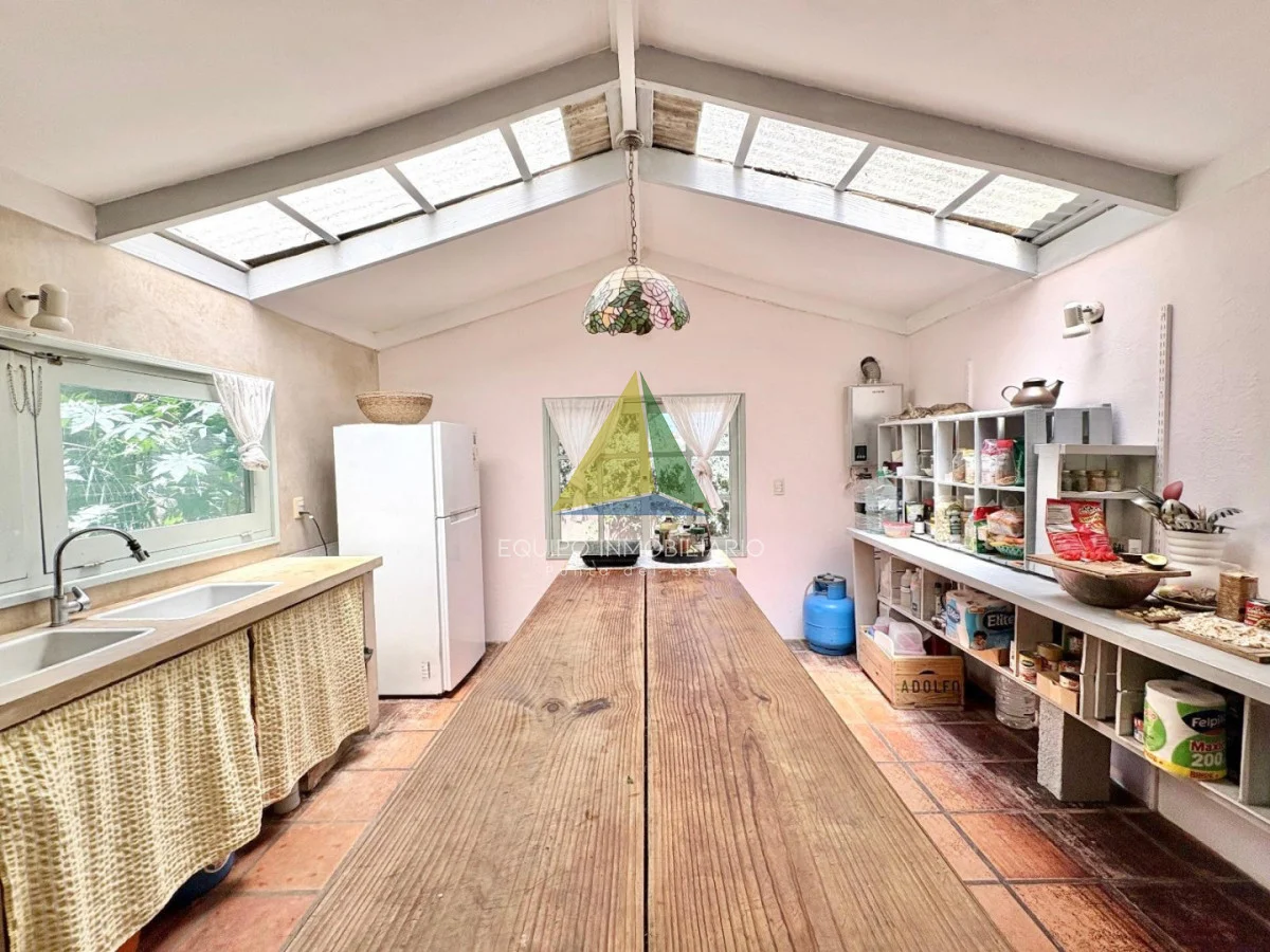 La casa principal se caracteriza por sus espacios amplios, funcionales y muy luminosos. Cuenta con living y comedor de generosas dimensiones, cocina definida muy amplia con isla, totalmente equipada, cocina industrial, parrillero y estufa de alto rendimiento con horno pizzero, perfecta para disfrutar durante todo el año.
