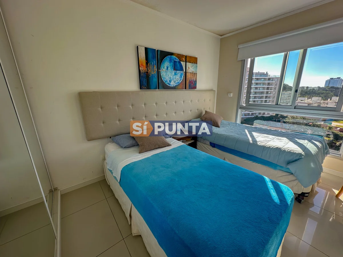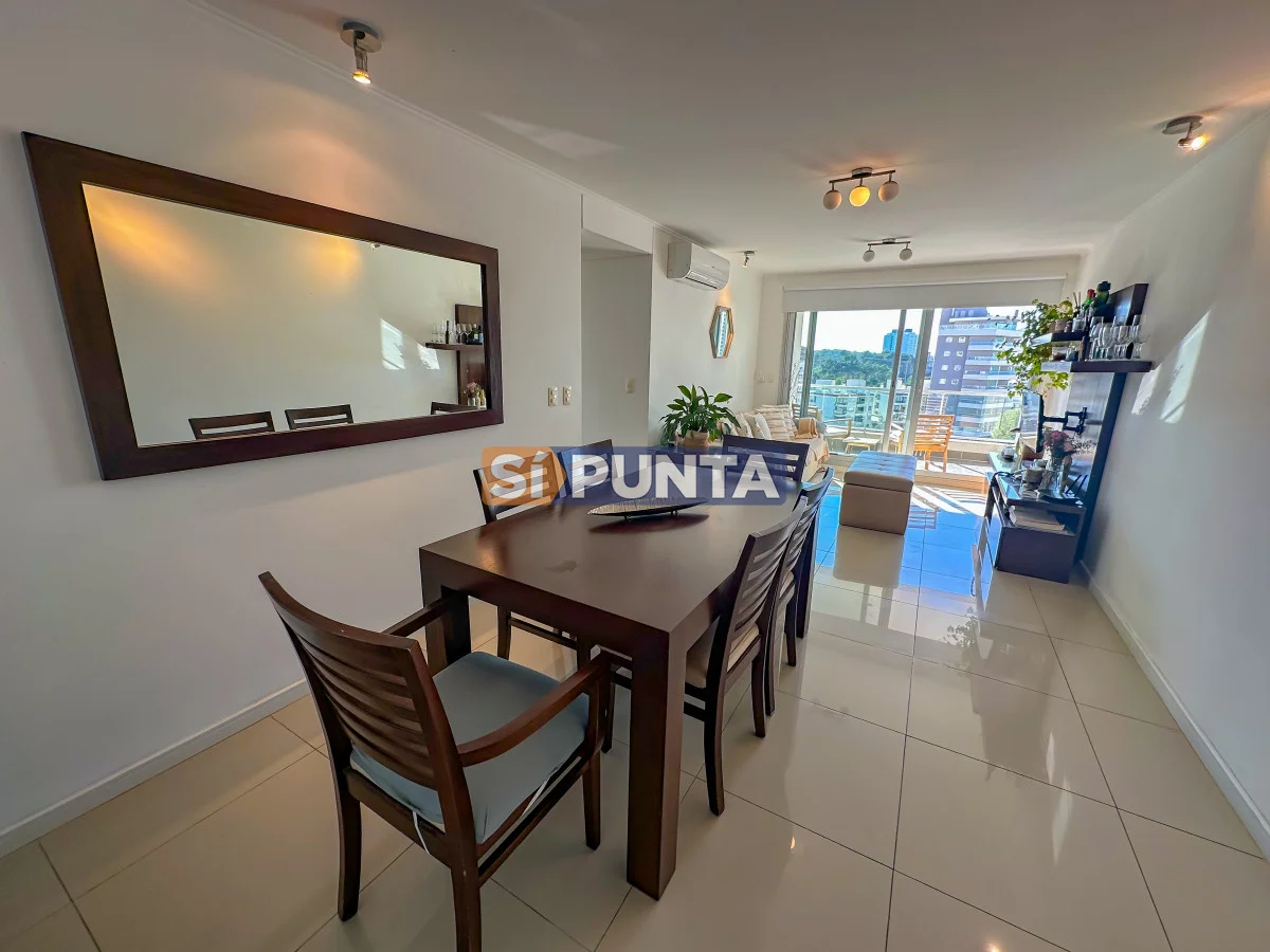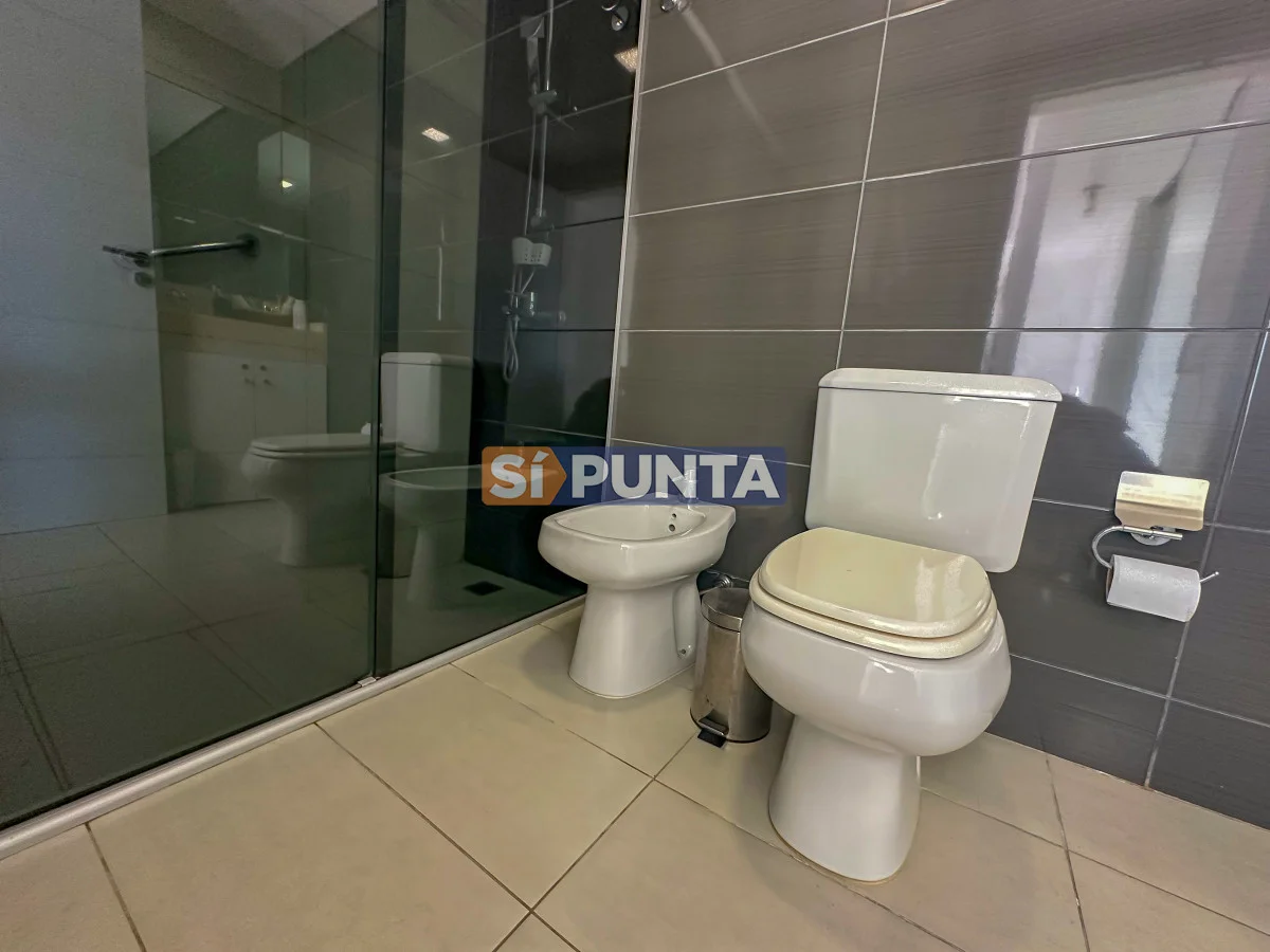Departamento con hermosa orientación solar NorEste, cuenta con 2 dormitorios, 2 baños, 1 de ellos en suite, living comedor con salida al balcón que tiene vista a Playa Brava, cocina definida y garage.