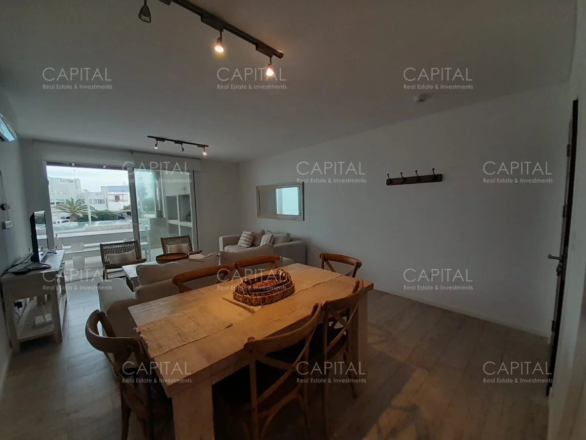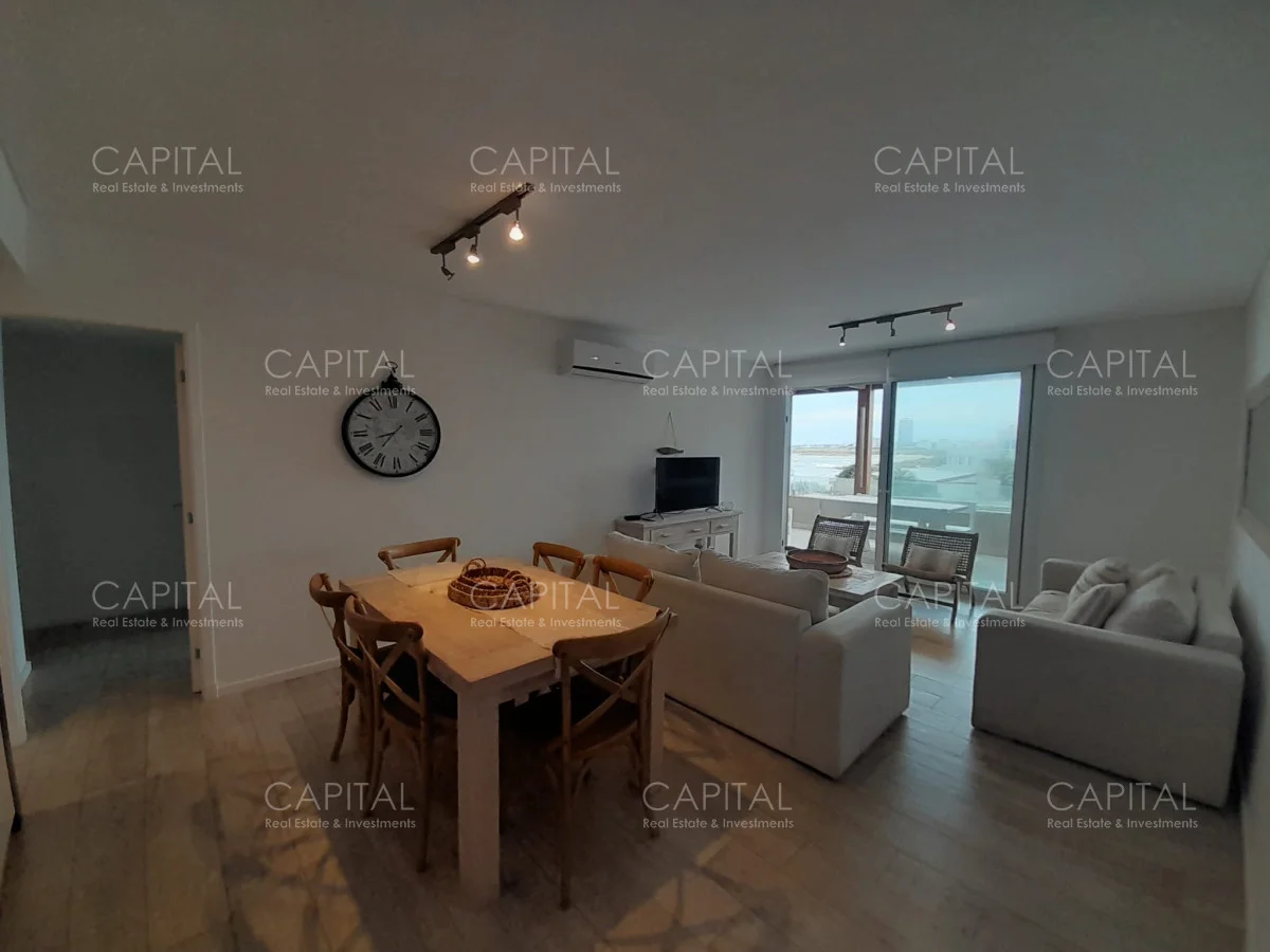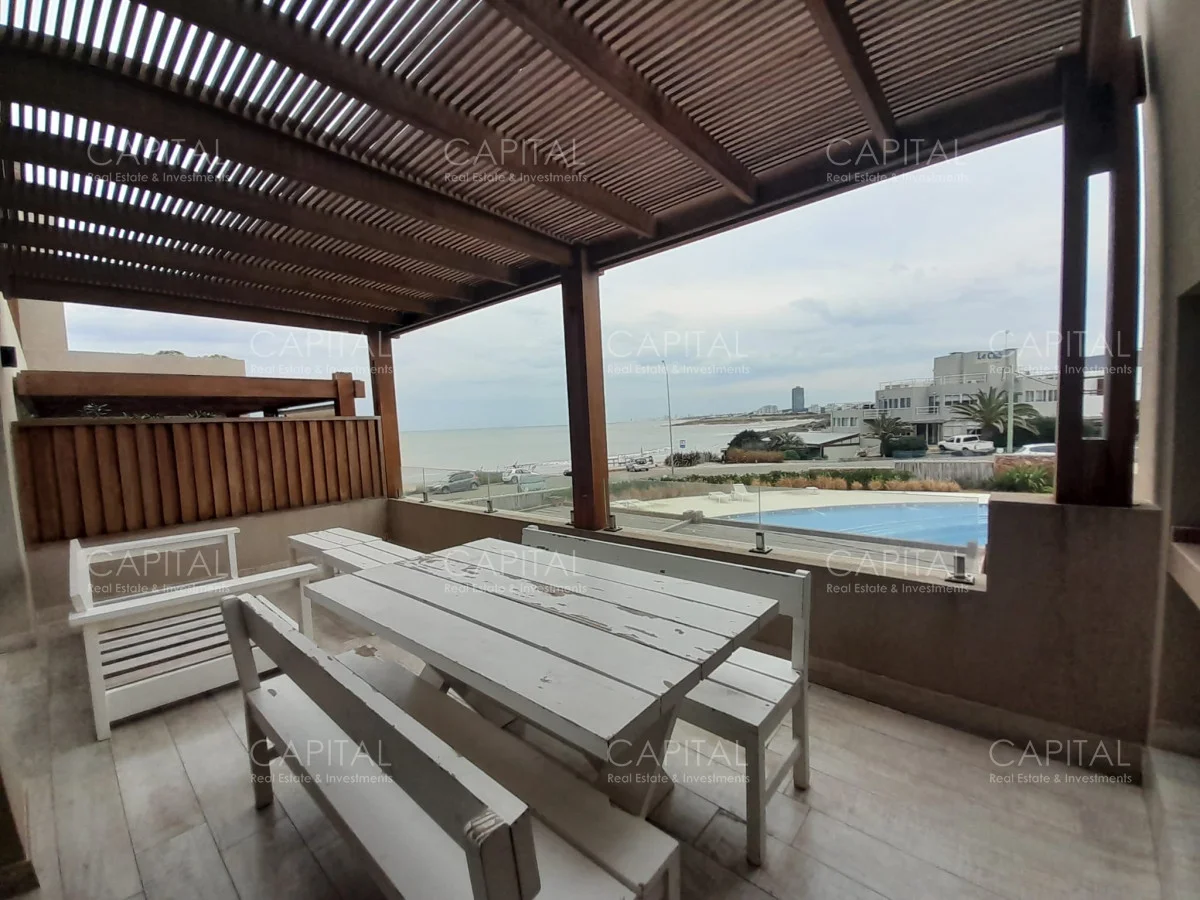 Edificio frente al mar con espectacular vista a la playa de La Desembocadura de La Barra. Apartamento a estrenas con tres dormitorios amplios, dos baños, cocina moderna semi-interrada y equipada, amplios y luminosos espacios. Parrillero con vistas plenas al mar. Servicio de mucamas, servicio de playa, gimnasio sauna. lavadero y piscina.