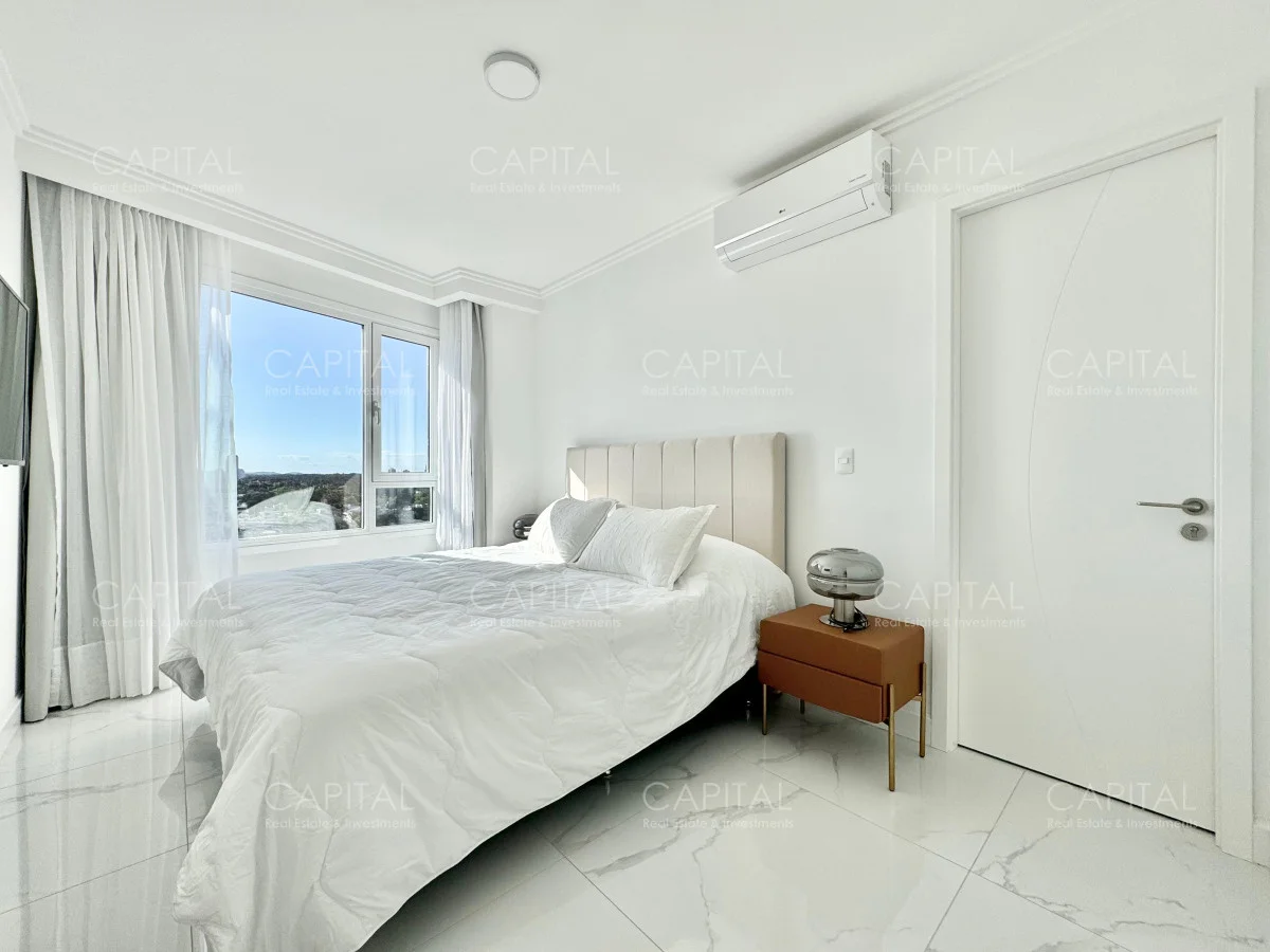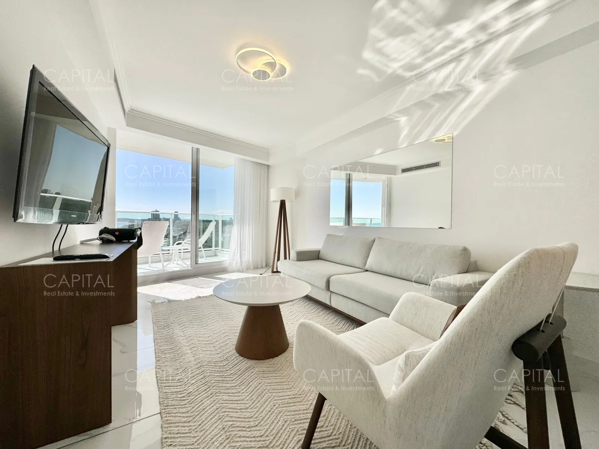 La Fachada curva sobre la Rambla se abre a la bahía, envolviendo los apartamentos para un mejor aprovechamiento de las vistas a la Playa Mansa, la Isla Gorriti, el Puerto y Punta Ballena.