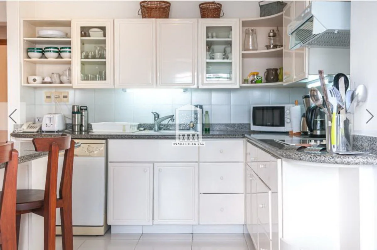 En su planta principal, la propiedad ofrece un amplio living-comedor con salida a balcón, ideal para disfrutar del mar y la luz natural. Cuenta con toilette social y tres dormitorios en suite, todos de generosas dimensiones. La cocina es definida, con lavadero independiente y dependencia de servicio completa.