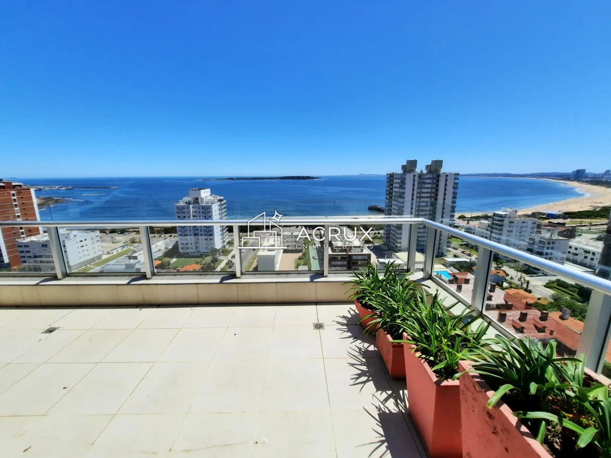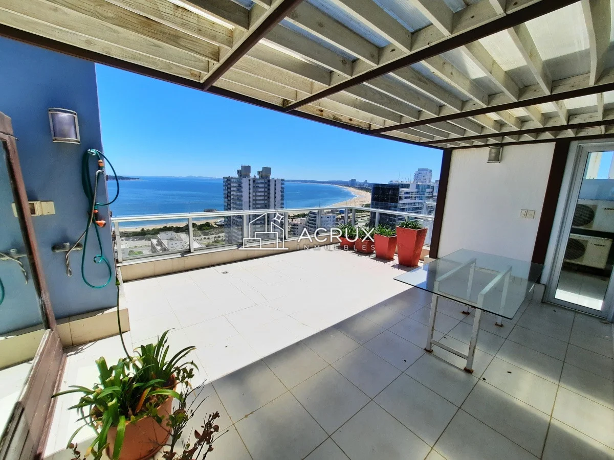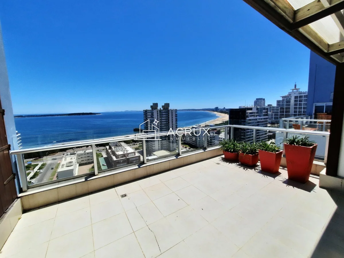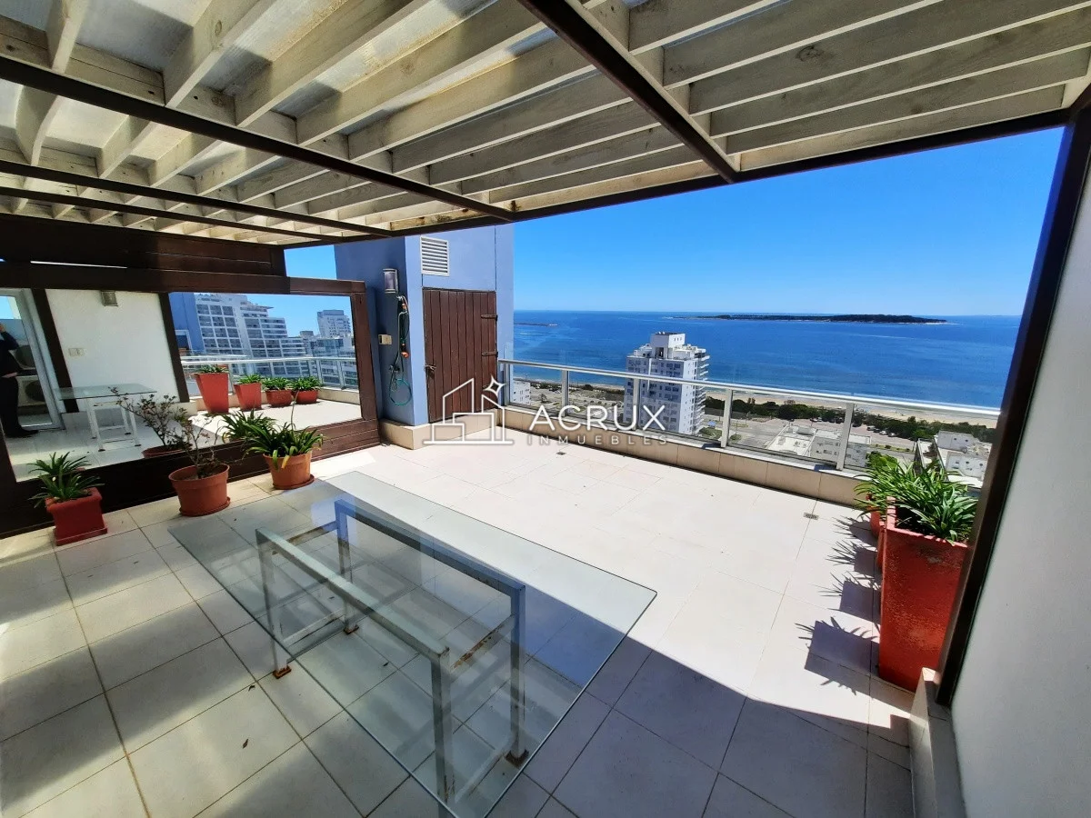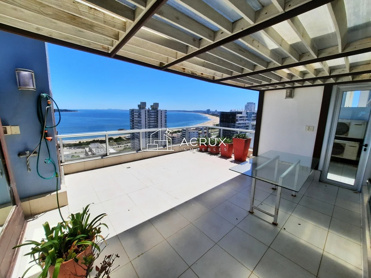 Espectacular apartamento PentHouse en dos niveles en la Playa Mansa. Ubicado en la Parada 3 de la Mansa. En el Piso 16 cuenta con amplio living comedor con vista a toda la Mansa e Isla Gorrito. Gran terraza en L cerrada, moderna cocina muy confortable. En este nivel cuenta también con 2 dormitorios, uno en suite, más otro cn baño completo. Baños con hidromasaje. Mediante una escalera interna se accede a la planta alta con barbacoa o playroom exclusiva de 40 m2 en doble altura con baño e ingreso independiente.