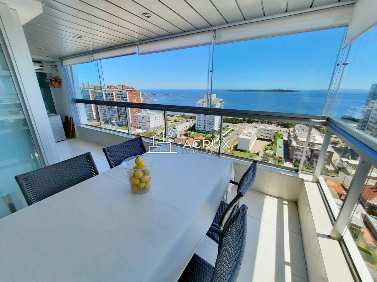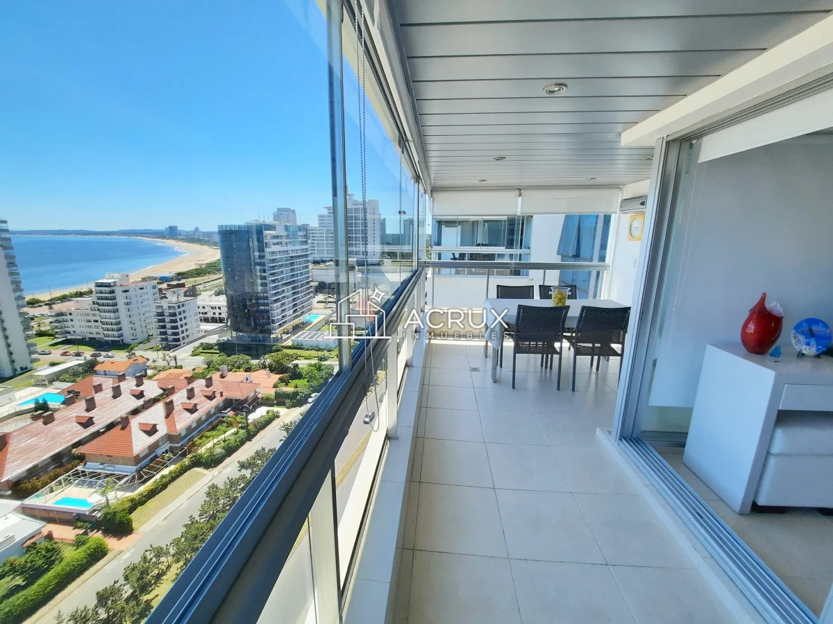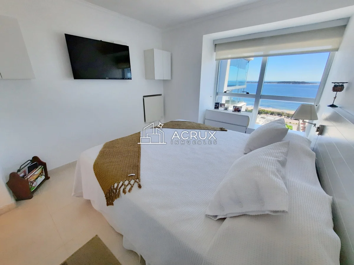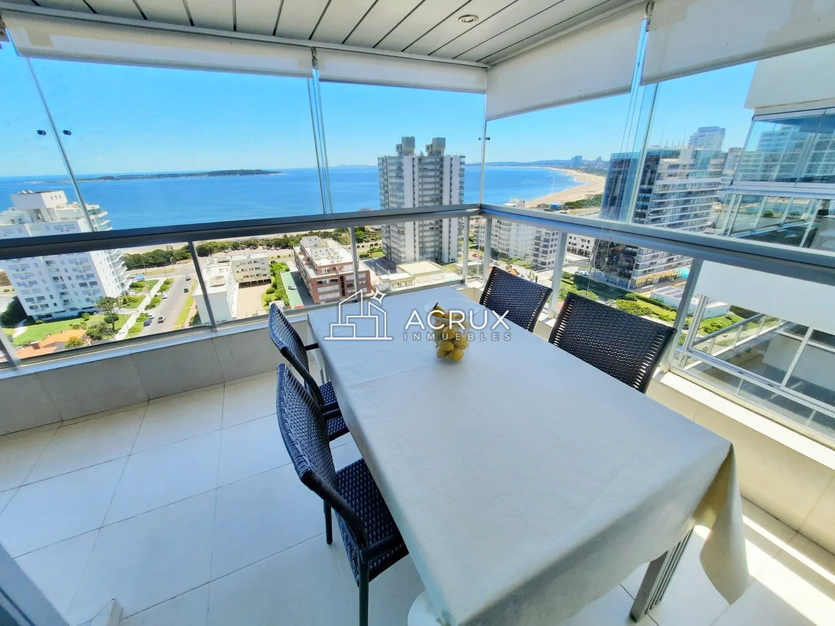 Espectacular apartamento PentHouse en dos niveles en la Playa Mansa. Ubicado en la Parada 3 de la Mansa. En el Piso 16 cuenta con amplio living comedor con vista a toda la Mansa e Isla Gorrito. Gran terraza en L cerrada, moderna cocina muy confortable. En este nivel cuenta también con 2 dormitorios, uno en suite, más otro cn baño completo. Baños con hidromasaje. Mediante una escalera interna se accede a la planta alta con barbacoa o playroom exclusiva de 40 m2 en doble altura con baño e ingreso independiente.