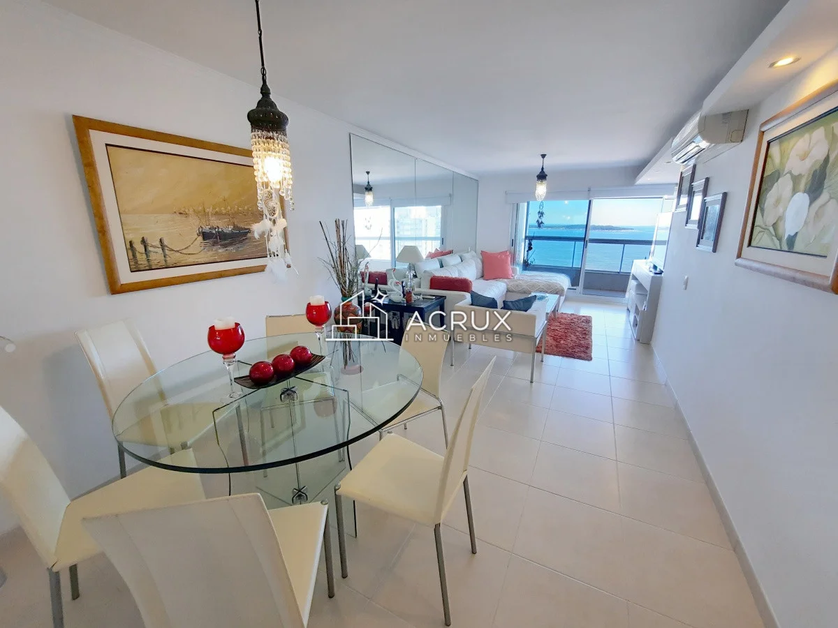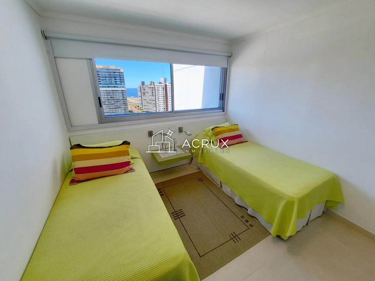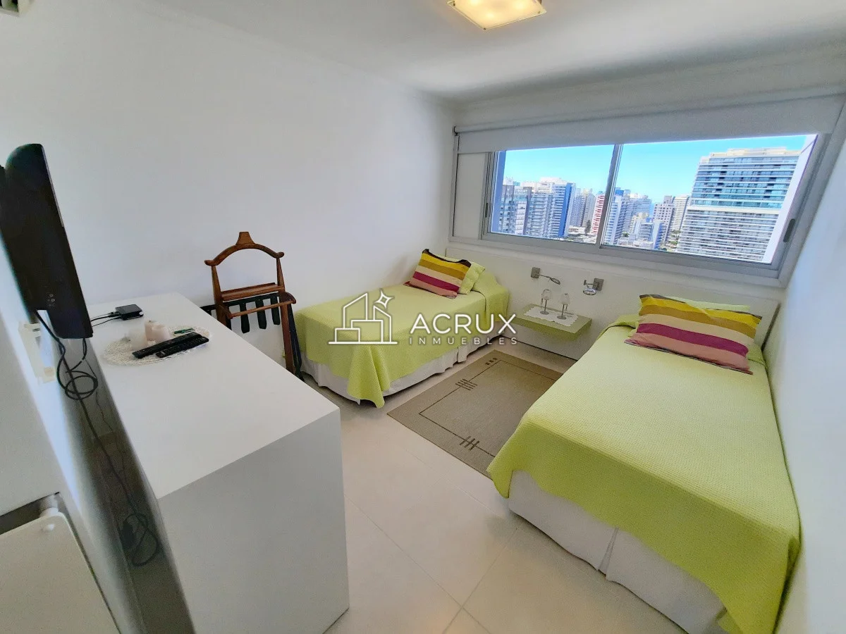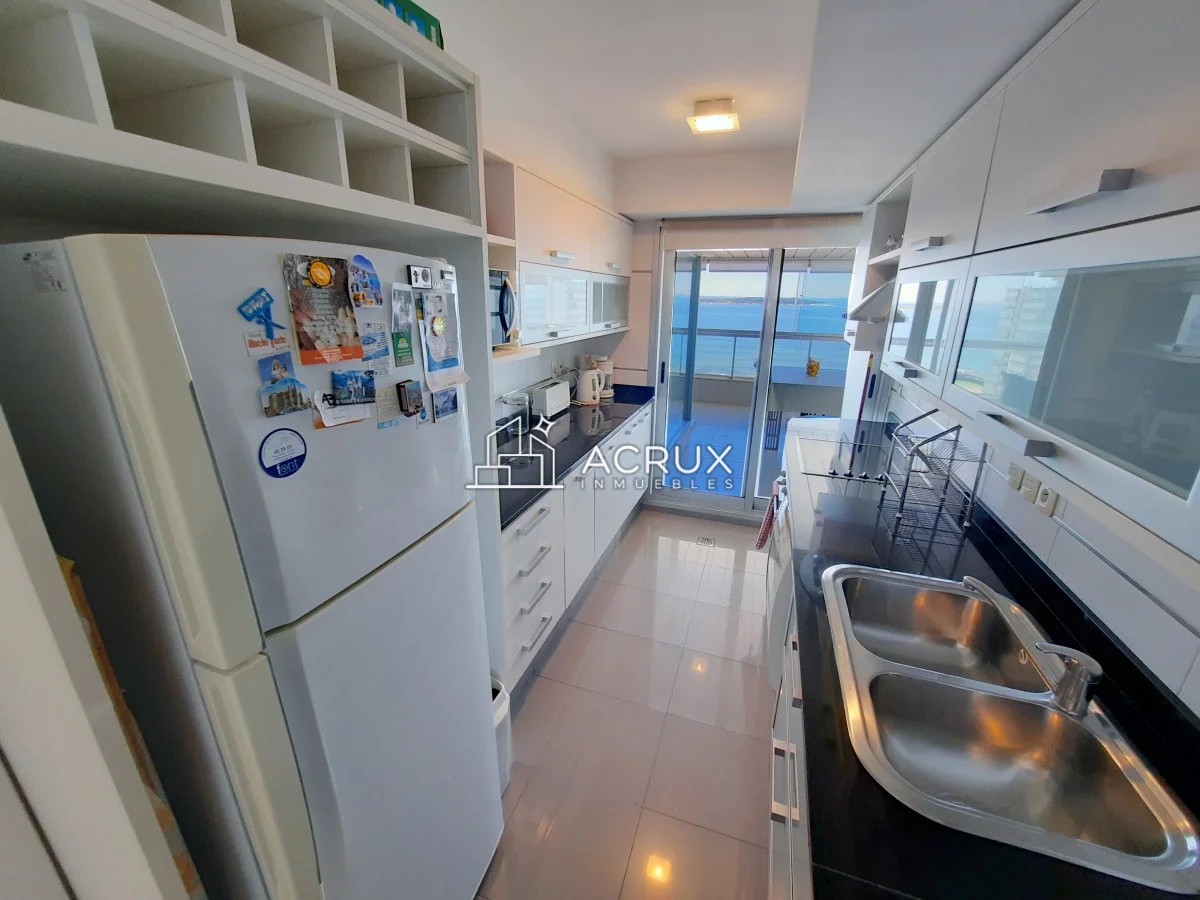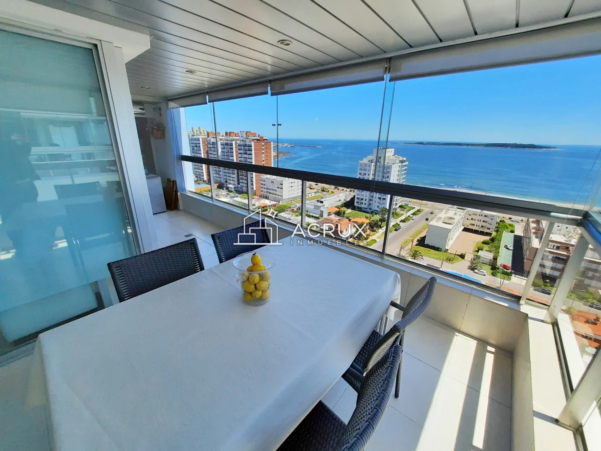 Espectacular apartamento PentHouse en dos niveles en la Playa Mansa. Ubicado en la Parada 3 de la Mansa. En el Piso 16 cuenta con amplio living comedor con vista a toda la Mansa e Isla Gorrito. Gran terraza en L cerrada, moderna cocina muy confortable. En este nivel cuenta también con 2 dormitorios, uno en suite, más otro cn baño completo. Baños con hidromasaje. Mediante una escalera interna se accede a la planta alta con barbacoa o playroom exclusiva de 40 m2 en doble altura con baño e ingreso independiente.