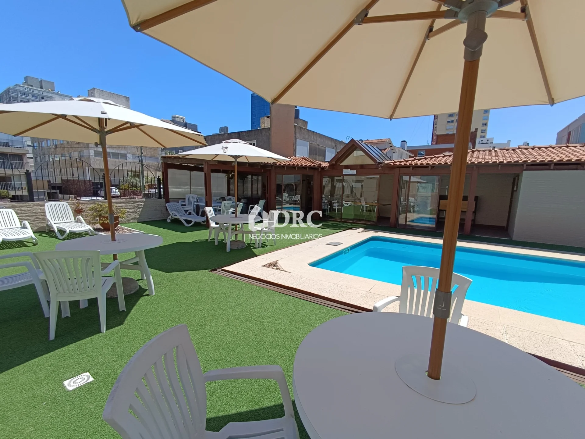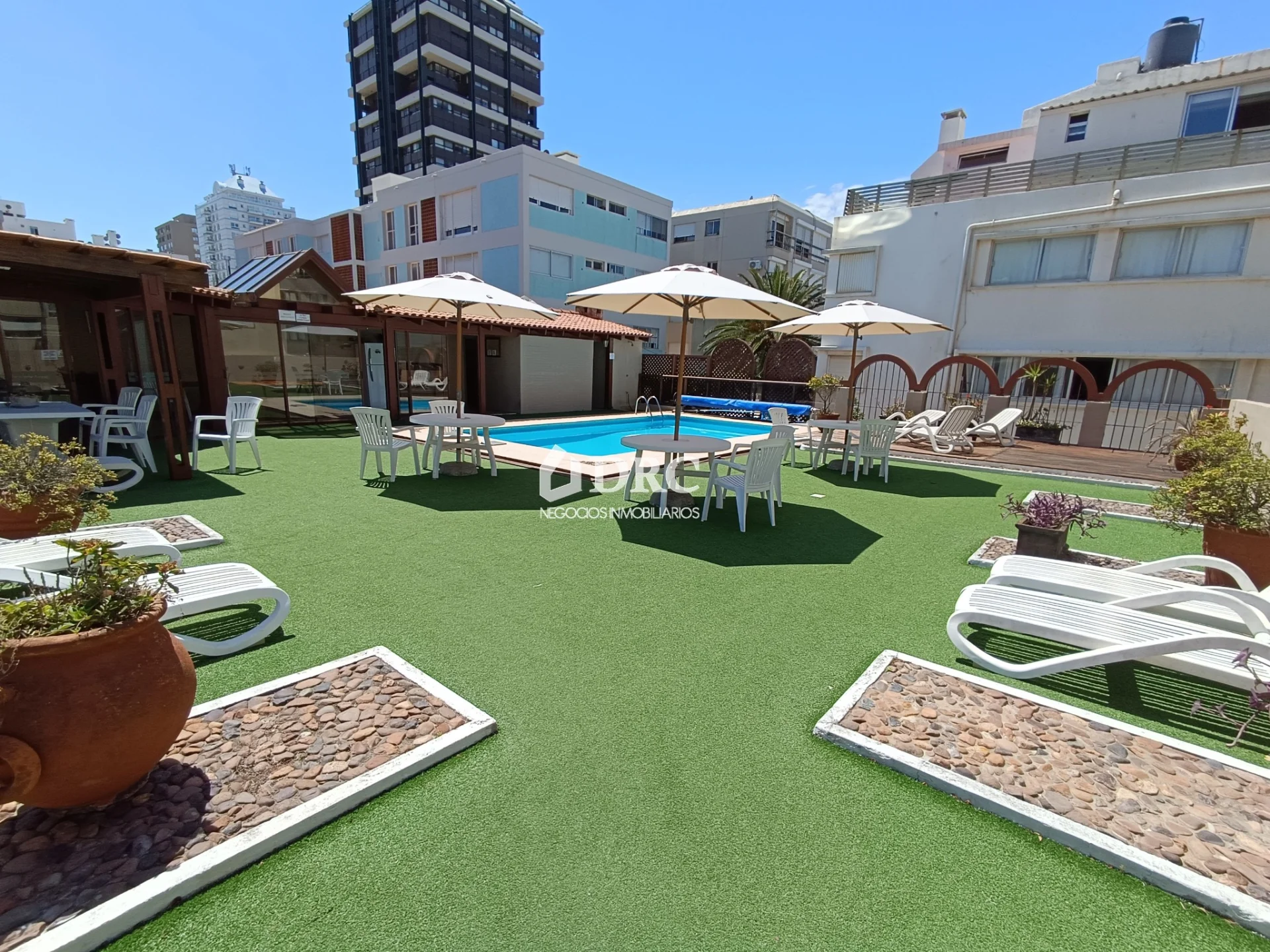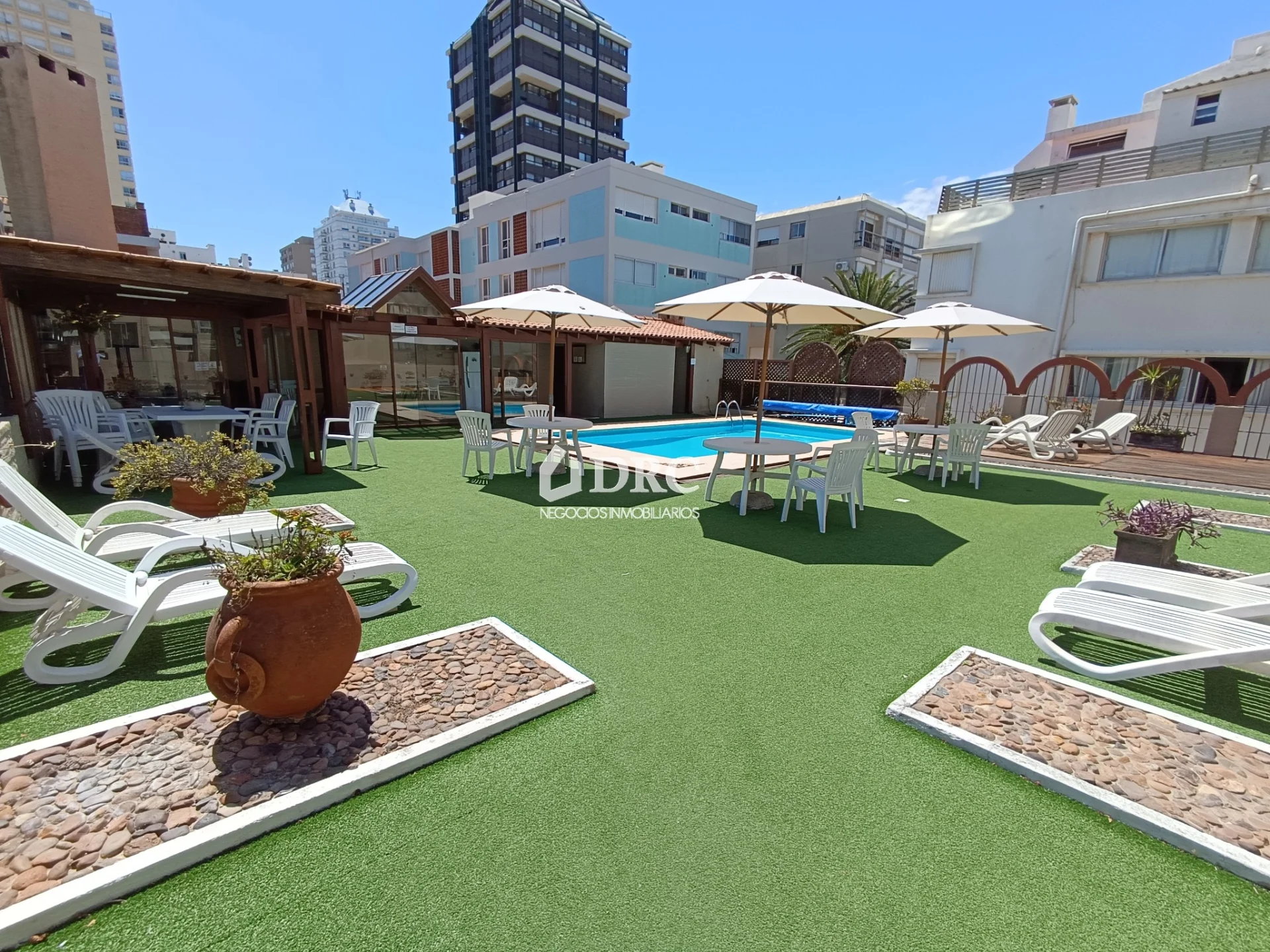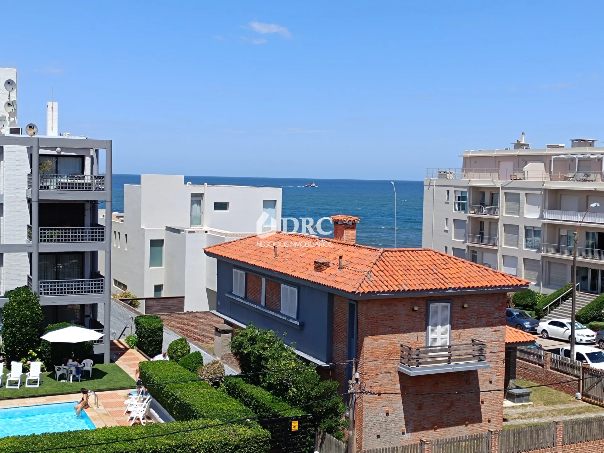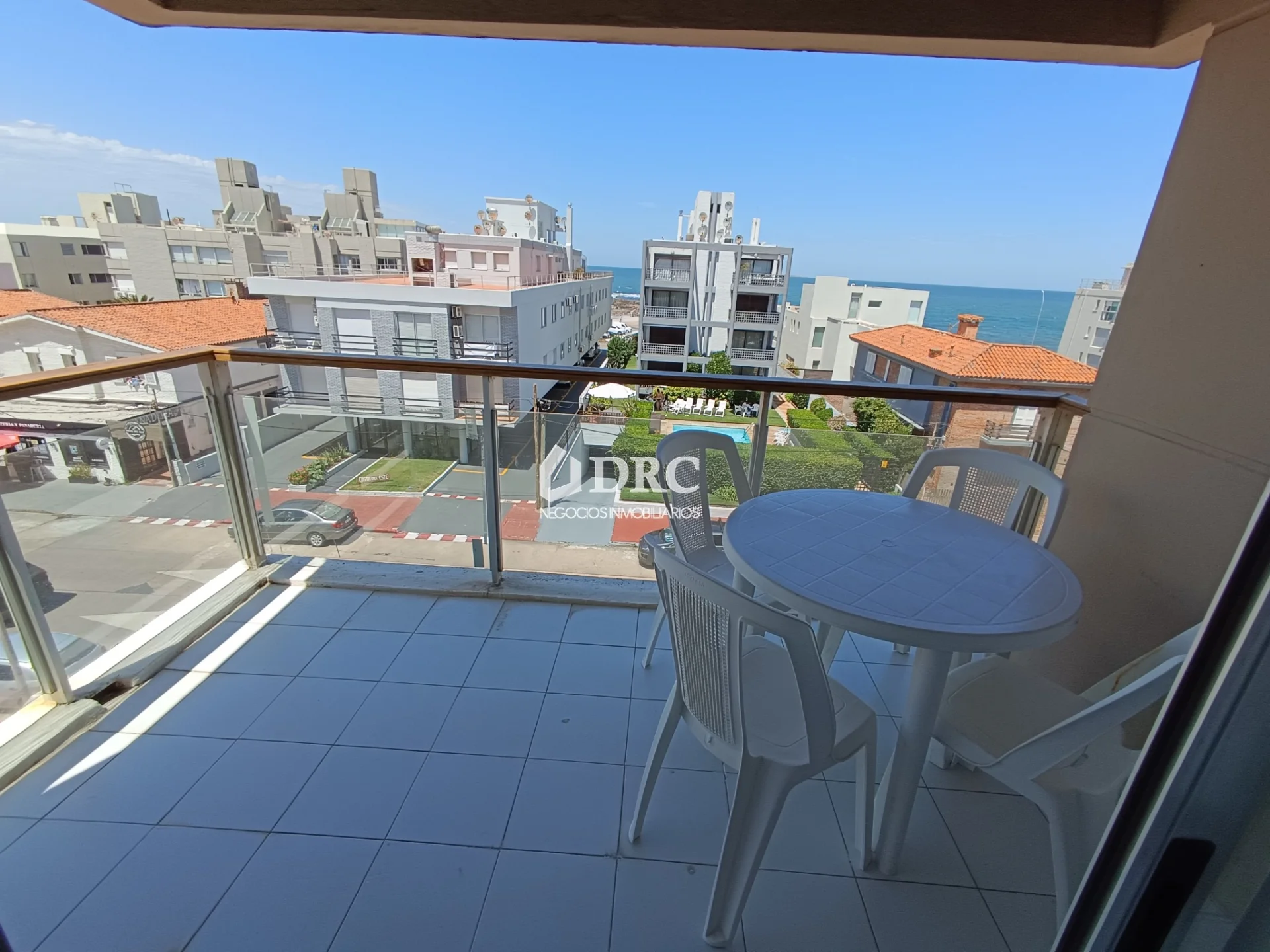 DRC Negocios Inmobiliarios comercializa: Apartamento muy luminoso, al frente, en excelente ubicación, con vista al mar y hermoso espacio con piscina y barbacoa. Una propiedad para disfrutar durante todo el año. Se vende amueblado y equipado. CONSTA DE: • Amplio living comedor con terraza y vista al mar. • Cocina independiente con instalación para lavarropa y tendido. • 2 dormitorios con placares, el principal con baño en suite. • Segundo baño completo. Garaje cerrado en lugar fijo y estacionamiento de cortesía. El edificio cuenta con piscina en amplio espacio, con solárium, sombrillas, reposeras, mesas y sillas. Posee también barbacoa cerrada con parrillero. Servicio de mucama 5 veces a la semana en verano y 3 veces en invierno., incluido en los gastos comunes. Portería en horario diurno. Acepta mascotas.