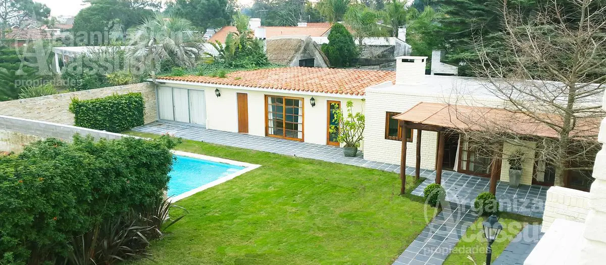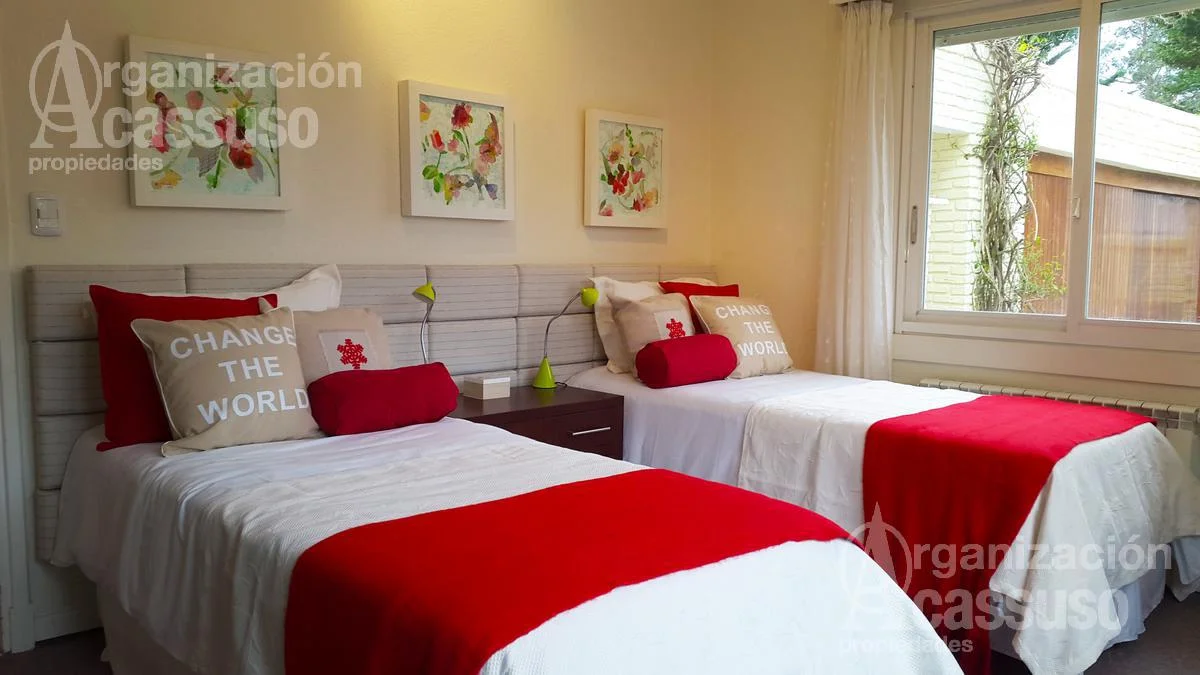 La casa consta de 2 máster suite ,2 dormitorios con baño doble, escritorio, jardín nuevo y riego automático , servicio completo , baño social, living, comedor, cocina , lavadero, calefacción central en toda la casa , además de aire acondicionado en cada habitación, alarma , antena satelital, wifi y 6 tv full hd smart etc