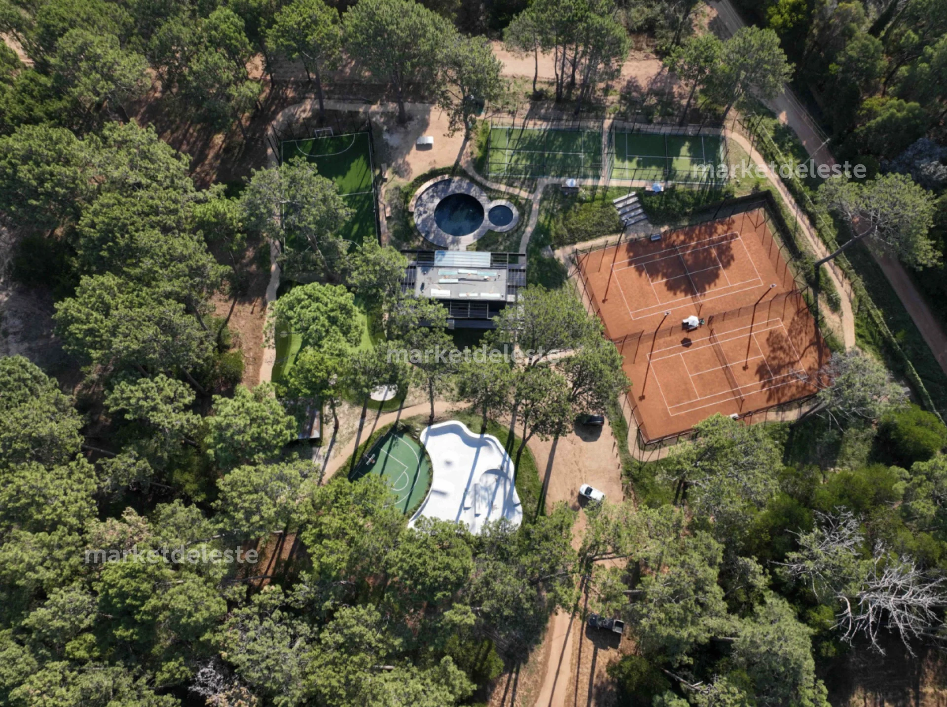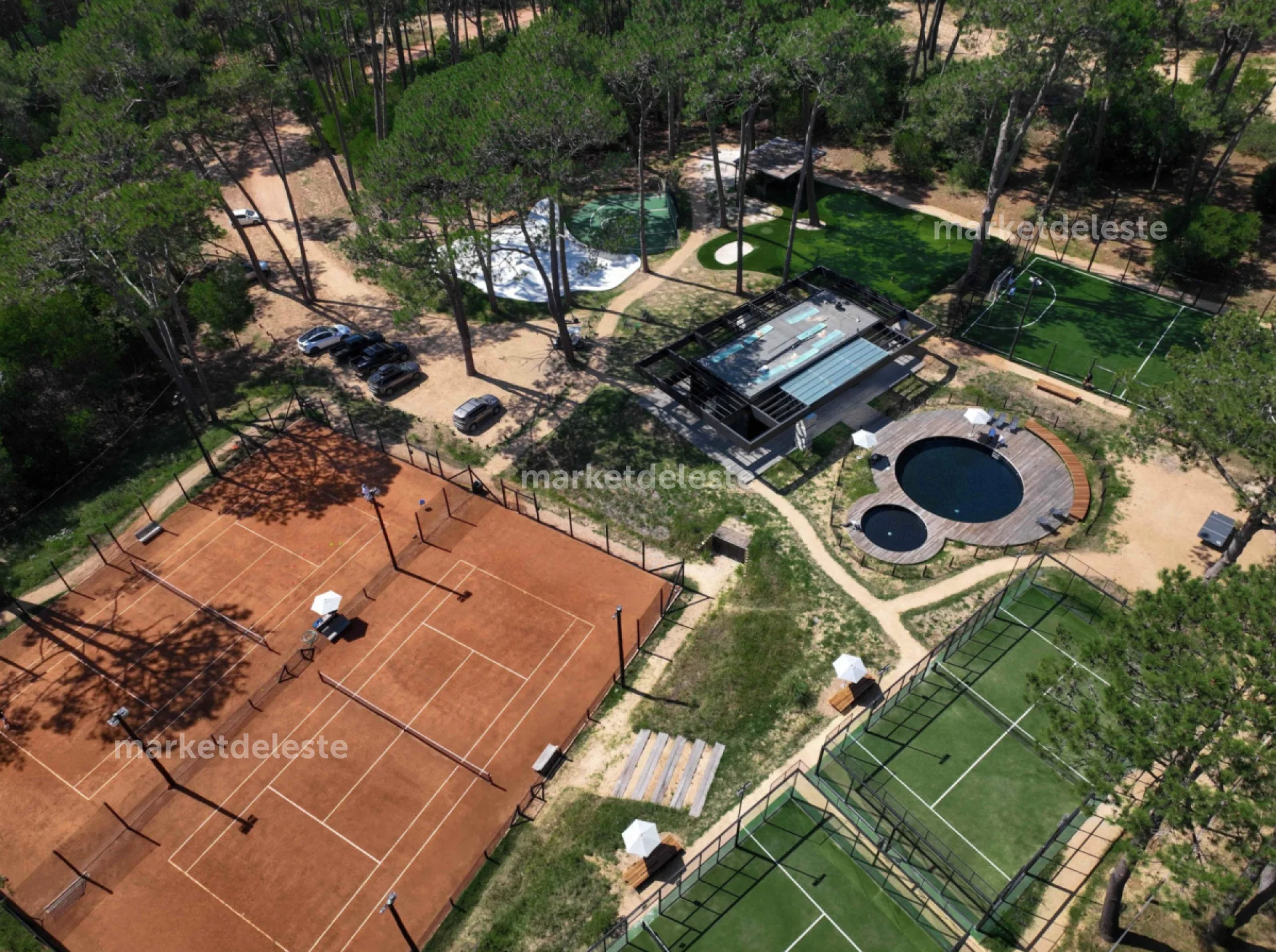 El barrio cuenta con 400 m de costa sobre la Laguna, seguridad 24 hs, clubhouse, gimnasio, 2 cancha de tenis de polvo de ladrillo, 2 canchas de Paddle, piscinas para niños y adolescentes, piscina para adultos de 21 m, mesas de teqball, skatepark, aros de baloncesto, frontón y un Golf Academy con dos jaulas y un putting green de césped sintético, así como un circuito de trekking que rodea la zona deportiva.