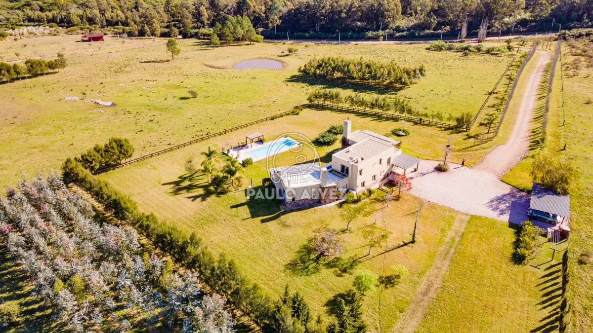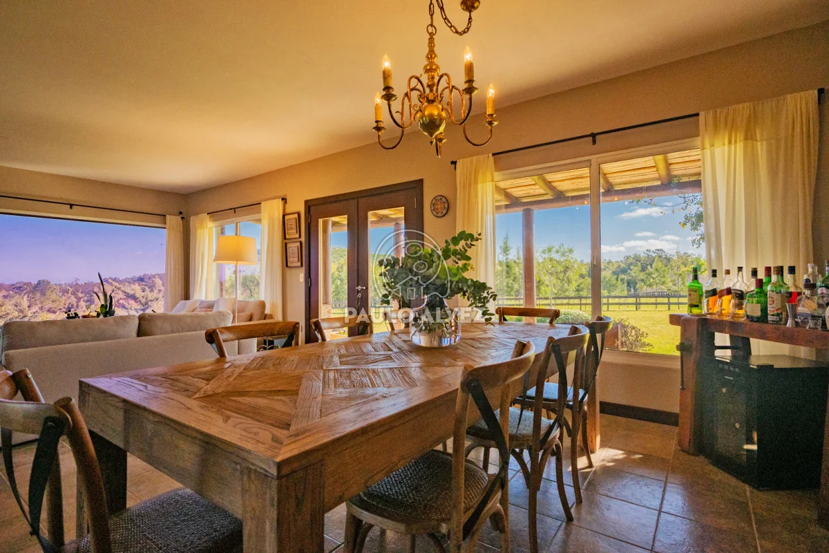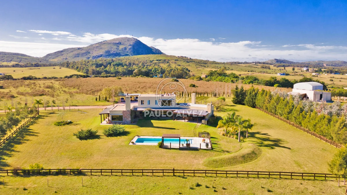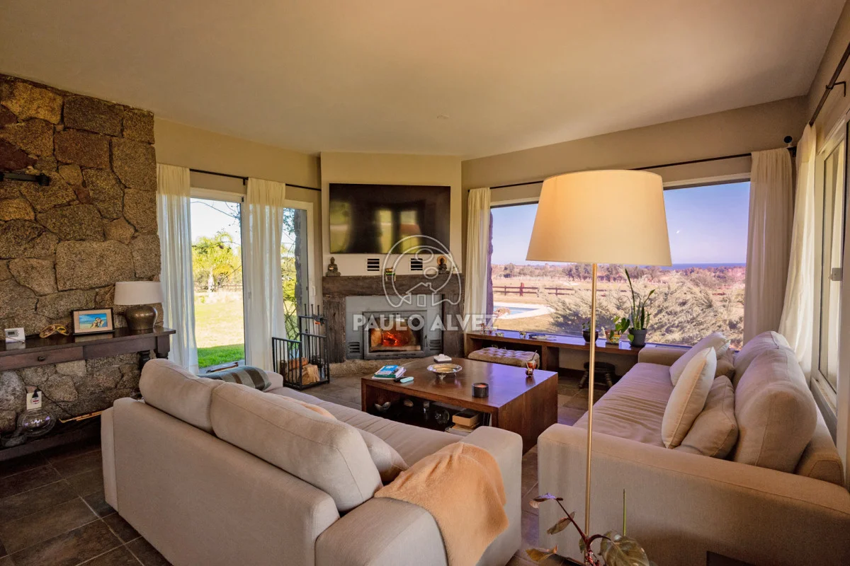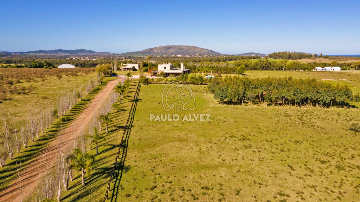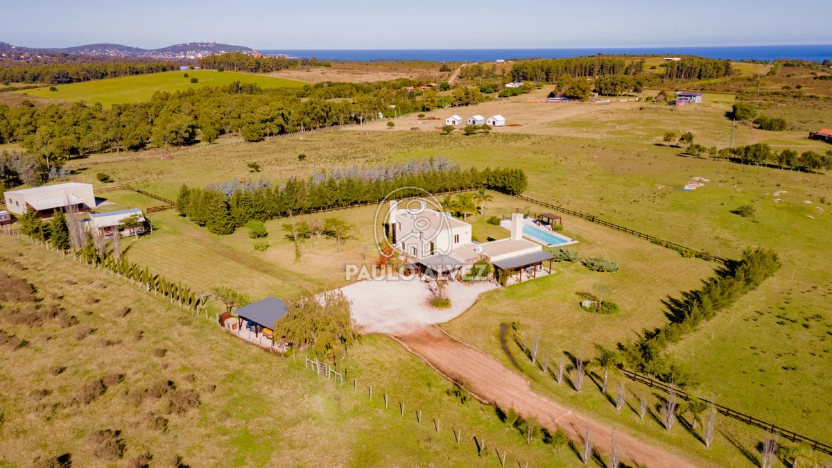 Chacra marítima con vista panorámica al mar y al Cerro Pan de Azúcar. Importante oportunidad: chacra de 6,189 hectáreas ubicada en un entorno privilegiado que combina naturaleza, privacidad y vistas incomparables. Cuenta con 270 m² construidos, destacándose un chalet de estilo con ambientes amplios, funcionales y excelente luminosidad. La casa principal se desarrolla en dos plantas. En planta baja se encuentra un cálido living-comedor con estufa a leña de alto rendimiento, ideal para disfrutar en invierno, integrado a la cocina mediante un práctico pasaplatos. La cocina está equipada con muebles aéreos y bajo mesada de alta calidad. Desde el pasillo se accede a dos cómodos dormitorios en suite, ambos orientados al noreste, lo que les garantiza una agradable luz natural durante la mañana. En planta alta, la suite principal se destaca por su vestidor y una espectacular vista 360º al entorno, que abarca tanto el mar como el Cerro Pan de Azúcar. La casa cuenta con calefacción central mediante bomba de calor y agua caliente central en todos los ambientes, asegurando confort en cualquier época del año. El área social exterior, orientada al suroeste, incluye un espacio con estufa de alto rendimiento, ideal para compartir en familia o con amigos. Desde allí se accede a la piscina de agua salada, revestida en policloruro de vinilo y equipada con bomba de calor. Dispone de dos parrilleros: uno exterior y otro en barbacoa cubierta, que ofrece un ambiente protegido y confortable, con una vista privilegiada al paisaje natural. Además, la chacra cuenta con: Casa para casero con dos dormitorios y baño, galpón de 120 m² en acero galvanizado. Caballerizas para tres caballos. Dos pozos de agua independientes: uno para uso doméstico y otro para riego. Cuenta con 500 metros de empalizada que delimitan el campo del parque que rodea la casa. Una opción excepcional para quienes buscan disfrutar del entorno natural sin renunciar al confort. Coordiná tu visita y descubrí este lugar único. Consúltanos para más información.