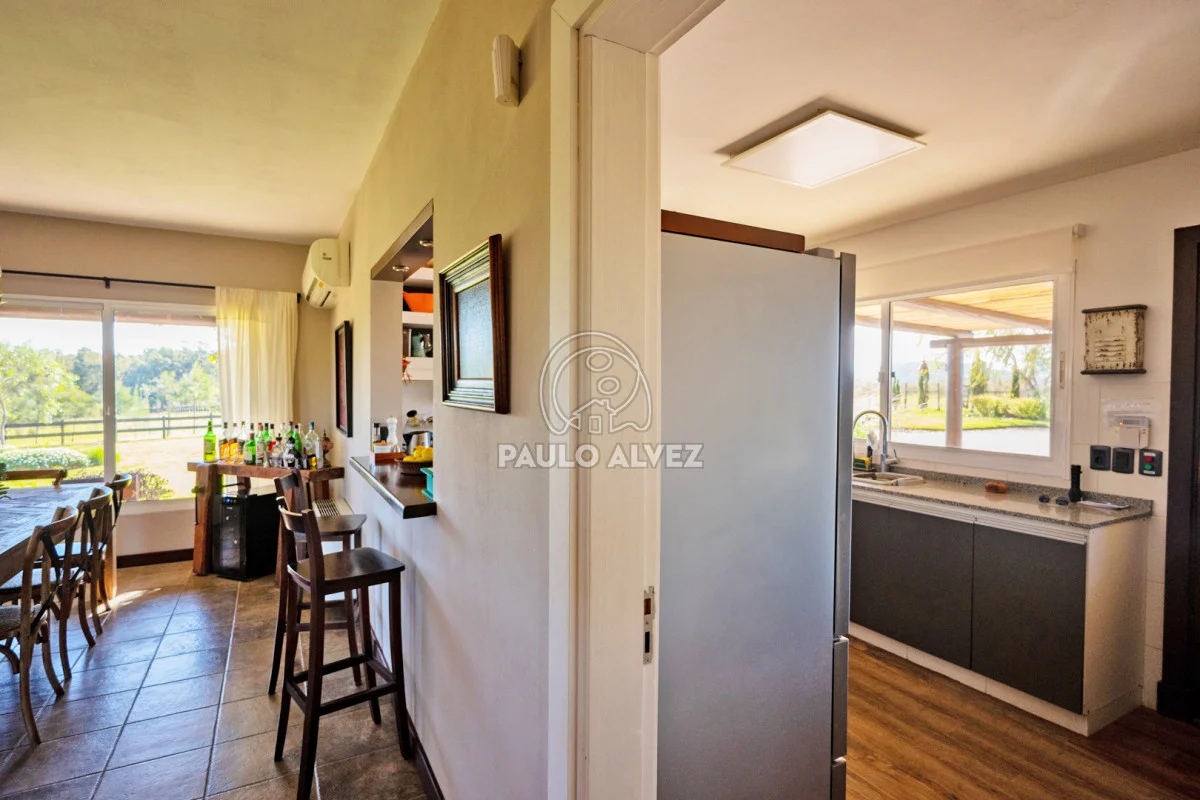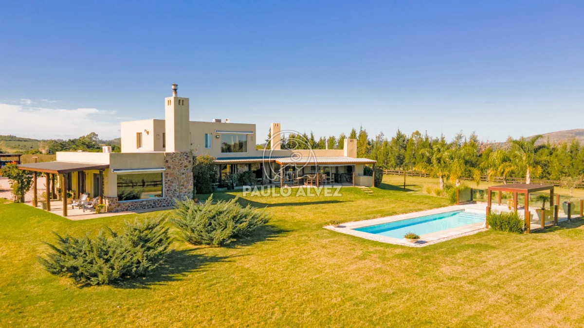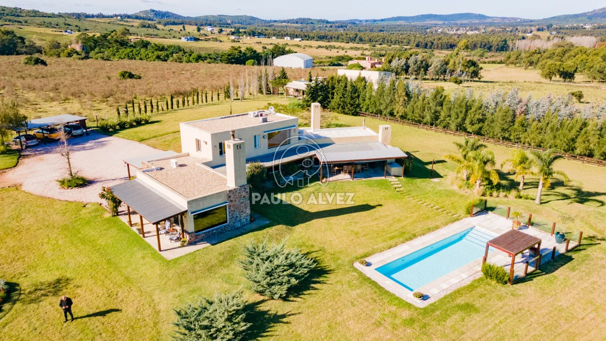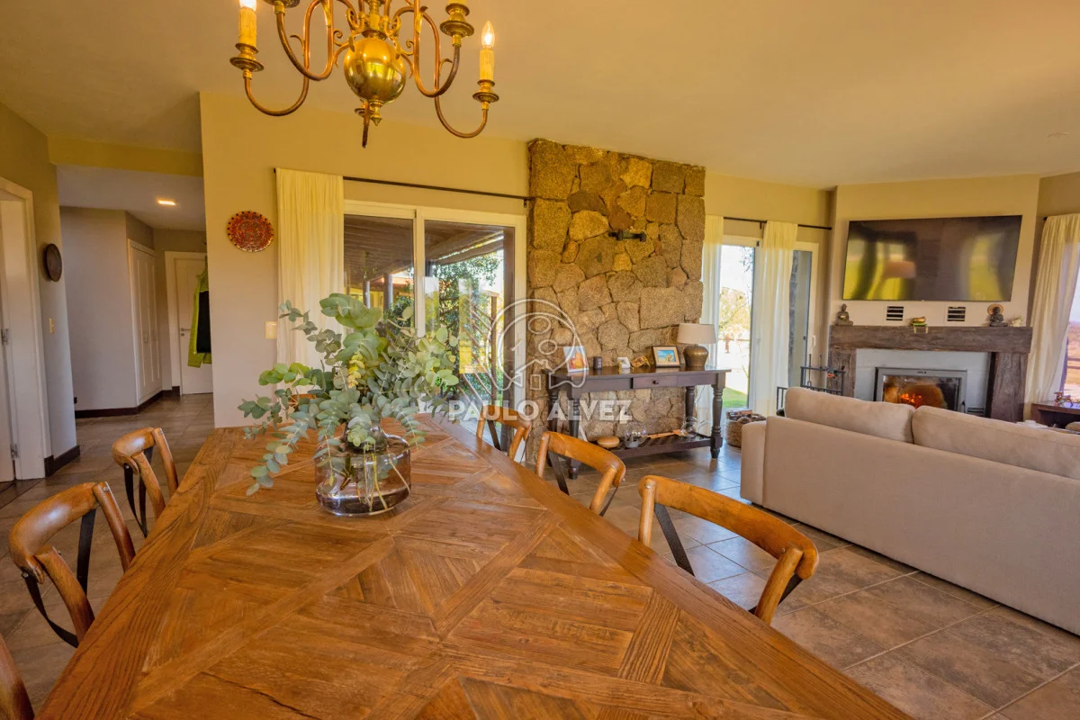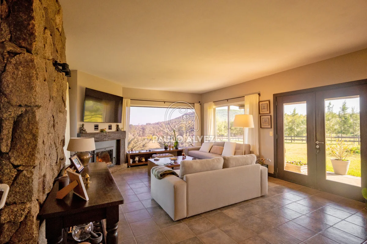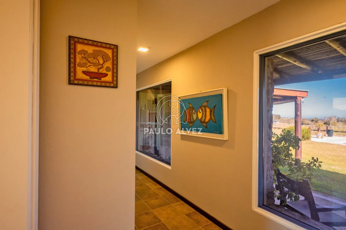 Chacra marítima con vista panorámica al mar y al Cerro Pan de Azúcar. Importante oportunidad: chacra de 6,189 hectáreas ubicada en un entorno privilegiado que combina naturaleza, privacidad y vistas incomparables. Cuenta con 270 m² construidos, destacándose un chalet de estilo con ambientes amplios, funcionales y excelente luminosidad. La casa principal se desarrolla en dos plantas. En planta baja se encuentra un cálido living-comedor con estufa a leña de alto rendimiento, ideal para disfrutar en invierno, integrado a la cocina mediante un práctico pasaplatos. La cocina está equipada con muebles aéreos y bajo mesada de alta calidad. Desde el pasillo se accede a dos cómodos dormitorios en suite, ambos orientados al noreste, lo que les garantiza una agradable luz natural durante la mañana. En planta alta, la suite principal se destaca por su vestidor y una espectacular vista 360º al entorno, que abarca tanto el mar como el Cerro Pan de Azúcar. La casa cuenta con calefacción central mediante bomba de calor y agua caliente central en todos los ambientes, asegurando confort en cualquier época del año. El área social exterior, orientada al suroeste, incluye un espacio con estufa de alto rendimiento, ideal para compartir en familia o con amigos. Desde allí se accede a la piscina de agua salada, revestida en policloruro de vinilo y equipada con bomba de calor. Dispone de dos parrilleros: uno exterior y otro en barbacoa cubierta, que ofrece un ambiente protegido y confortable, con una vista privilegiada al paisaje natural. Además, la chacra cuenta con: Casa para casero con dos dormitorios y baño, galpón de 120 m² en acero galvanizado. Caballerizas para tres caballos. Dos pozos de agua independientes: uno para uso doméstico y otro para riego. Cuenta con 500 metros de empalizada que delimitan el campo del parque que rodea la casa. Una opción excepcional para quienes buscan disfrutar del entorno natural sin renunciar al confort. Coordiná tu visita y descubrí este lugar único. Consúltanos para más información.