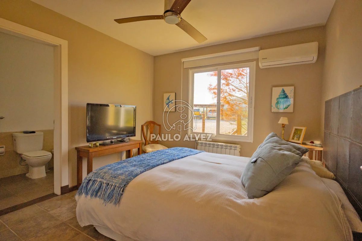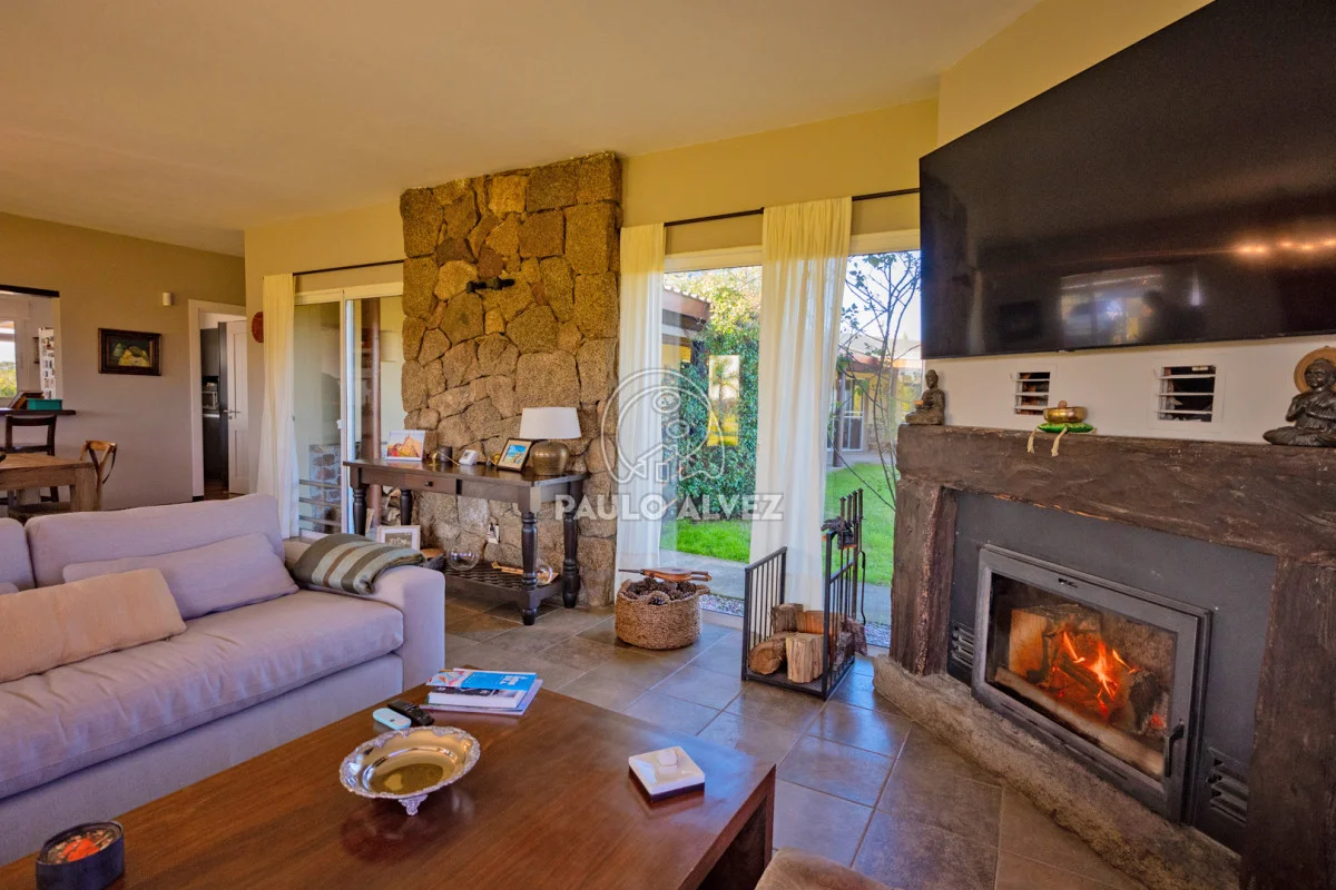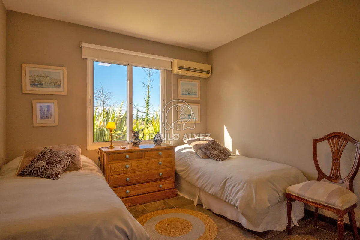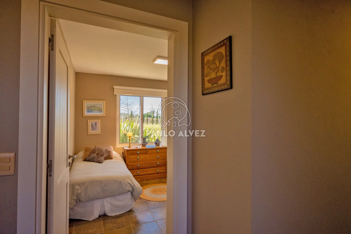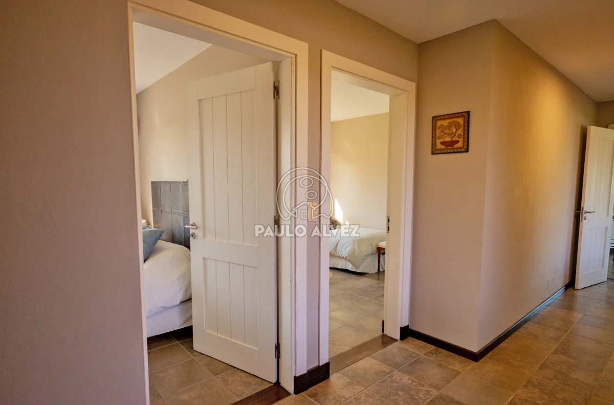 Chacra marítima con vista panorámica al mar y al Cerro Pan de Azúcar. Importante oportunidad: chacra de 6,189 hectáreas ubicada en un entorno privilegiado que combina naturaleza, privacidad y vistas incomparables. Cuenta con 270 m² construidos, destacándose un chalet de estilo con ambientes amplios, funcionales y excelente luminosidad. La casa principal se desarrolla en dos plantas. En planta baja se encuentra un cálido living-comedor con estufa a leña de alto rendimiento, ideal para disfrutar en invierno, integrado a la cocina mediante un práctico pasaplatos. La cocina está equipada con muebles aéreos y bajo mesada de alta calidad. Desde el pasillo se accede a dos cómodos dormitorios en suite, ambos orientados al noreste, lo que les garantiza una agradable luz natural durante la mañana. En planta alta, la suite principal se destaca por su vestidor y una espectacular vista 360º al entorno, que abarca tanto el mar como el Cerro Pan de Azúcar. La casa cuenta con calefacción central mediante bomba de calor y agua caliente central en todos los ambientes, asegurando confort en cualquier época del año. El área social exterior, orientada al suroeste, incluye un espacio con estufa de alto rendimiento, ideal para compartir en familia o con amigos. Desde allí se accede a la piscina de agua salada, revestida en policloruro de vinilo y equipada con bomba de calor. Dispone de dos parrilleros: uno exterior y otro en barbacoa cubierta, que ofrece un ambiente protegido y confortable, con una vista privilegiada al paisaje natural. Además, la chacra cuenta con: Casa para casero con dos dormitorios y baño, galpón de 120 m² en acero galvanizado. Caballerizas para tres caballos. Dos pozos de agua independientes: uno para uso doméstico y otro para riego. Cuenta con 500 metros de empalizada que delimitan el campo del parque que rodea la casa. Una opción excepcional para quienes buscan disfrutar del entorno natural sin renunciar al confort. Coordiná tu visita y descubrí este lugar único. Consúltanos para más información.