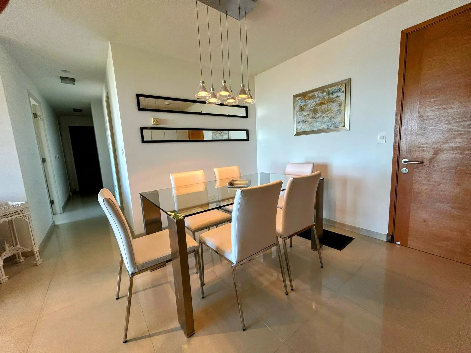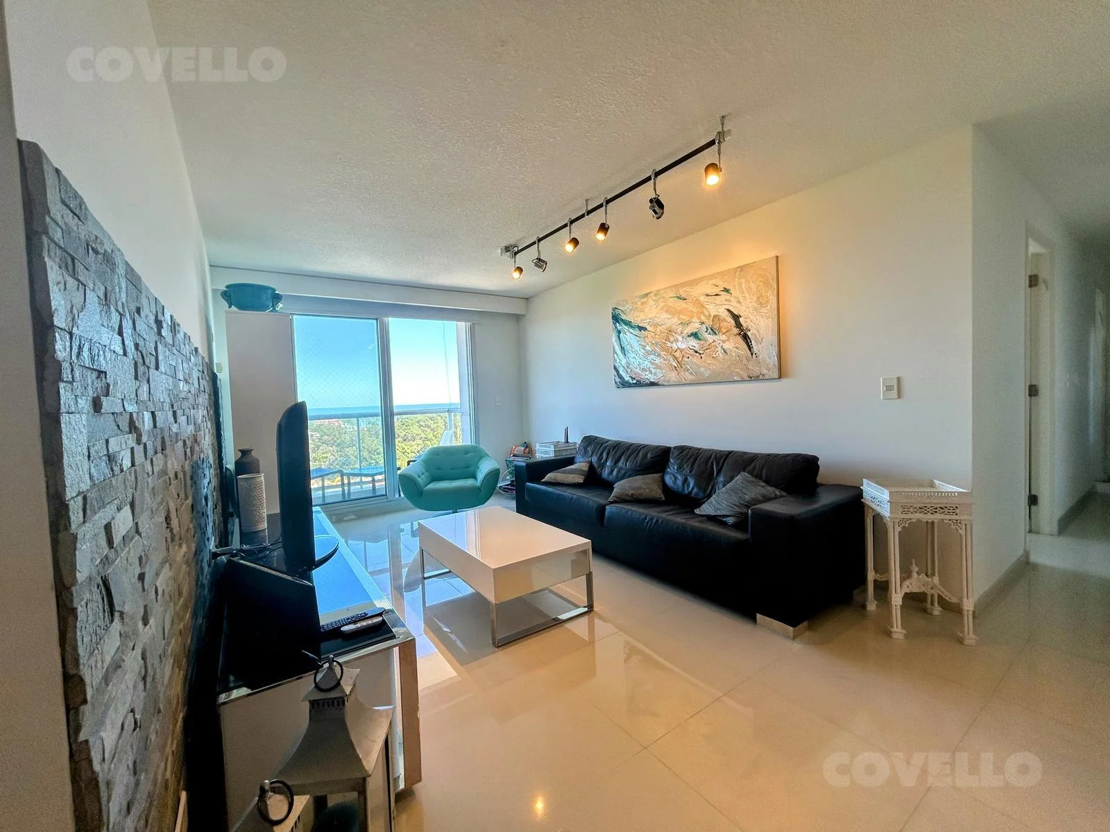 La unidad se encuentra en un piso alto, lo que le permite disfrutar de muy buena luminosidad natural y vistas abiertas hacia la bahía de Playa Mansa y el entorno de Punta Ballena, características destacadas del edificio . Presenta una distribución funcional y bien aprovechada, con ambientes cómodos y modernos.