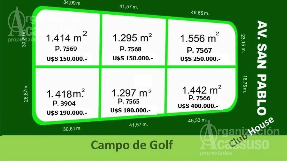Primera manzana sobre golf Punta del Este y sobre Club Houseelevada y niveladacon fibra óptica y cámaras de seguridad8.426 m2Martillero Responsable: Mariano Carro C.S.I: 3687