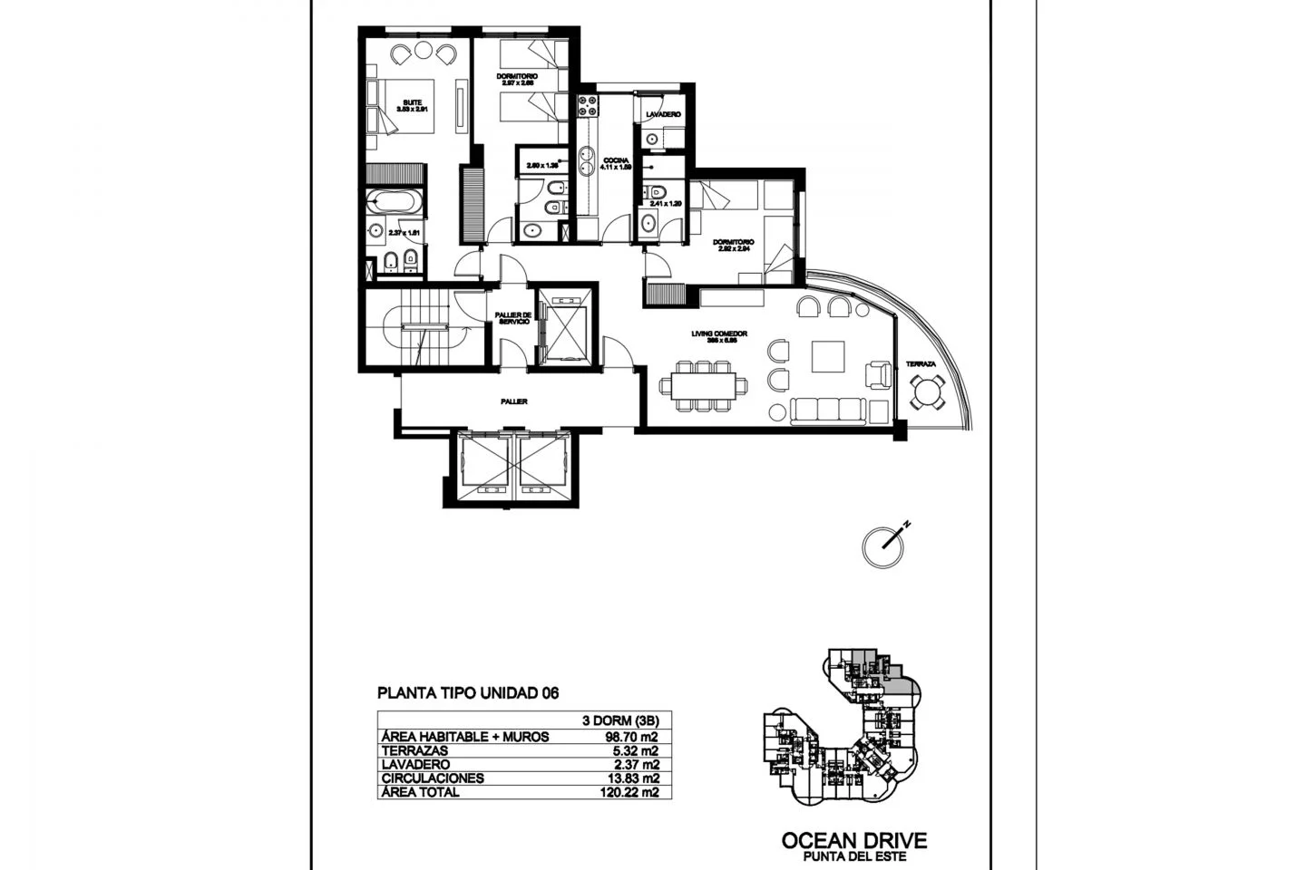 Ocean Drive Punta del Este con 2 torres de Lujo sobre 14.000 m2 a pocos metros de la Parada 8 de Playa Brava !!! Excelente planta de 3 suites. Para vivir o pasar las mejores vacaciones !!! Espectacular orientación que permite tener el sol desde la mañana hasta la ultima hora de la tarde. Cuenta con cocina definida y terraza lavadero. Losa radiante. Garaje con baulera.. Vista al mar. Todos los servicio y amenities. Ubicado en avenida Roosevelt, a pocas cuadras de las mejores playas de Punta del Este, las torres Ocean Drive se extienden sobre un terreno de 15.000 mt2. Tres piscinas climatizadas, dos de ellas cerradas, ubicadas en la planta baja de cada torre, sauna seco, sala de relax, gimnasio, home theater, business center, y salones de adultos, adolescentes y ninos son algunas de las ventajas que se disfrutan todos los dias y durante todo el ano en Ocean Drive. Cuenta con actividades para todas las edades: los mas chicos, una sala de juegos a prueba de sonidos, juegos en el parque y una amplia y exclusiva piscina climatizada. Para los mas grandes: dos canchas de tenis de polvo de ladrillo y una jaula de golf para seguir practicando incluso en invierno. Para toda la familia: un club house de 800 m2, cuatro parrilleros totalmente equipados con muebles importados y un enorme deck de madera, terraza enjardinada, y bici senda interna que recorre 500 metros del predio. Ocean Drive cuenta con departamentos de diversas tipologias, con comodidades para todos los gustos y exigencias, cada una con calefaccion por losa radiante individual. Desglose de M2: Planta 90,27m2 + balcon 4,87m2 + Terraza lav 1,99m2 + cochera 12m2 = 109 m2 XINTEL (PSD-PSD-8152)