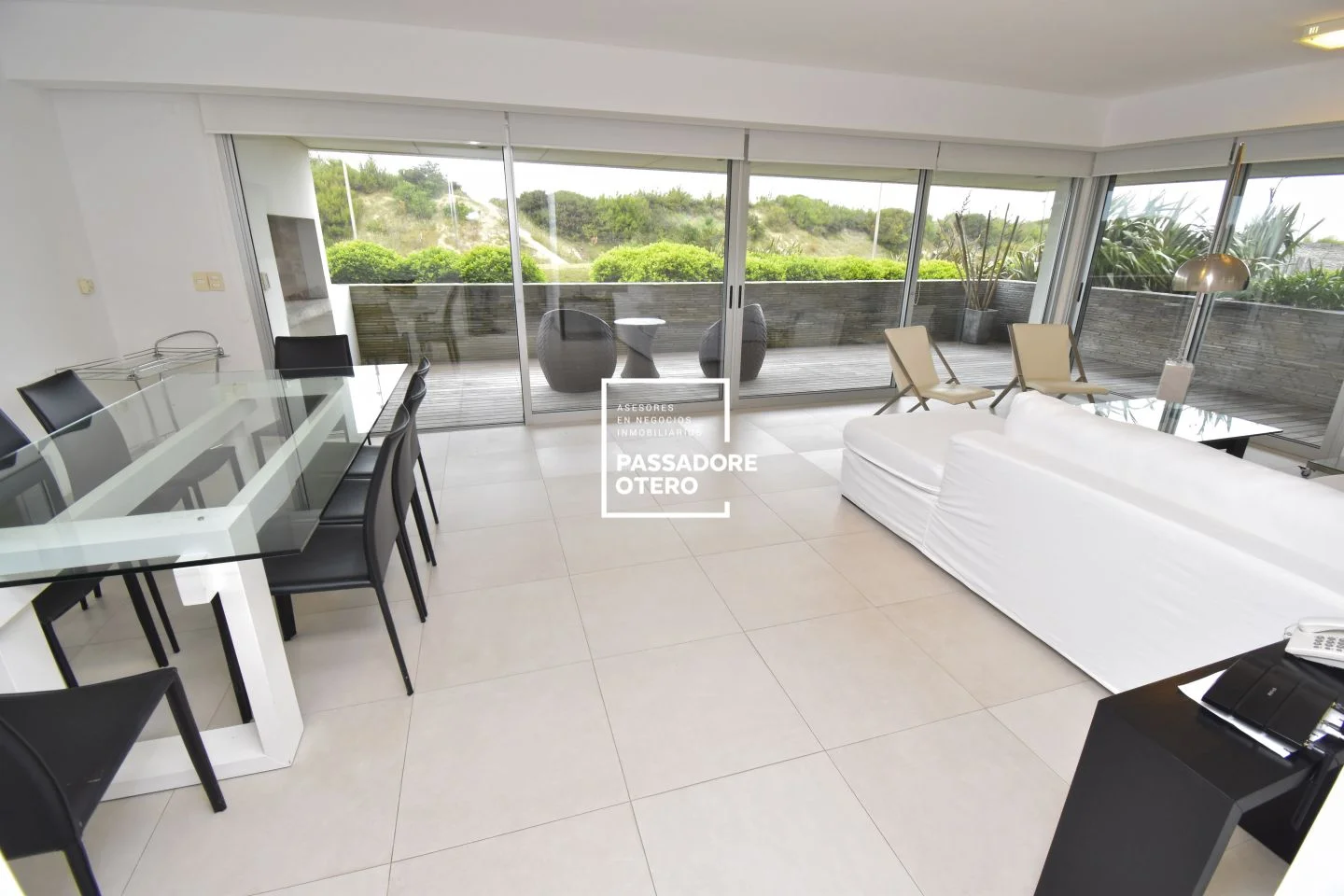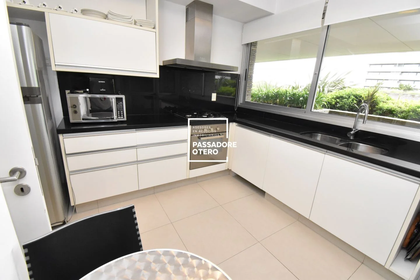 Brava 28, un complejo residencial al pie de playa, ofrece 32 únicas unidades distribuidas en 2 bloques independientes, lo que garantiza tranquilidad y exclusividad. Amplia unidad en primer nivel, gran living comedor con salida directa a terraza con parrillero. 2 Dormitorios en suite y baño social. 3 baños en total. Cocina muy cómoda y terraza lavadero. Losa radiante. Buen equipamiento. Gran piscina climatizada e iluminada con sector para niños. Amplio solarium, hidromasajes. Gym totalmente equipado, sauna, sala de masajes y vestuarios. Salón de fiestas climatizado (SUM) con cocina equipada y sector de parrilla. 2 cocheras fijas y una baulera para cada unidad. Espacio para lavado de autos, bicicleteros. Paliers en cada piso con cuidados detalles de ambientación. Servicio de mucama, servicio de playa, recepción 24 hs. consultenos!!! www.passadore-otero.uy . Caracteristicas: BAULERA, BOX, DORMITORIO EN SUITE, GARAJE, LAVADERO, LIVING COMEDOR, TOILETTE, APTO PARA FAMILIAS/NI?OS, HIDROMASAJE, LAVAVAJILLAS, LOSA RADIANTE, PERMITE MASCOTAS, PLACARD EN COCINA, PLACARD EN DORMITORIO, PORTERIA, SAUNA, SEGURIDAD, SERVICIO DE LIMPIEZA, SUM, ALARMA, CALEFON, COCINA, HELADERA, LAVARROPAS, MICROONDAS, PORTERO ELECTRICO, SAL?N DE USO COM?N, VIGILANCIA, WIFI XINTEL (PSD-PSD-7656)