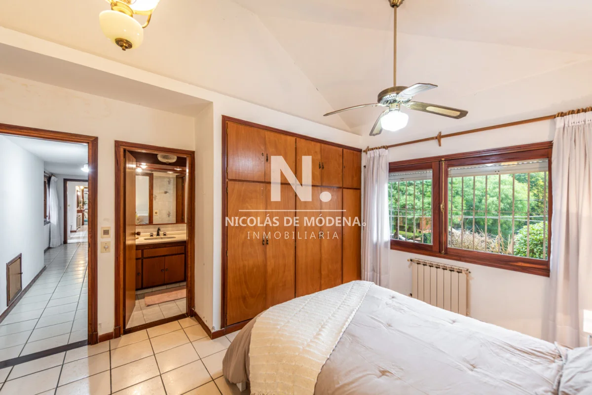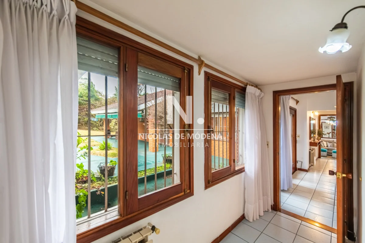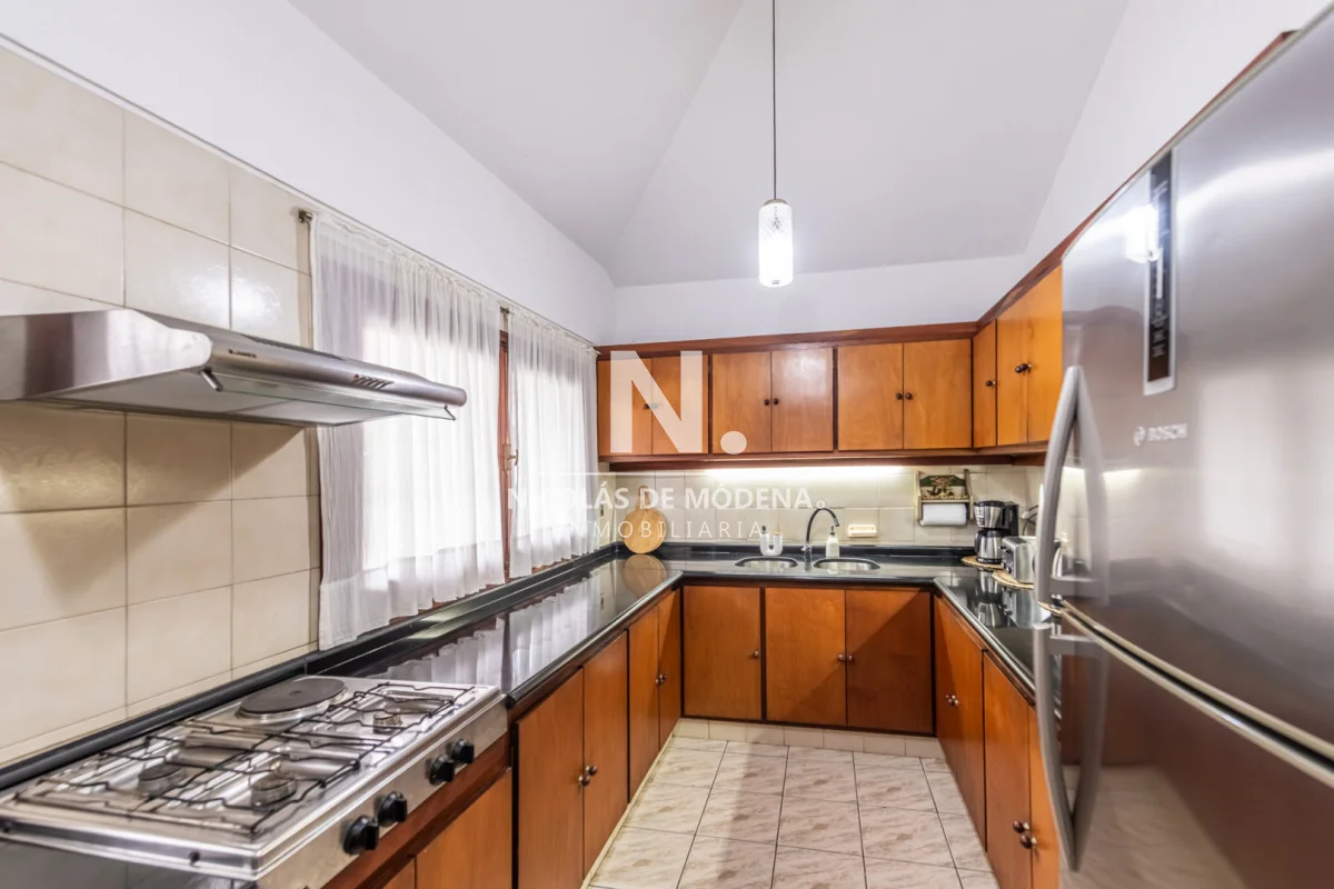 En su interior, la casa cuenta con cuatro dormitorios en suite, todos con excelente iluminación y privacidad, además de un escritorio ideal para trabajo o estudio, toilette de recepción y dormitorio de servicio con baño. La amplia cocina permite una experiencia de uso cómoda y fluida, mientras que el living comedor, de generosas dimensiones, se integra perfectamente con el jardín y las áreas exteriores.