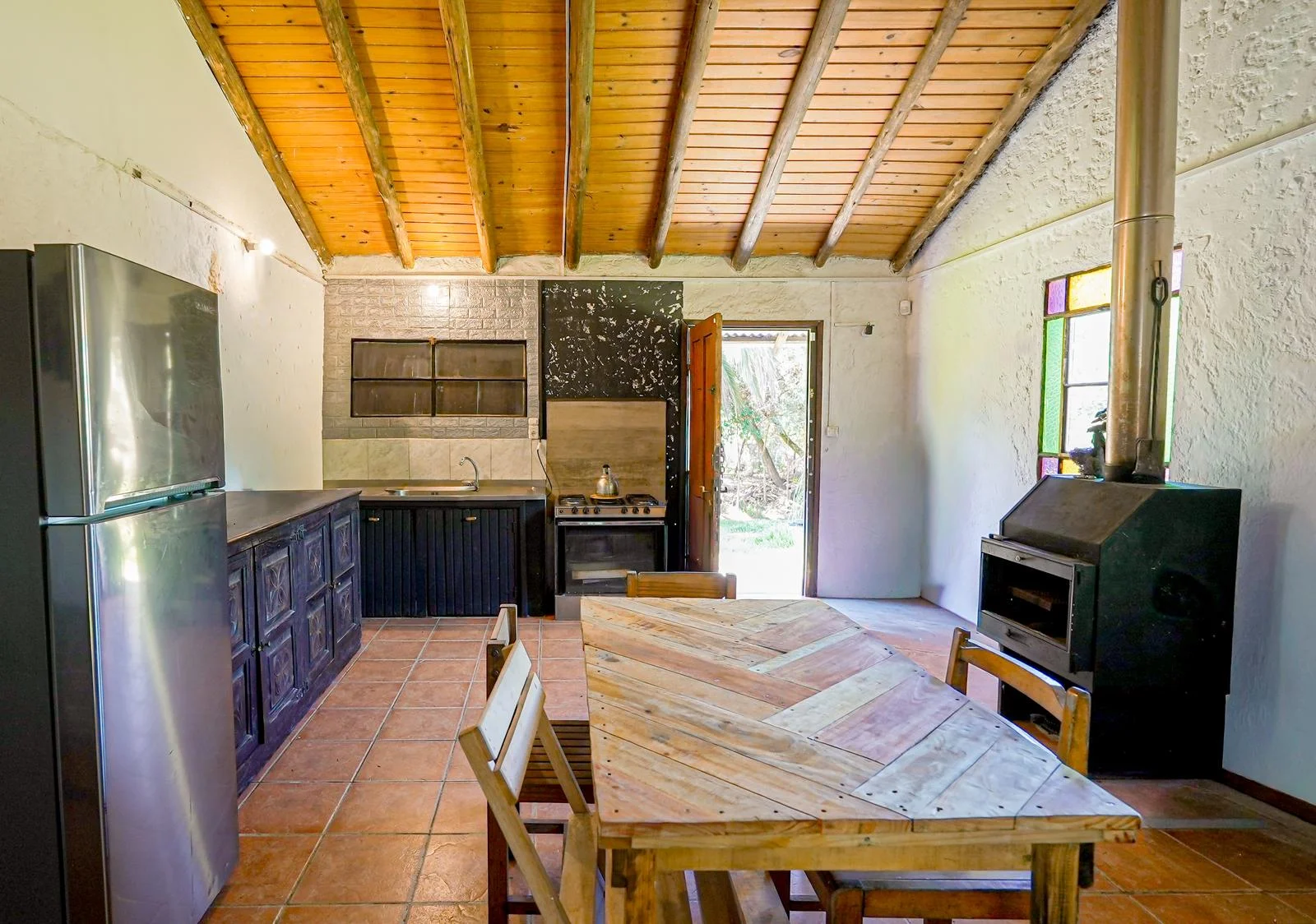 Con una superficie total de 1009 m2, esta casa de una planta cuenta con tres habitaciones bien distribuidas, incluyendo dos suites que garantizan privacidad y confort. Un baño adicional completa la distribución interior, junto con una amplia sala de estar que invita a disfrutar de momentos de relajación y convivencia.
