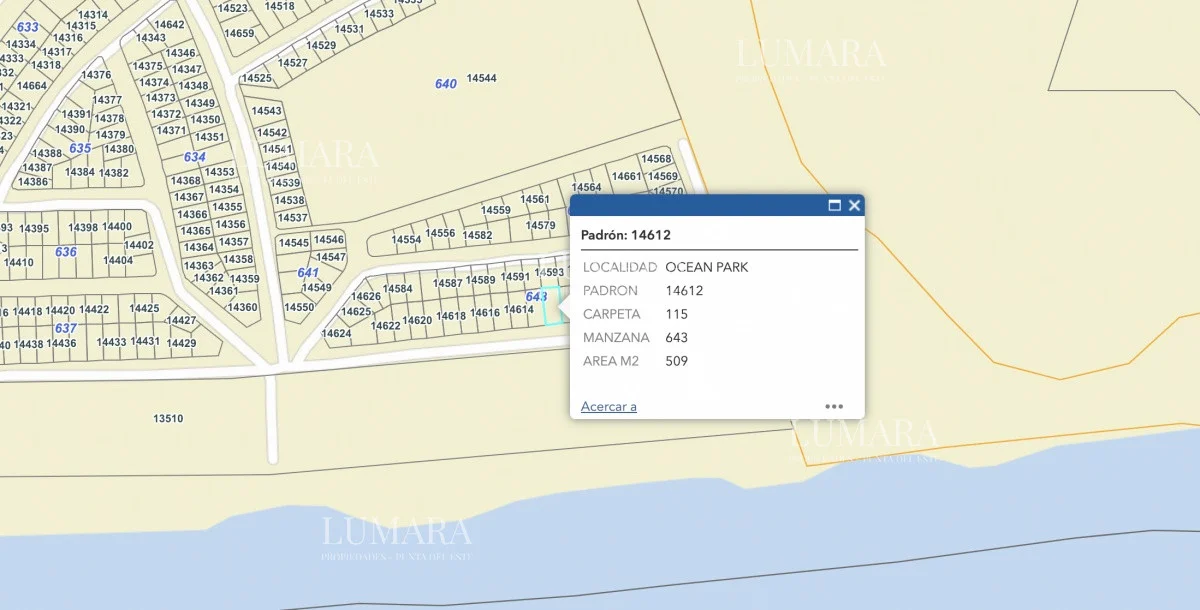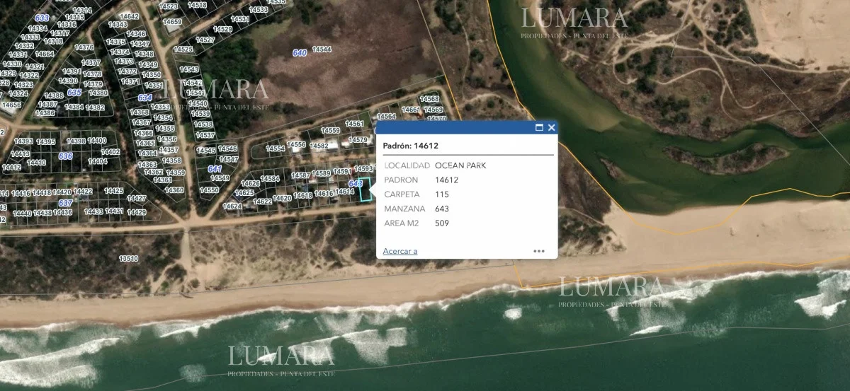 es un terreno en primera línea de Ocean Park, en una de las zonas más bonitas y consolidadas del balneario, está muy cerca, unos 100 mts del arroyo Potrero y su playa de agua dulce y logicamente está frente a loa playa Referencia Interna : Tera-2986