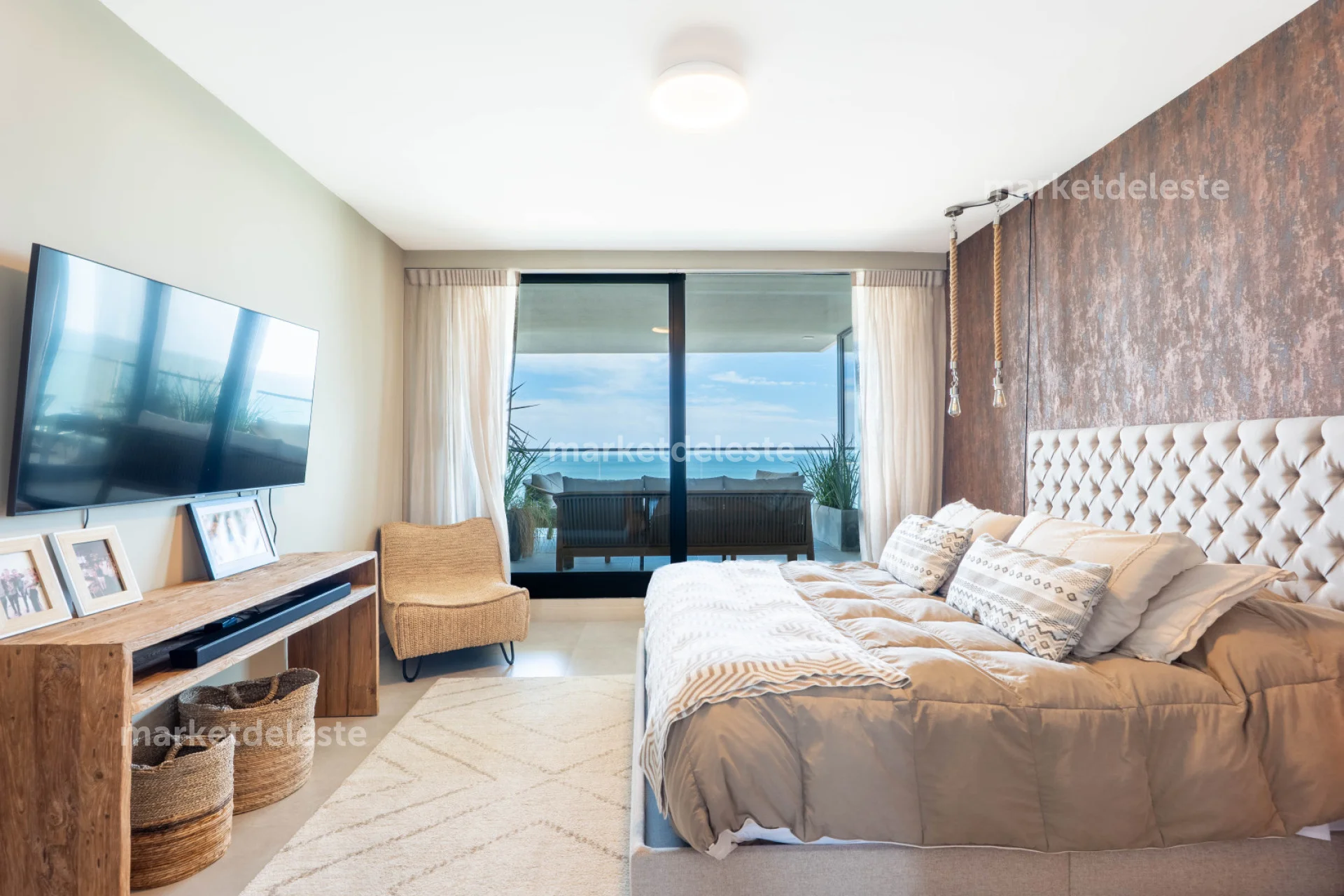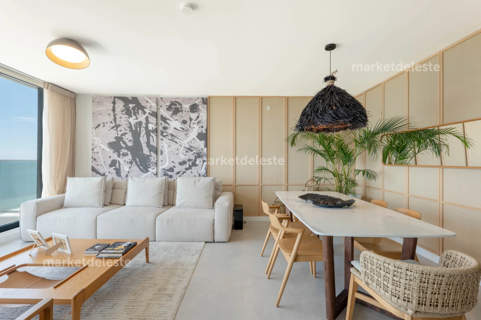 - Living Comedor: Amplio y luminoso, con muebles de diseño y vista al mar, ideales para compartir y relajarse.