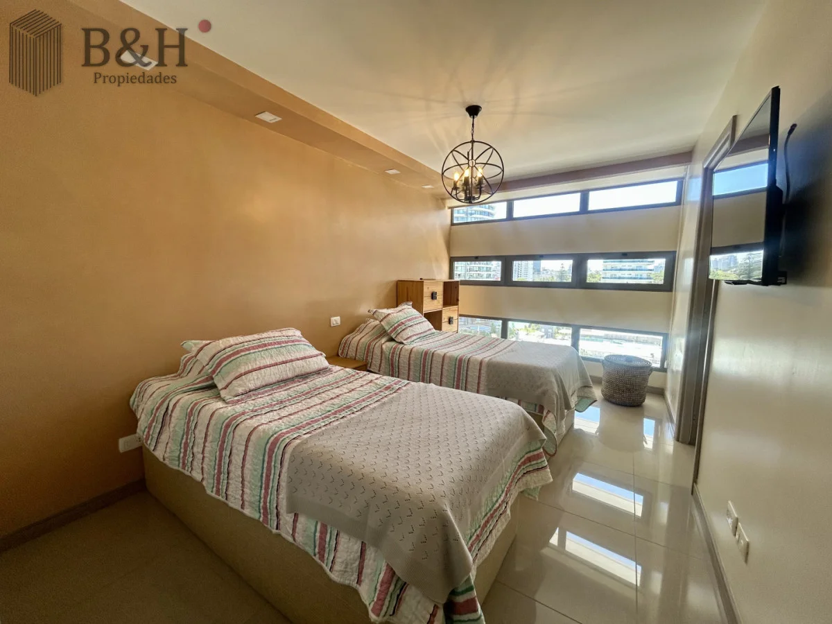 - Servicio de mucamas y de playa para que solo te preocupes por disfrutar, piscina interior climatizada y exterior, sauna, sala de reuniones, barbacoas, recepción 24hs, playroom, gimnasio y mucho más.