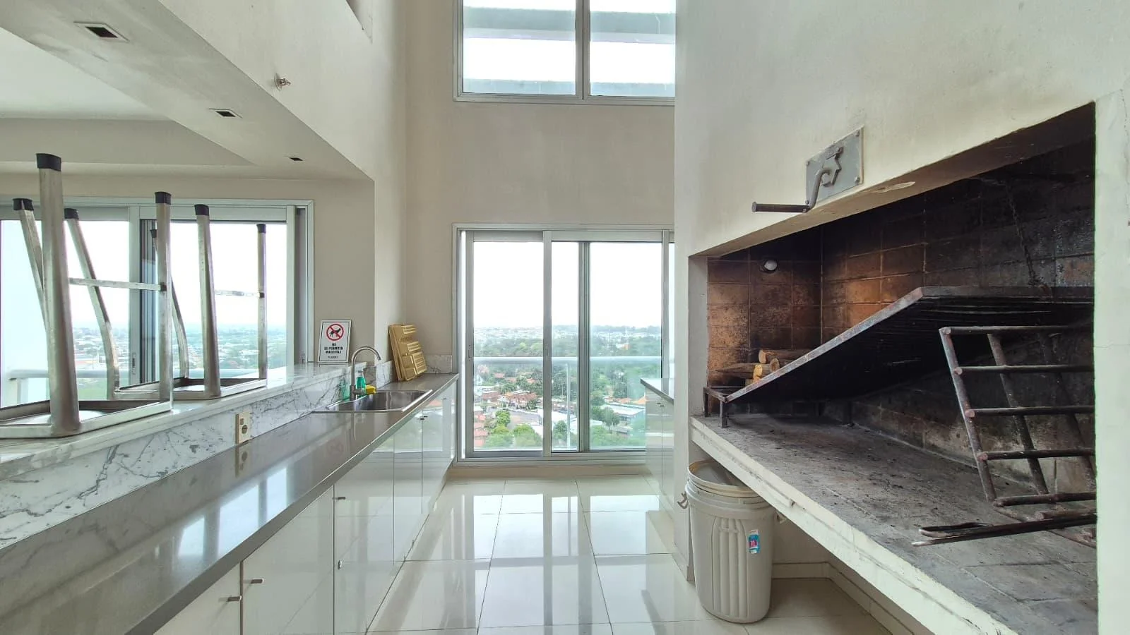 El edificio ofrece una impresionante variedad de servicios y amenities, incluyendo una piscina exterior, un spa con sauna húmedo y seco, un gimnasio completamente equipado, un salón de usos múltiples, y parrilleros ubicados tanto con vistas a los jardines del edificio como en el piso 20, ofreciendo espectaculares vistas panorámicas. También cuenta con un lavadero y recepción 24 horas para mayor comodidad y seguridad.