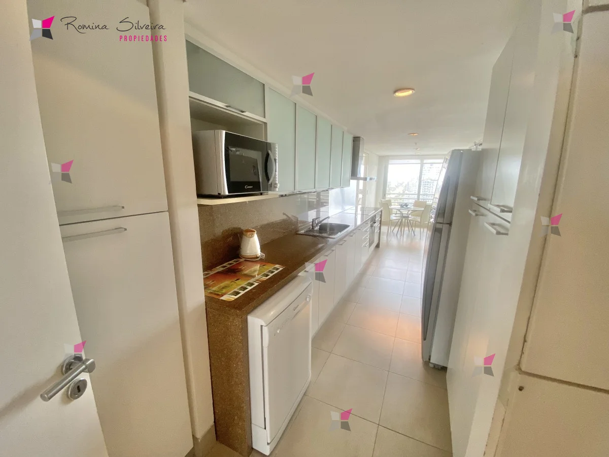 Cocina Definida bien equipada con lavadero, Amplio Living Comedor con vista a Playa Brava e Isla de Lobos.