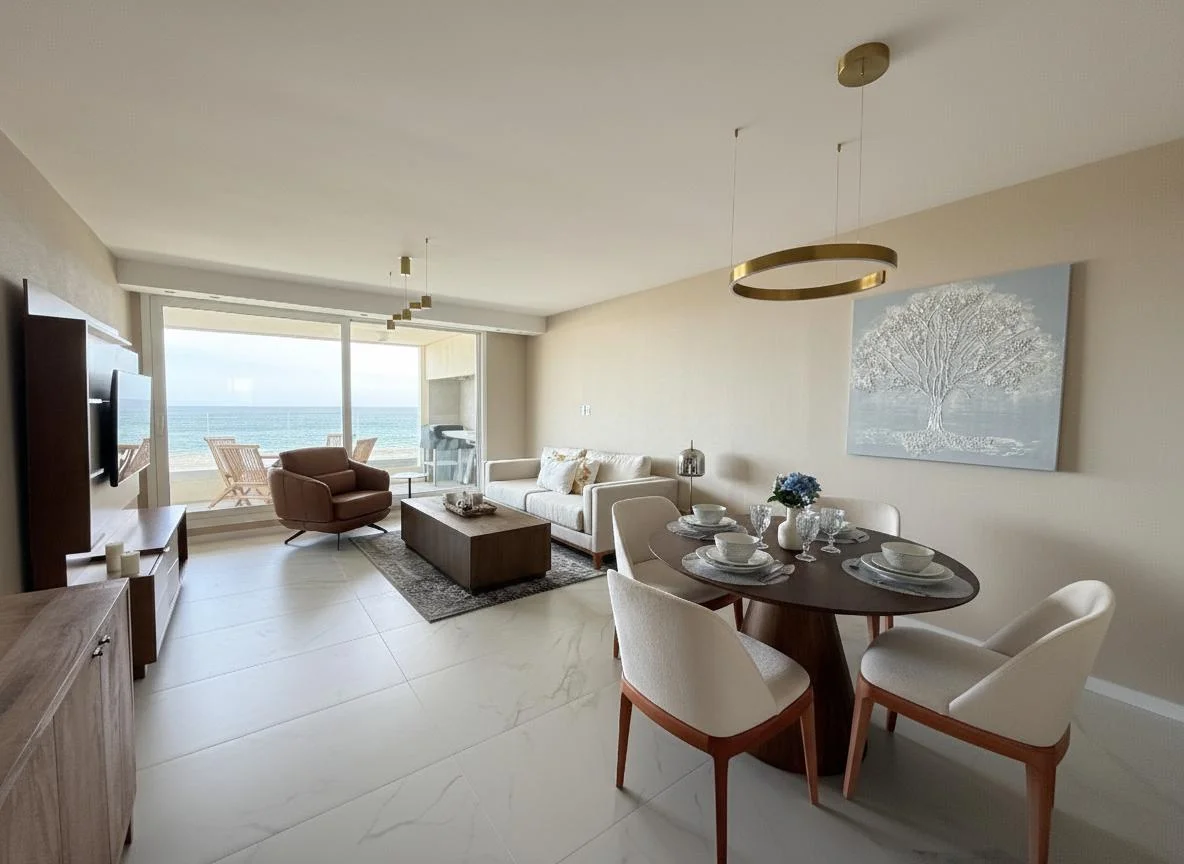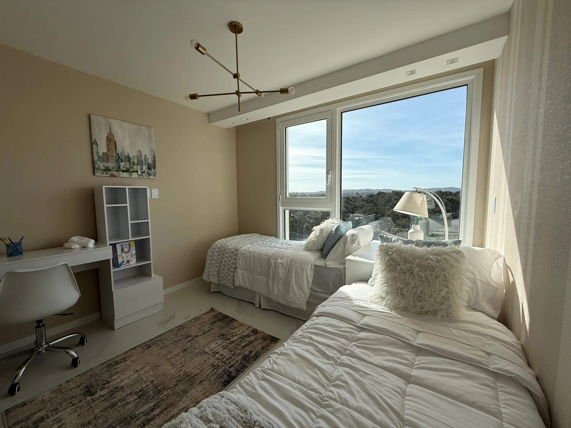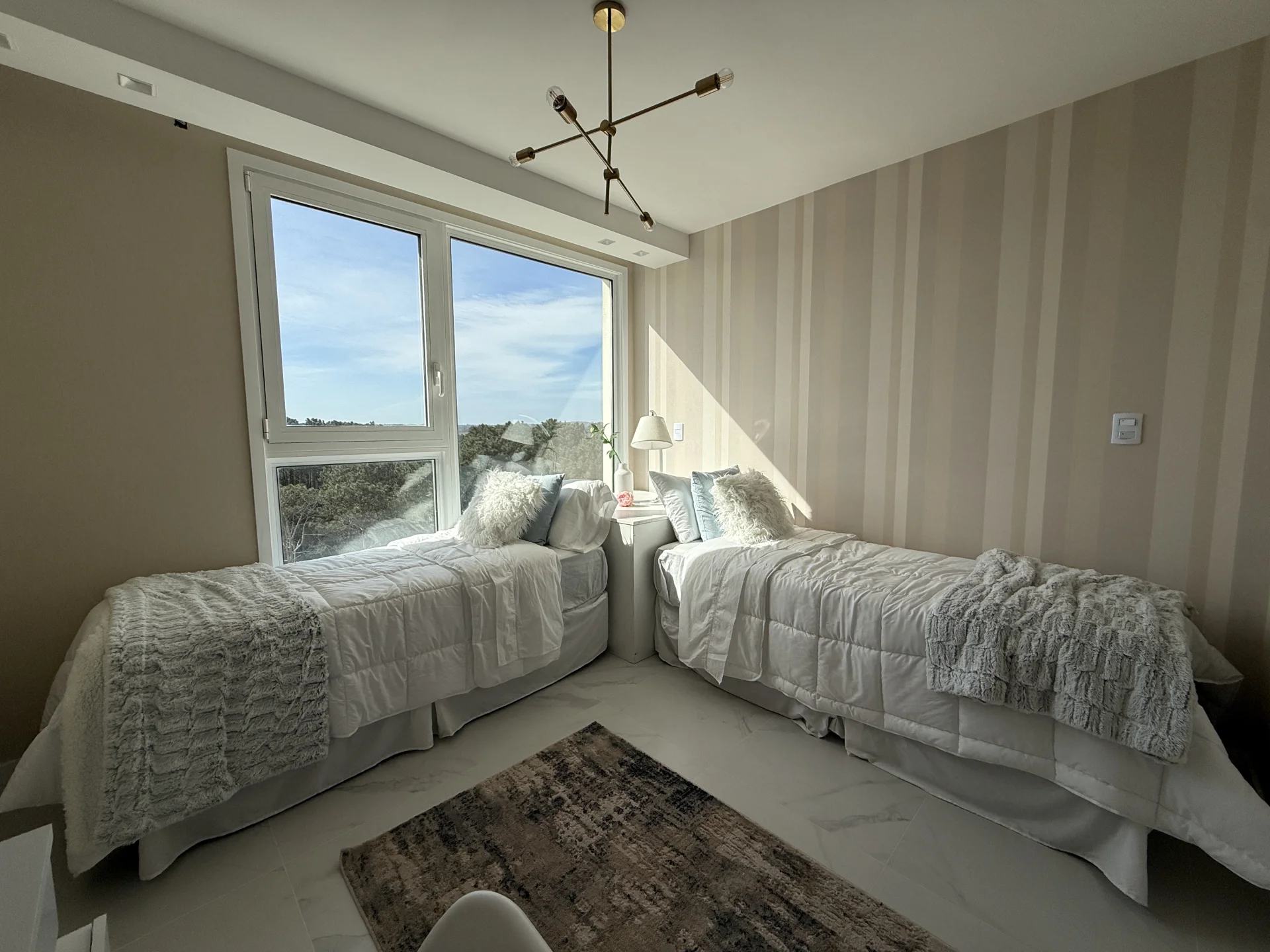 La zona de descanso y servicios se maneja con total eficiencia. La cocina es funcional y está conectada con el lavadero, mientras que un pasillo distribuye las dos suites. Ambas habitaciones ofrecen comodidad y privacidad: una suite secundaria completa, y la imponente master suite, que se destaca por su gran tamaño y por contar con un estidor privado y vistas al mar.