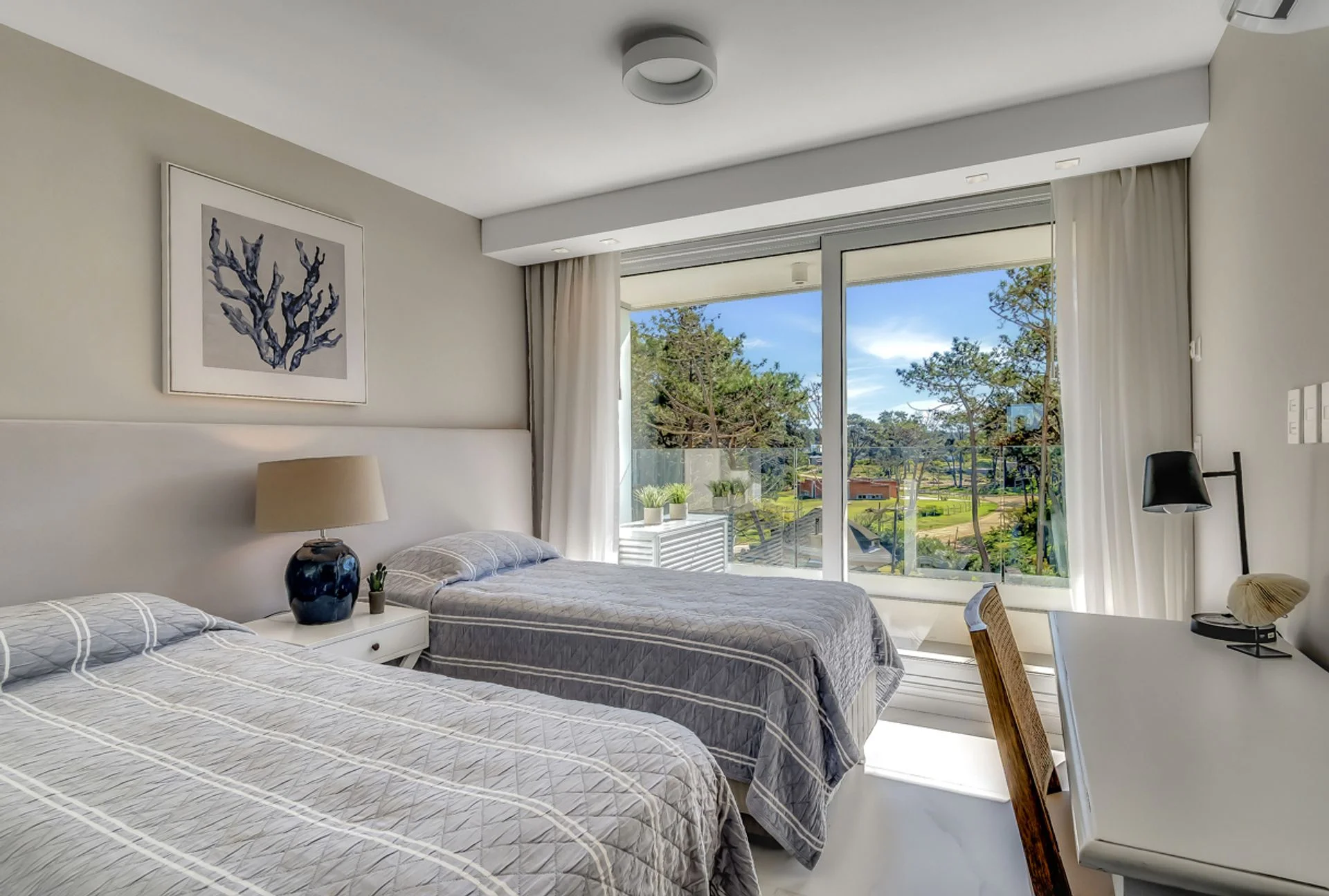 Corredor Responsable: - Contacto: Eliana Fuentes Apartamento en Venta – Poseidón Lagunas, Punta del Este En el icónico Poseidón Lagunas, una de las residencias más exclusivas de Punta del Este, se encuentra este elegante apartamento de categoría. La unidad ofrece 2 dormitorios en suite, cada uno con su baño privado, además de un toilette de recepción. La decoración, a cargo de una reconocida decoradora, aporta un estilo moderno y sofisticado que realza cada ambiente. Del dormitorio principal podemos ver el mar y disfrutar de su balcón. El living-comedor con ventanales de piso a techo brinda una luminosidad excepcional y permite disfrutar de una vista directa al mar. La cocina se integra de manera funcional, logrando practicidad y confort en el día a día. En el Balcón con vista al bosque encontramos el parrillero propio aportando independencia en su funcionamiento. Incluye garaje propio con baulera, sumando comodidad y seguridad. El edifico ofrece Piscina cubierta climatizada y 2 piscinas externas con Bar - Café. Gimnasio totalmente equipado. Sauna y Sala de masajes. Salón de peluquería. Barbacoa cerrada. Sala de juegos infantiles y otra Sala de juegos de adolescentes. Sala de juego para adultos. Servicio de playa. Servicio mucama en verano Recepción 24hs Una propuesta única para quienes buscan ubicación privilegiada, exclusividad y detalles de diseño en Punta del Este. Ideal tanto para vivir todo el año como para inversión premium. Contáctame y coordinamos una visita para que puedas ver los detalles en persona. Cada Oficina es de propiedad, gestión y desarrollo independiente La presente publicación describe las características esenciales del inmueble, debiéndose consultar al responsable de la operación por la eventual actualización de las medidas, descripciones arquitectónicas y funcionales, servicios, impuestos, precios y demás información, cuyos valores son aproximados.