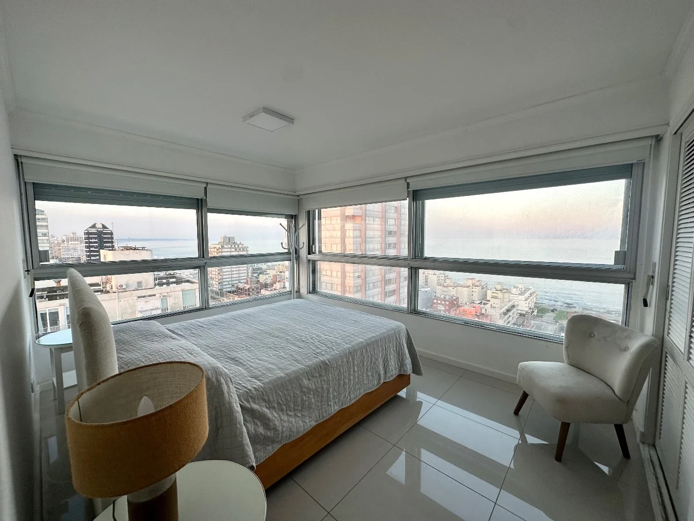 Espectacular apartamento de 3 dormitorios comodo y luminoso totalmente equipado en Edificio Fontemar. Ubicado sobre Av. Gorlero y Calle 19, en el corazón de la Peninsula, a 100 metros de la rambla y el puerto, rodeado de supermercados, bancos, farmacias, etc. Edificio de categoria con ascensores panorámicos. 3 dormitorios super amplios con magnifica vista al mar en piso 18 y dos baños. Living comedor luminoso y funcional con hermosa vista, comedor diario y gran cocina definida. Garage Servicios: Recepción las 24hs CCTV Servicio de mucama Servicio de mantenimiento Gym Sauna Sala de adultos Sala de juegos Lavadero Honorarios inmobiliarios 3% mas IVA. Consulte por opción alquiler de Diciembre a Marzo. No te pierdas esta oportunidad y agenda tu visita!