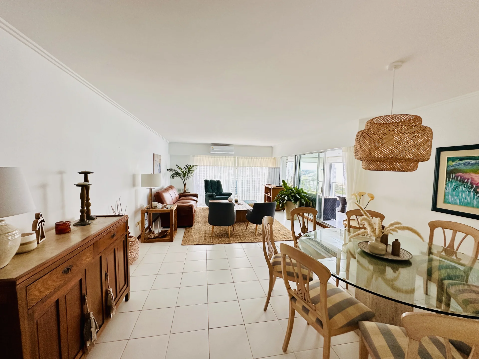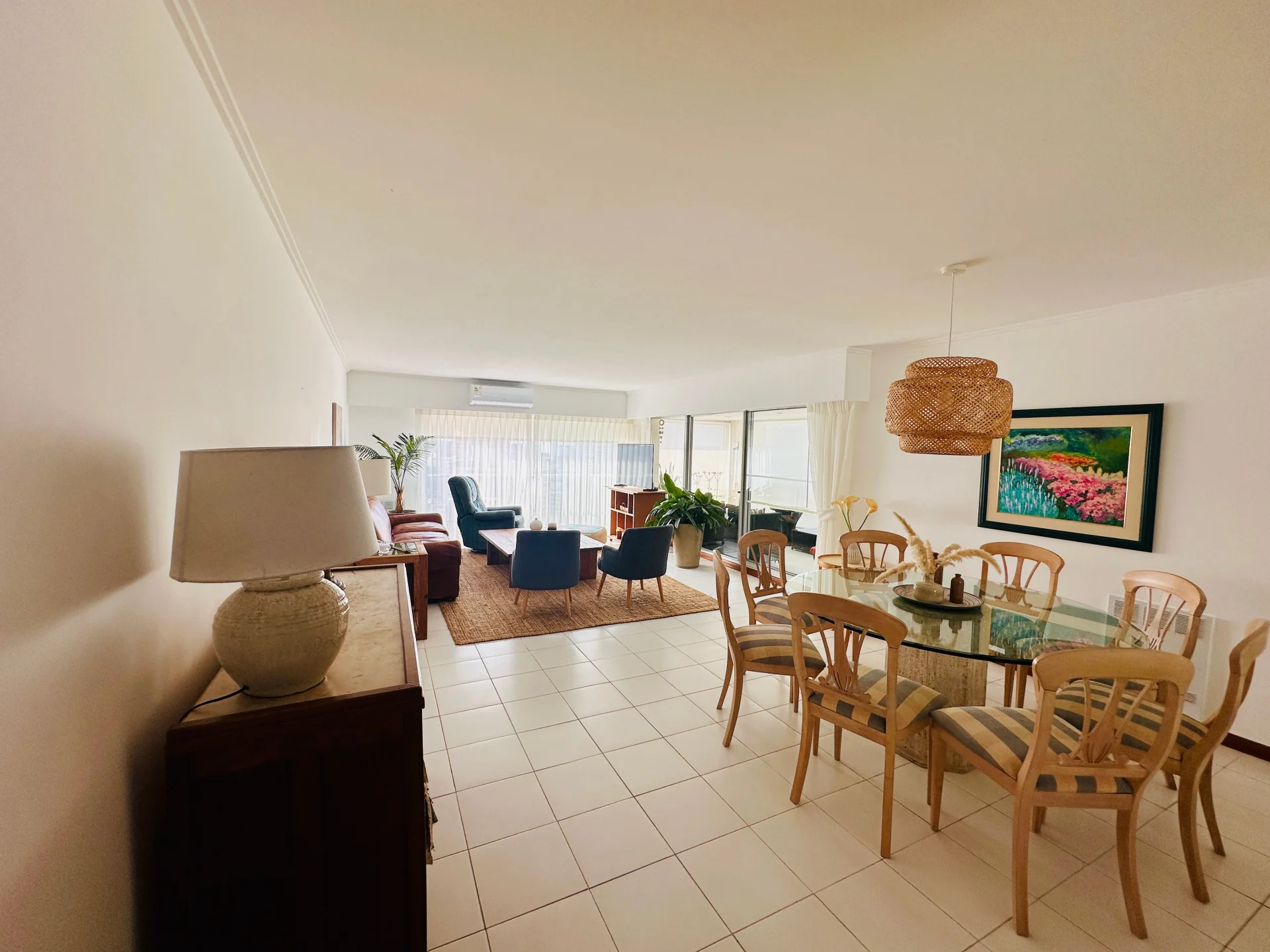 Al ingresar, nos recibe un luminoso living-comedor con amplios ventanales que conectan con una gran terraza cerrada. Esta galería vidriada se abre completamente, adaptándose a todas las estaciones del año y permitiendo disfrutar de la brisa marina y las espectaculares vistas al océano.
