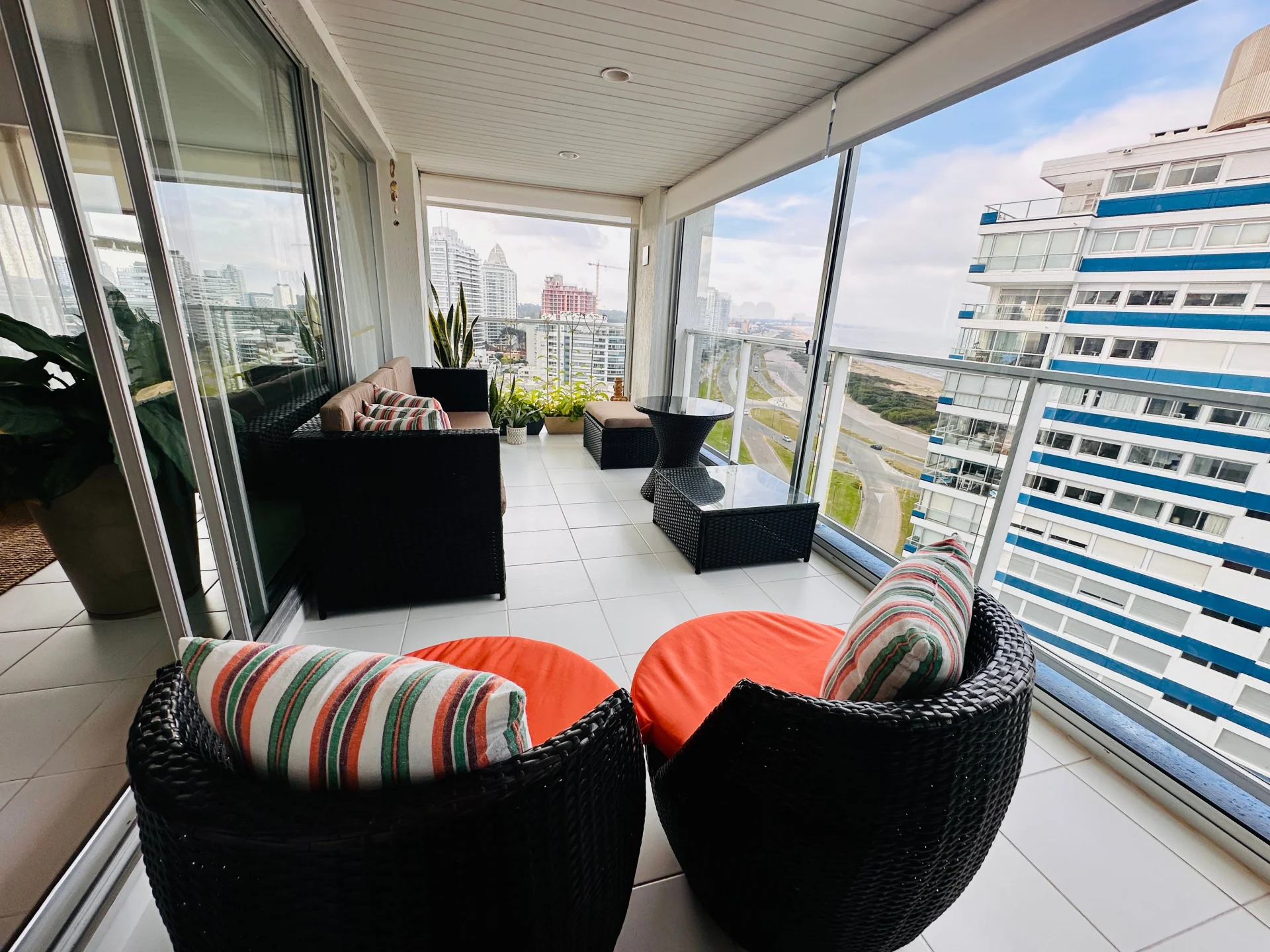 Ubicado en la Parada 5 de Playa Brava, este amplio apartamento destaca por su inmejorable ubicación y vistas al océano desde todos sus ambientes.