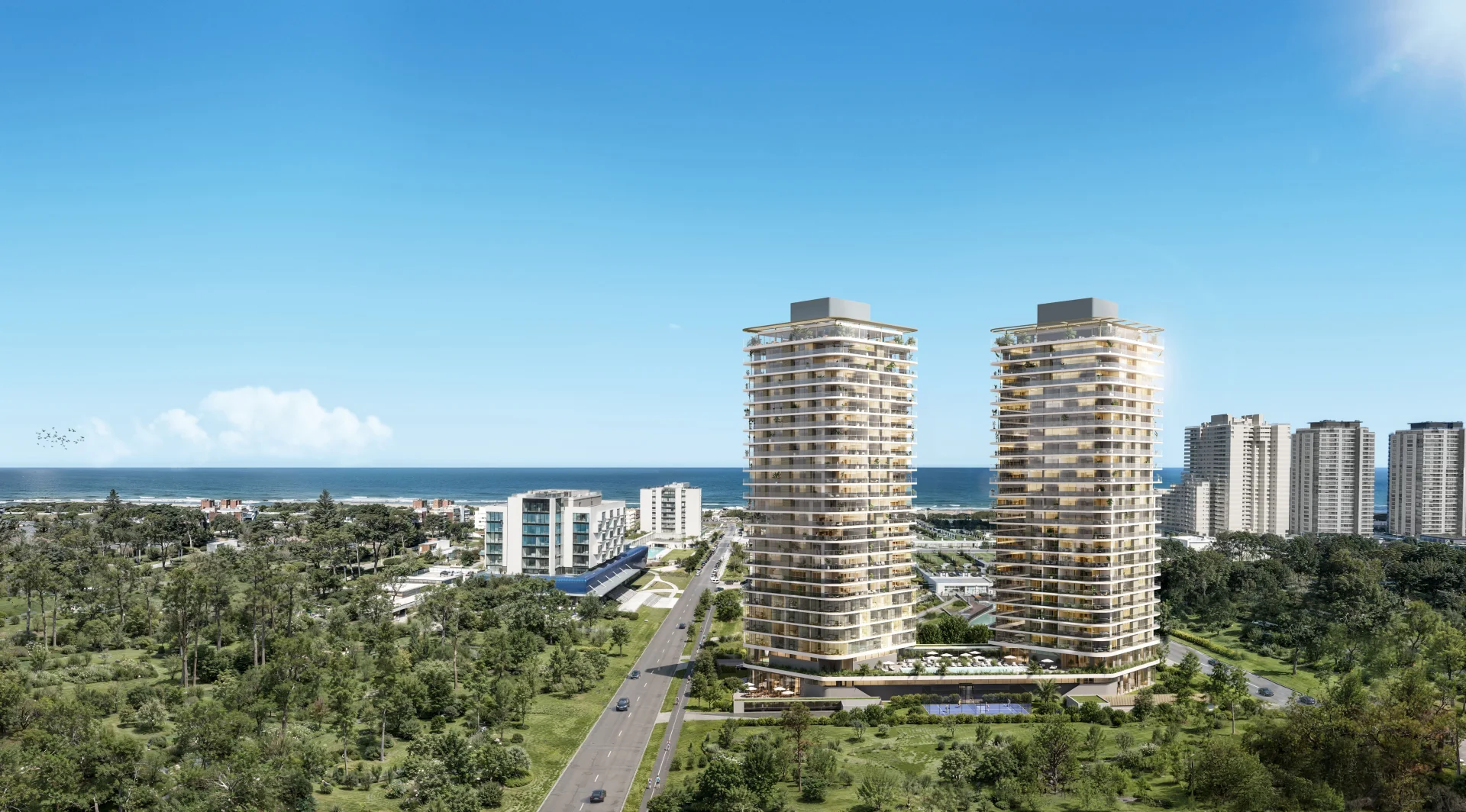 El área social se extiende hacia el exterior a través de un largo Balcón, ideal para disfrutar de las vistas y el aire libre a lo largo de todo el frente de la unidad.