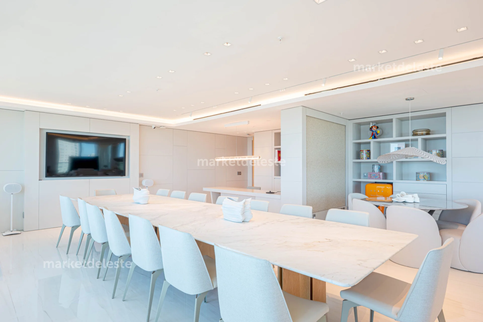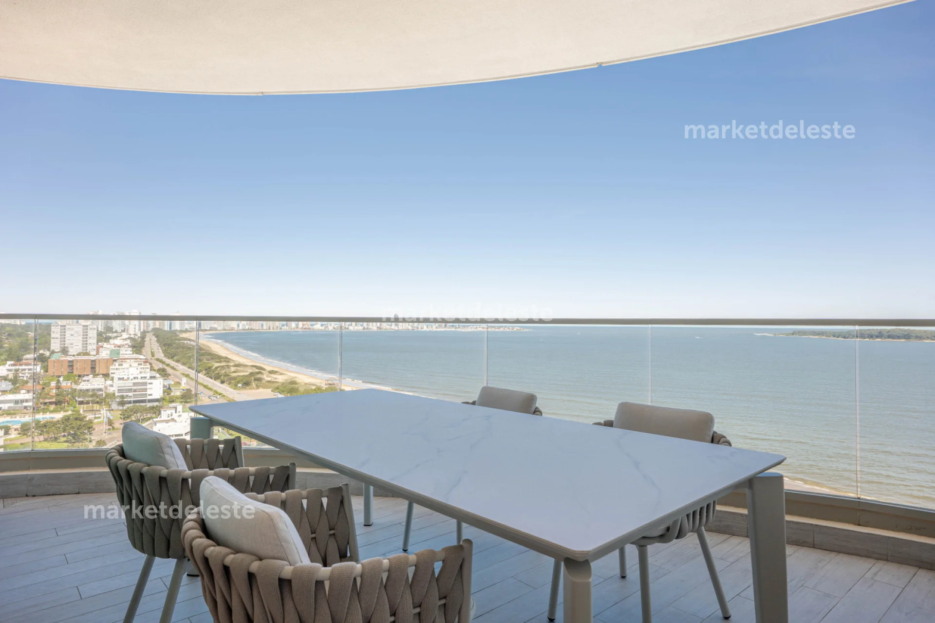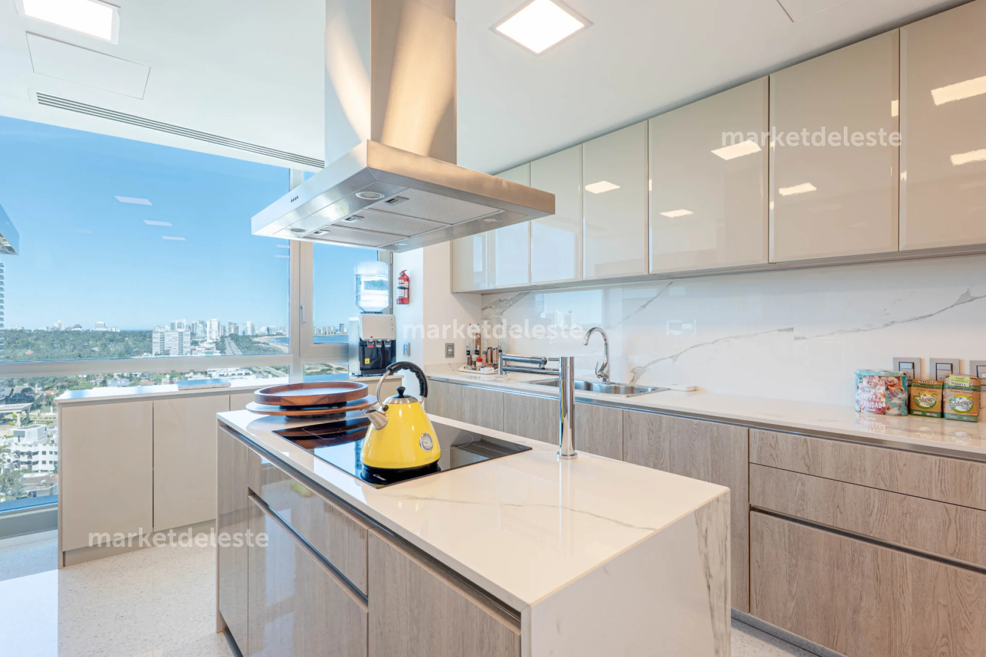 Planta de alrededor de 500 metros cuadrados que se distribuye en amplio living comedor, 6 dormitorios en suite y servicio, toilettes, cocina con isla, lavadero y dos terrazas con los mejores atardeceres .