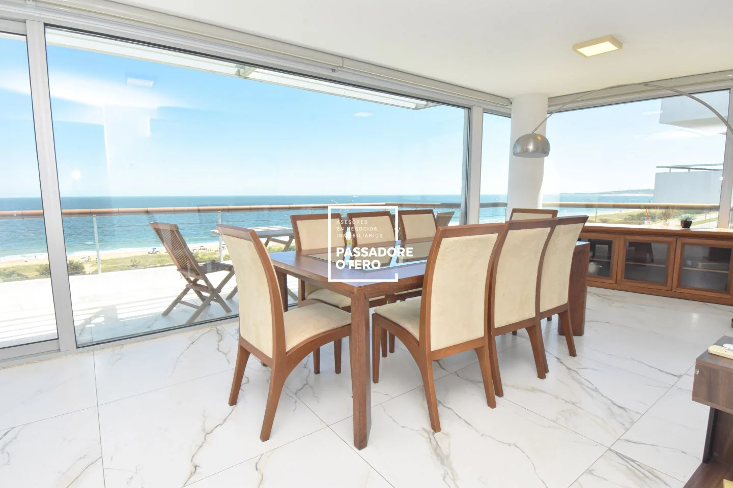 Penthouse Único Frente al Mar - Pinares Punta del este Ubicado en un edificio de categoría (solo 28 unidades), este penthouse unificado ofrece una propuesta de alto nivel para quienes buscan confort, diseño y una ubicación privilegiada. Distribución: Living comedor con vista panorámica al mar y 2 balcones al frente, Parrillero propio, Cocina definida con comedor diario, lavadero y despensa, Toilette de recepción, Master suite con baño y vestidor, Segunda suite con vestidor, Dos dormitorios adicionales con baño compartido, Terraza de uso exclusivo.- 3 garajes incluidos Detalles de calidad: DVH, materiales premium, excelente distribución y mejoras constructivas desde obra. Amenities: Piscinas climatizadas (interior y exterior) - Gimnasio - Sauna - Sala de masajes - Micro-cine - Barbacoas - Recepción y seguridad 24h. Consultanos para agendar tu visita !!! . Caracteristicas: DORMITORIO EN SUITE, GARAJE, CONEXI?N A INTERNET XINTEL (PSD-PSD-8120)