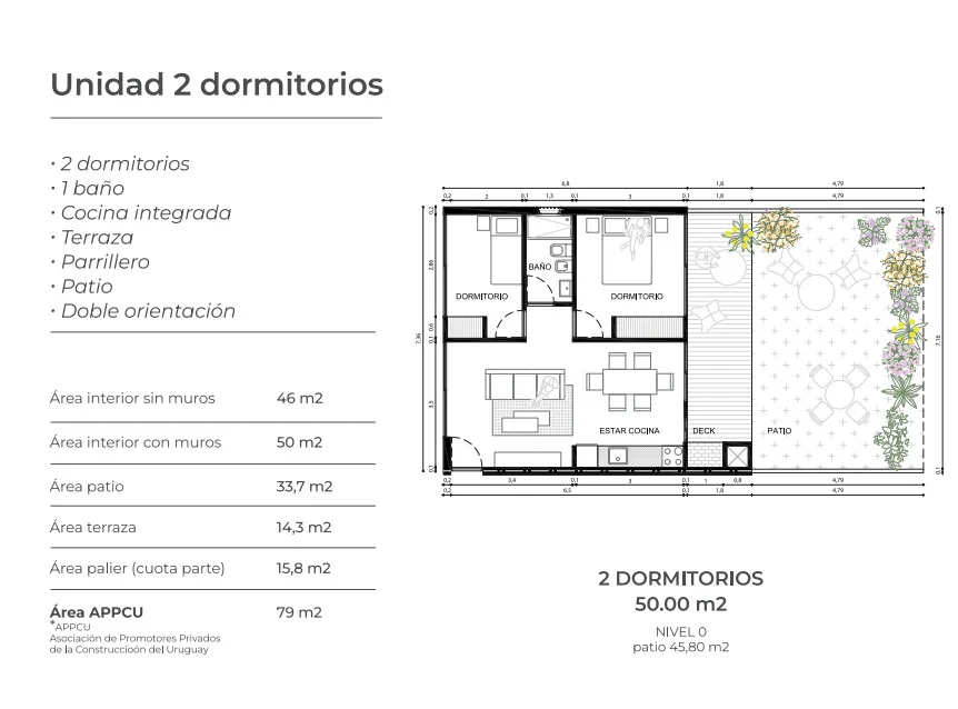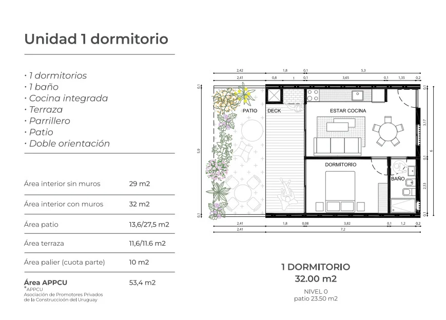 Grutas de la Ballena, un proyecto exquisito, rodeado de naturaleza, paz y armonía. Sobre una ladera con vistas únicas el edificio se desarrolla en una serie de terrazas ajardinadas y escalonadas en sintonía con el entorno. las unidades de 1 y 2 dormitorios dan a estas amplias terrazas ajardinadas con vistas a la bahía esteña y otras con vista al lomo de la ballena. Espacios amplios y luminosos, despejados ventanales y terminaciones de primera calidad. La unidad en referencia se ubica en planta baja consta de: * 1 dormitorio * 1 baño * cocina integrada * terraza * parrillero * patio * doble orientación * Área interior: 32m2 * Área patio: 23.5m2 * Área terraza: 11.6m2 * Disposición: Frente Amenities: * Piscina privada * Cochera individual * Seguridad CCVT * Terraza propia * Parrillero en terraza * Solarium * Laundry colectivo Por financiación y más tipologías consúltame!! Garajes desde USD 10.125 Gastos Ocupación: 6.5% Entrega: Marzo 2026 Honorarios inmobiliaria 3% + IVA