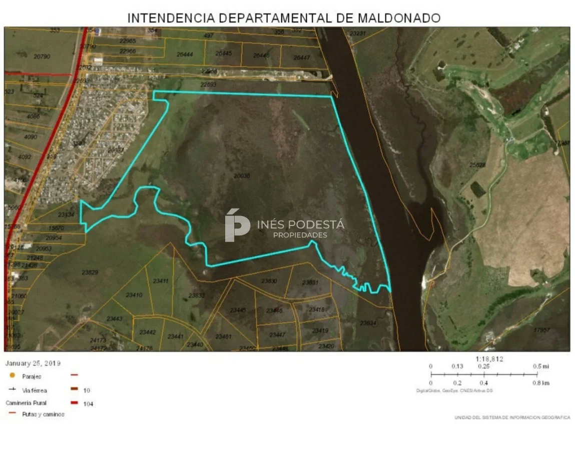 Maldonado, Barrio Hipódromo, para desarrolladores y emprendedores!!!! Venta de 280 hectáreas a pasos del Arroyo Maldonado, para fraccionar en pequeños lotes de 300 m2 y hacer viviendas en propiedad horizontal. Padrón rural, por lo tanto, paga muy baja contribución inmobiliaria. Luz en la puerta y pozo de bombeo. Indice de productividad 98 (coneat). Consulte por financiación.
