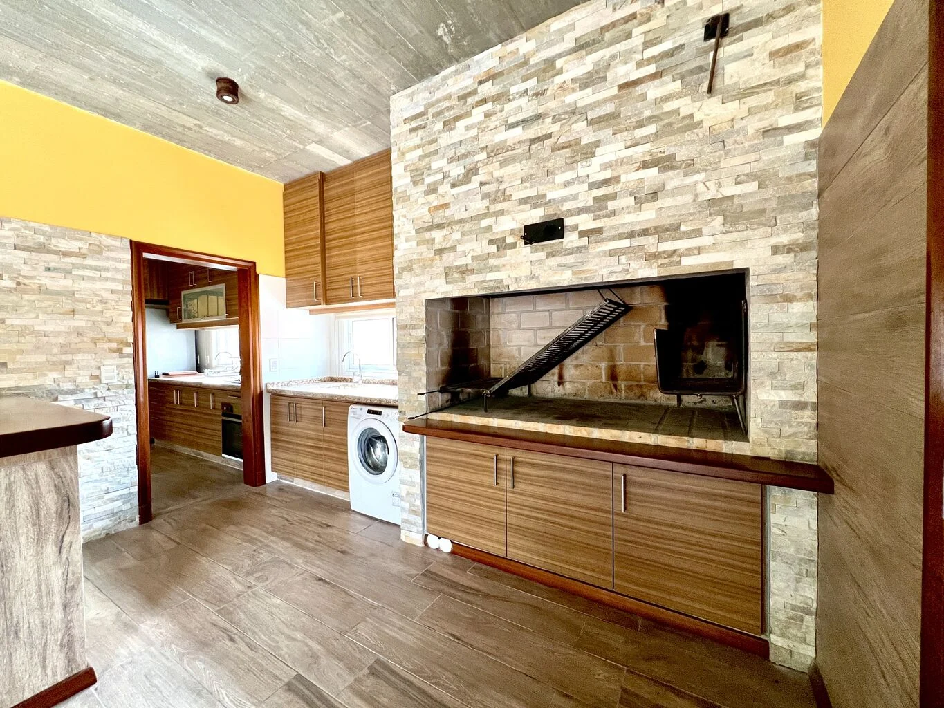 - Espacio de barbacoa cerrado que se conecta desde la cocina y el comedor, con pileta independiente y lugar para colocar lavarropas.