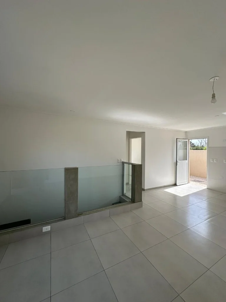 Propiedad a estrenar con 85 m² construidos, que cuenta con dos dormitorios, un baño completo, un luminoso living comedor con cocina integrada, patio con parrillero y garaje con portón eléctrico y acceso interno directo a la casa.