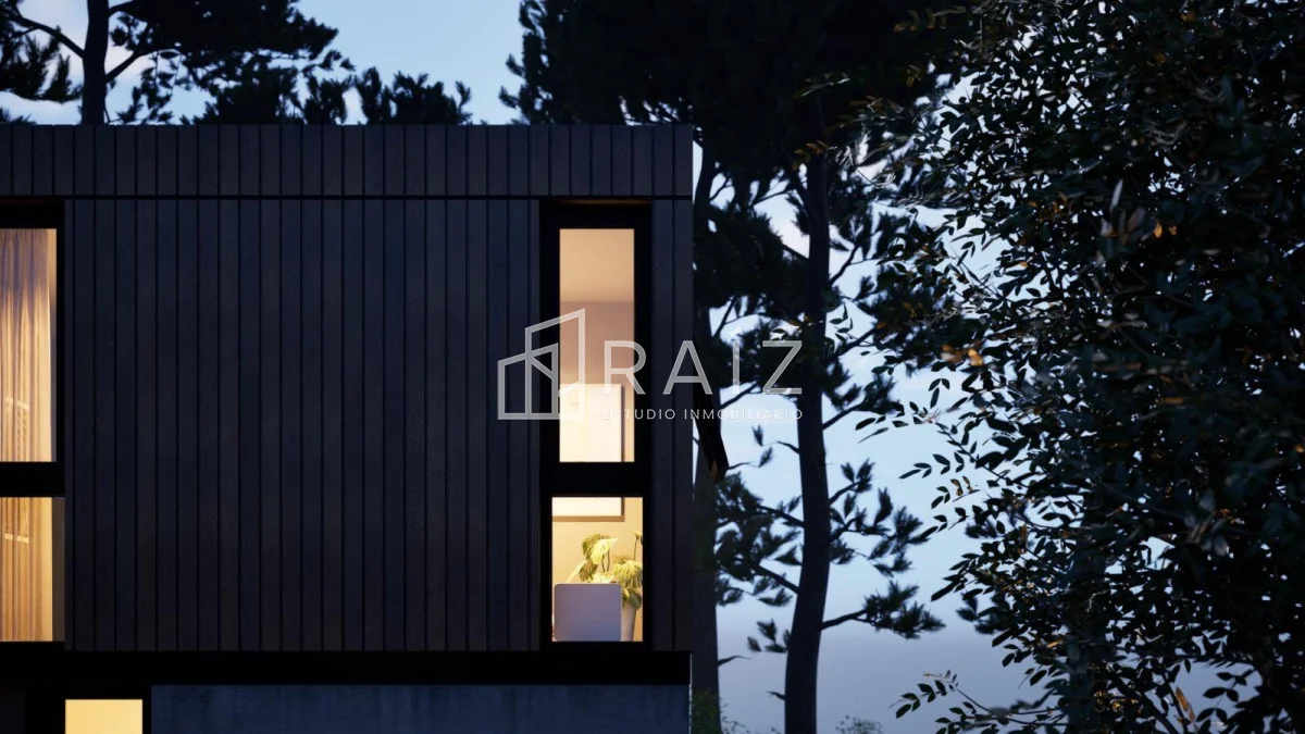El living tiene continuidad hacia el fondo exterior mediante un gran ventanal corredizo que comunica con deck y parrillero de 15 m2.