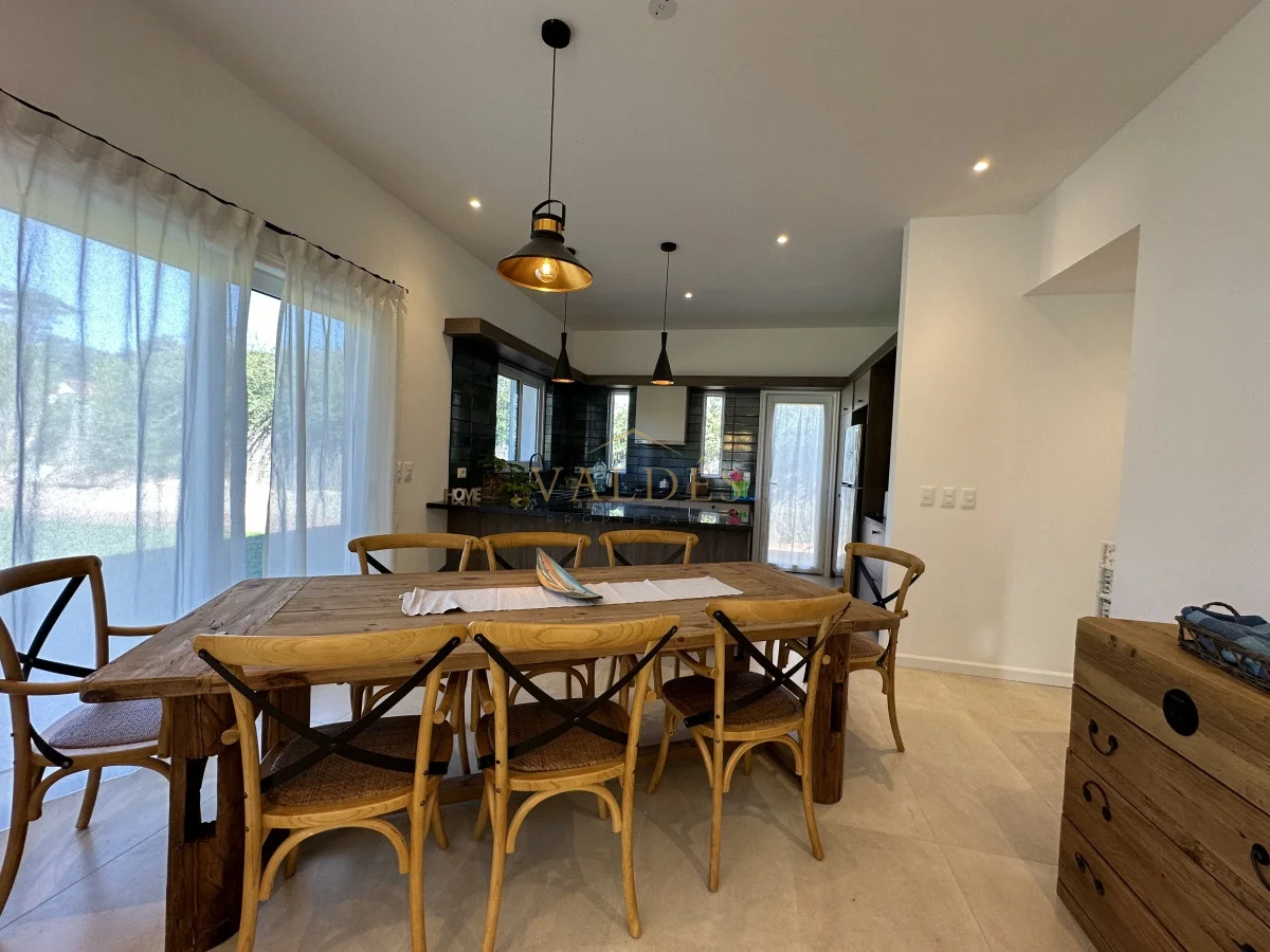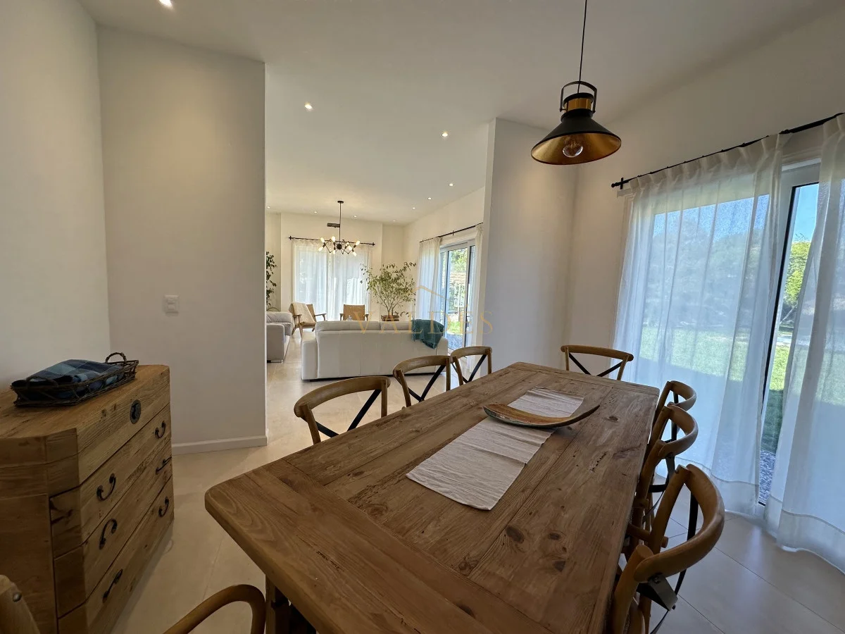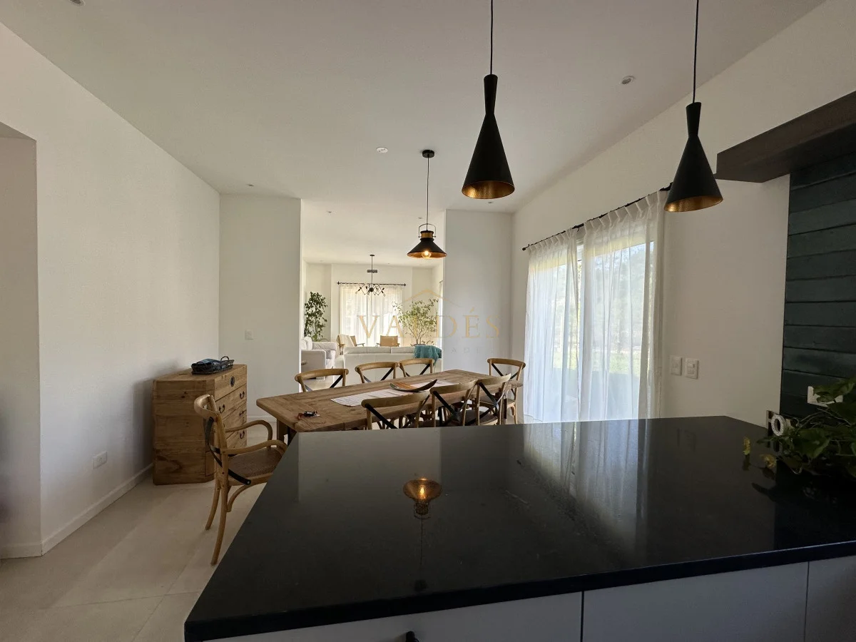 La cocina, el living y el comedor se combinan para crear un espacio de vida abierto y acogedor, ideal para las reuniones familiares o las cenas con amigos. Con 200 m2 edificados sobre un terreno de 1000 m2, esta casa ofrece un equilibrio perfecto entre espacio interior y exterior