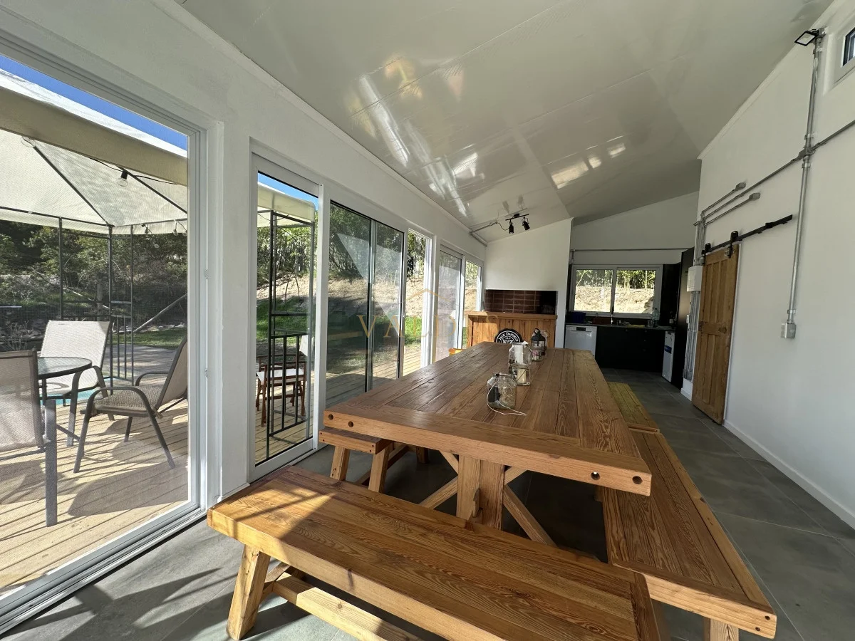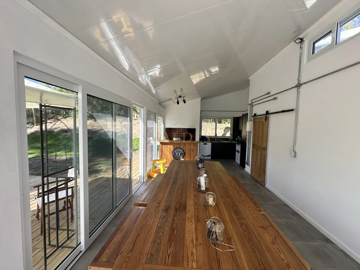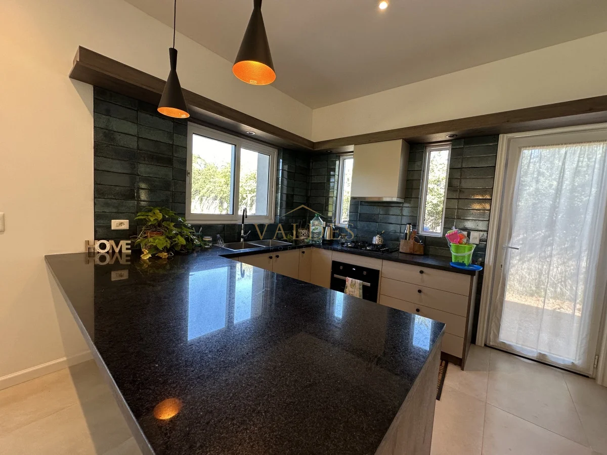 La cocina, el living y el comedor se combinan para crear un espacio de vida abierto y acogedor, ideal para las reuniones familiares o las cenas con amigos. Con 200 m2 edificados sobre un terreno de 1000 m2, esta casa ofrece un equilibrio perfecto entre espacio interior y exterior