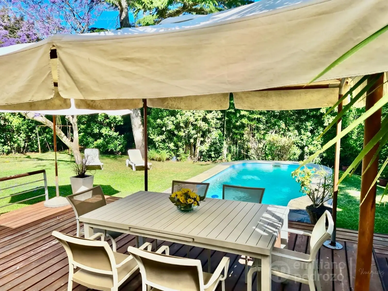 • Relax: Piscina rodeada de un deck de madera y jardín parquizado con riego automático.