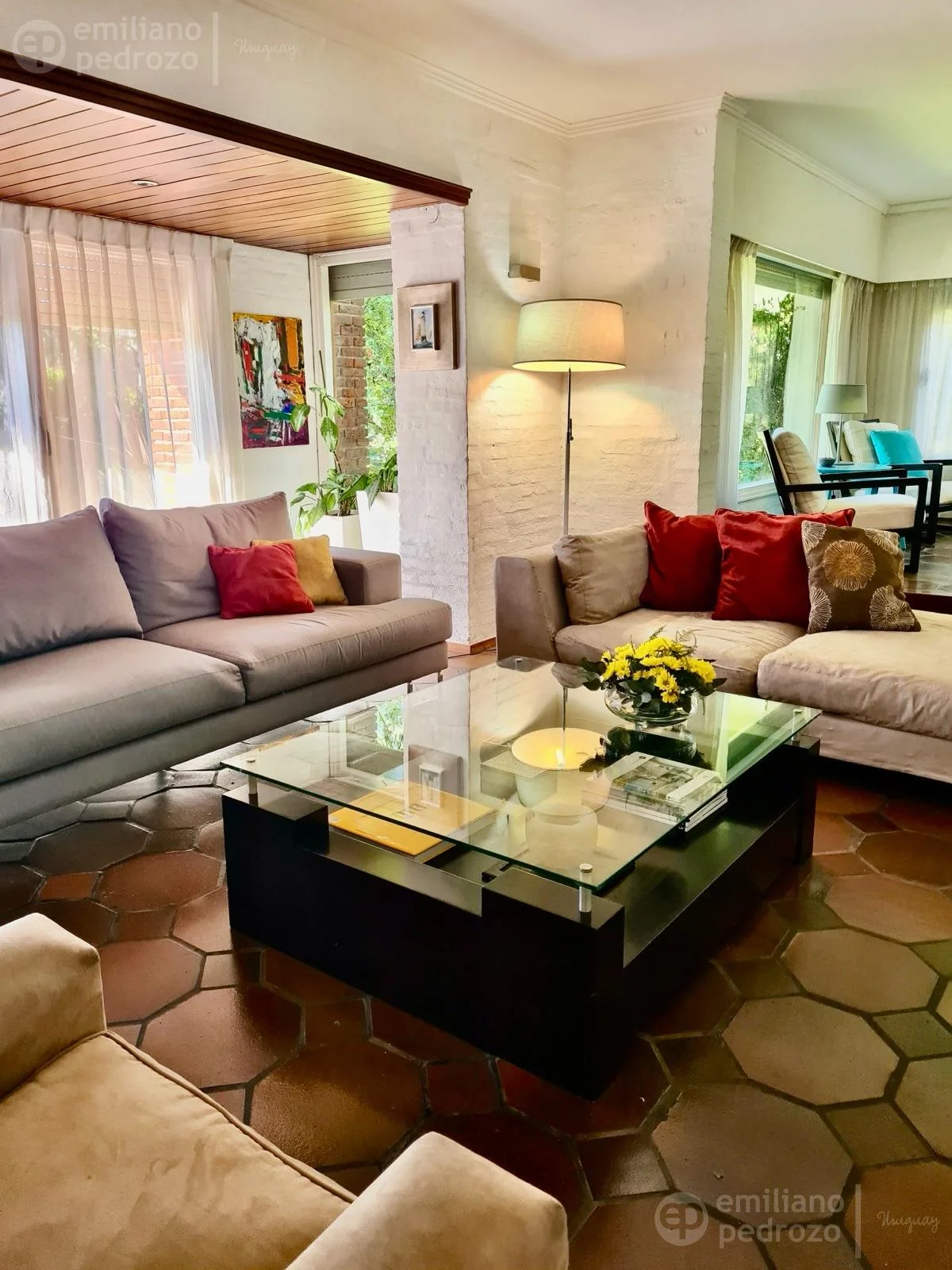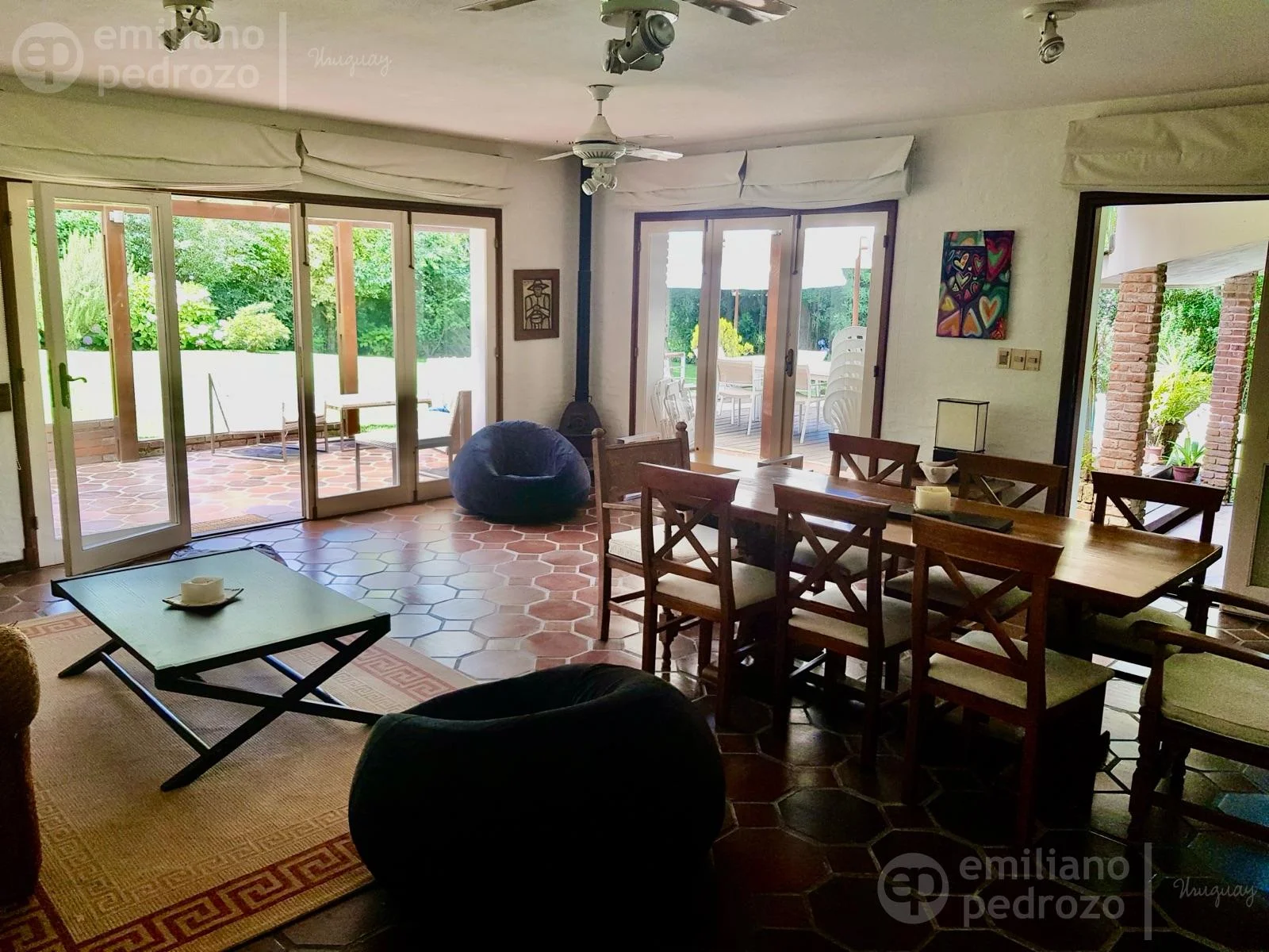 • Planta Baja: 2 amplios dormitorios adicionales (uno de ellos en suite) y ambientes sociales integrados: living con estufa de alto rendimiento (Magna) con sistema de ventiletes que distribuyen el calor de forma eficiente, comedor formal y sala de estar.