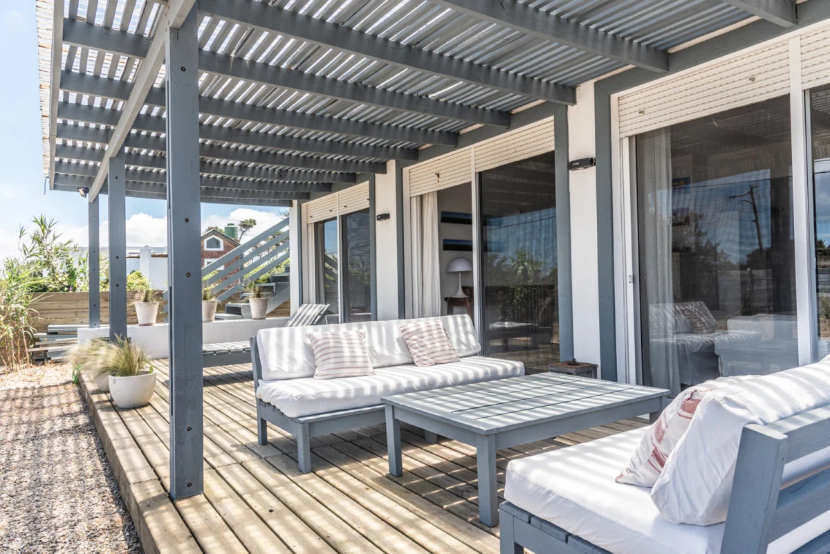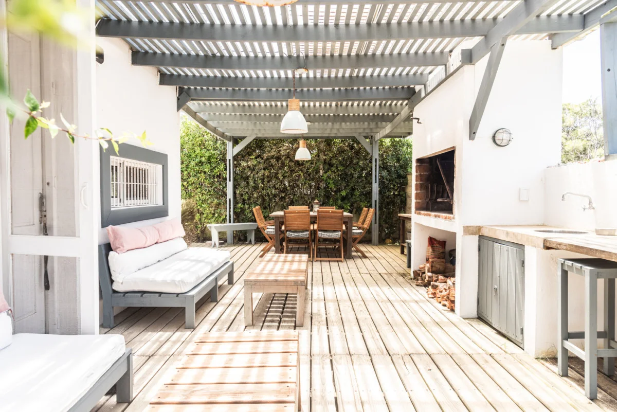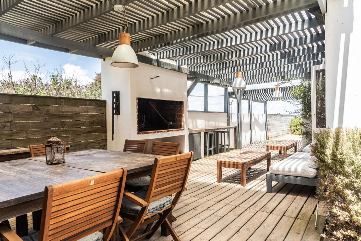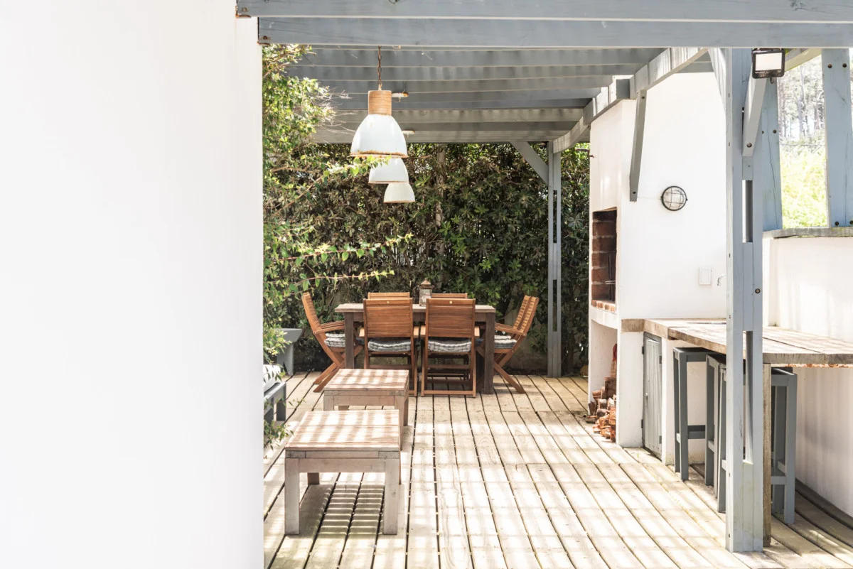 En el sector exterior la casa dispone de un parrillero techado y de buen tamaño, ideal para uso diario. Además, cuenta con habitación y baño de servicio, completando el programa de la vivienda.
